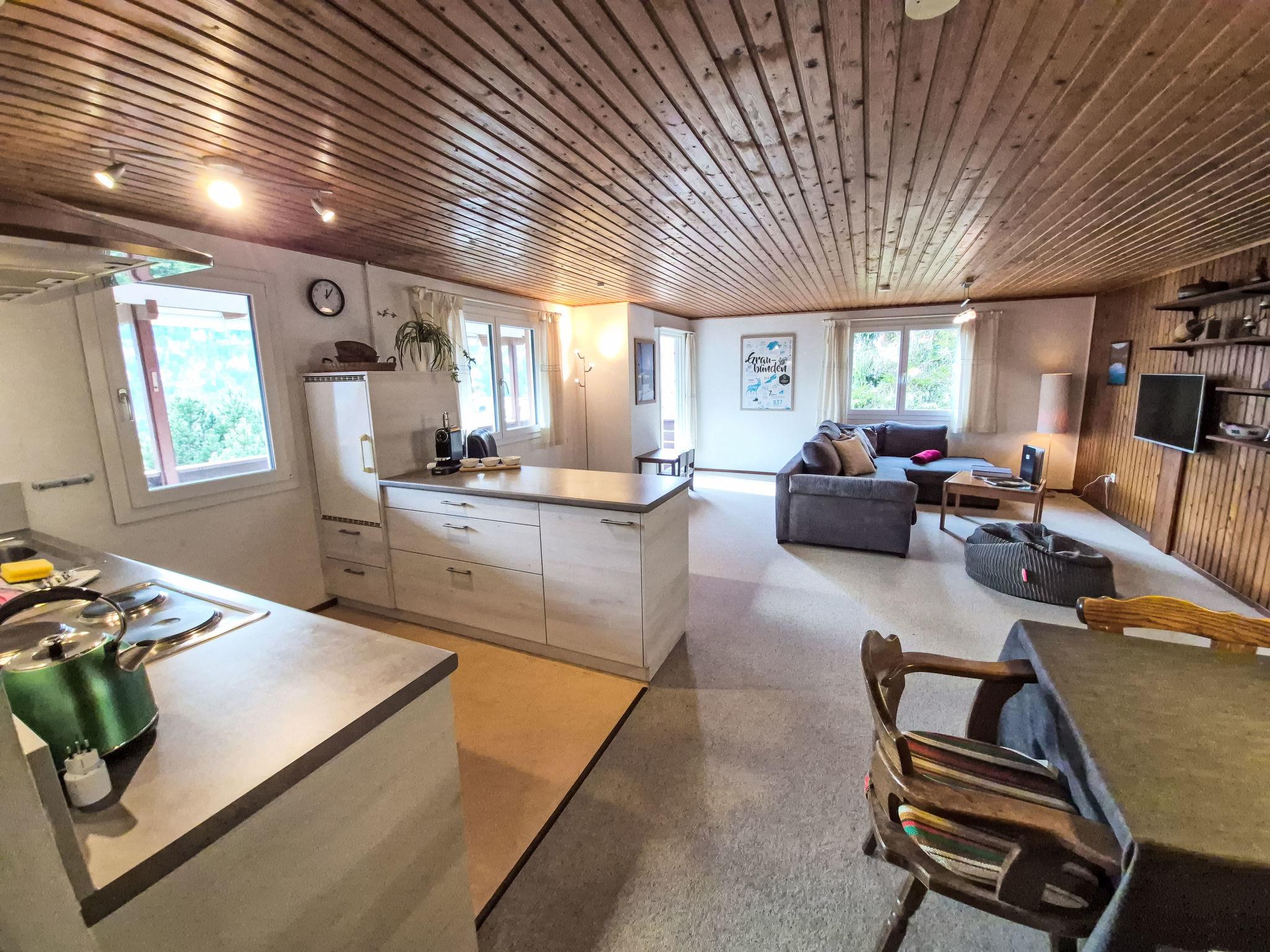"Crap Grisch", 4-room apartment 80 m2 on 1st floor, south facing position. Partly renovated in 2023, cosy and wooden furniture furnishings: living/dining room with dining nook, satellite TV and hi-fi system. Exit to the balcony. 2 double bedrooms. 1 room with 1 bed. Open kitchen (4 hot plates, oven, dishwasher, electric coffee machine, Capsules for coffee machine (Nespresso) extra, raclette grill). Shower/WC. Electric heating, boiler (100 litres). Balcony, terrace, garden. Terrace furniture. Panoramic view. Facilities: washing machine, iron, children's high chair, baby cot. Internet (WiFi, free). Parking, garage at the house. Please note: non-smokers only. Private entrance. Baby bed: 70 x 140cm, bring your own bed linen. 565-885.81.246.158