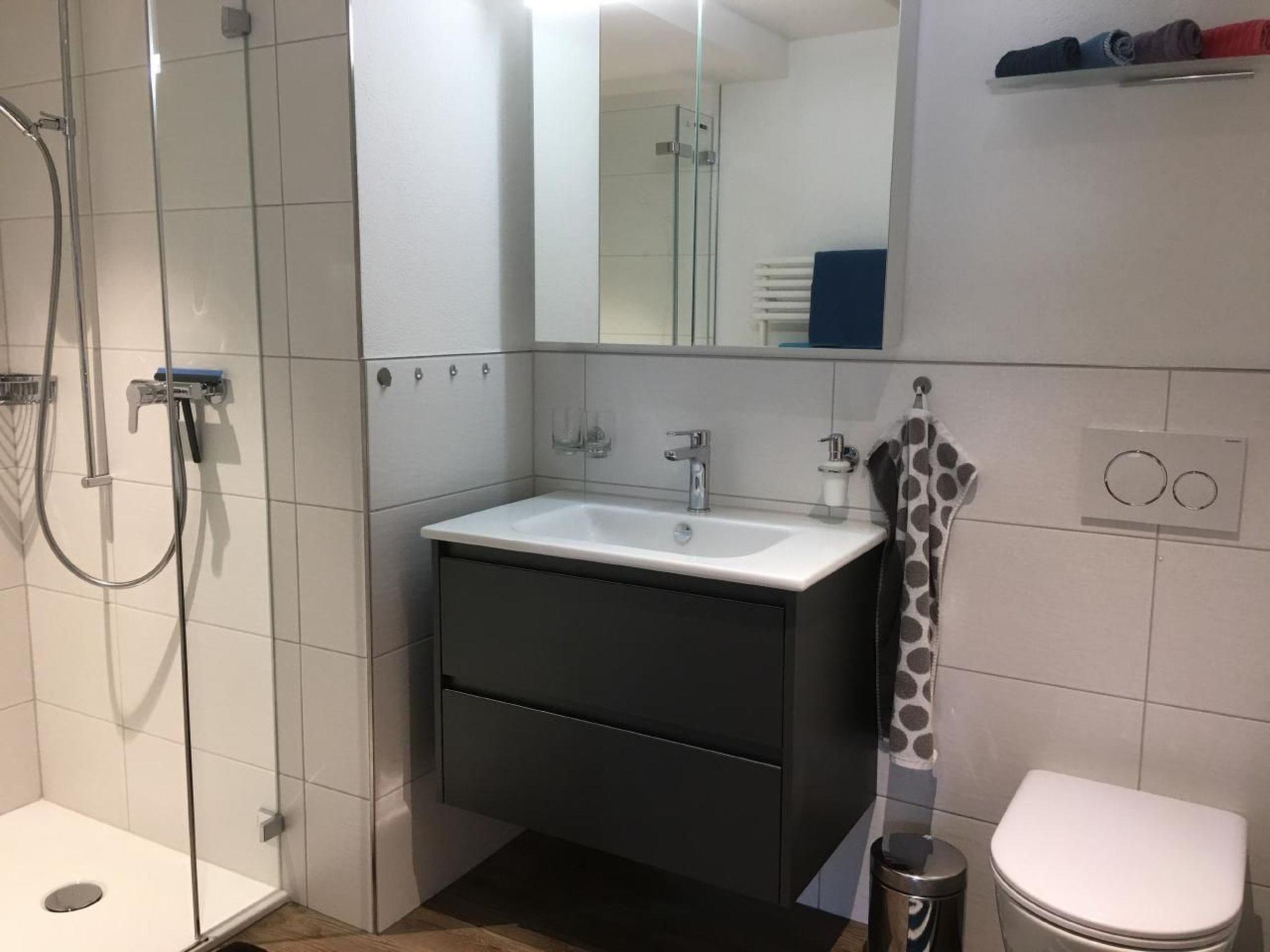 Inside, you will find a fully equipped eat-in kitchen with large windows offering a view of the mountains. A cosy upholstered suite invites you to spend relaxing evenings, and a dining table alcove provides a cosy place to get together. The flat also has a small double room with two single beds, a larger double room and a bathroom with shower/WC. Bed linen, kitchen towels, bath towels, towels, a hairdryer and a kitchen with dishwasher, oven and Nespresso coffee machine are provided for maximum comfort. The underfloor heating also ensures a warm and inviting atmosphere.