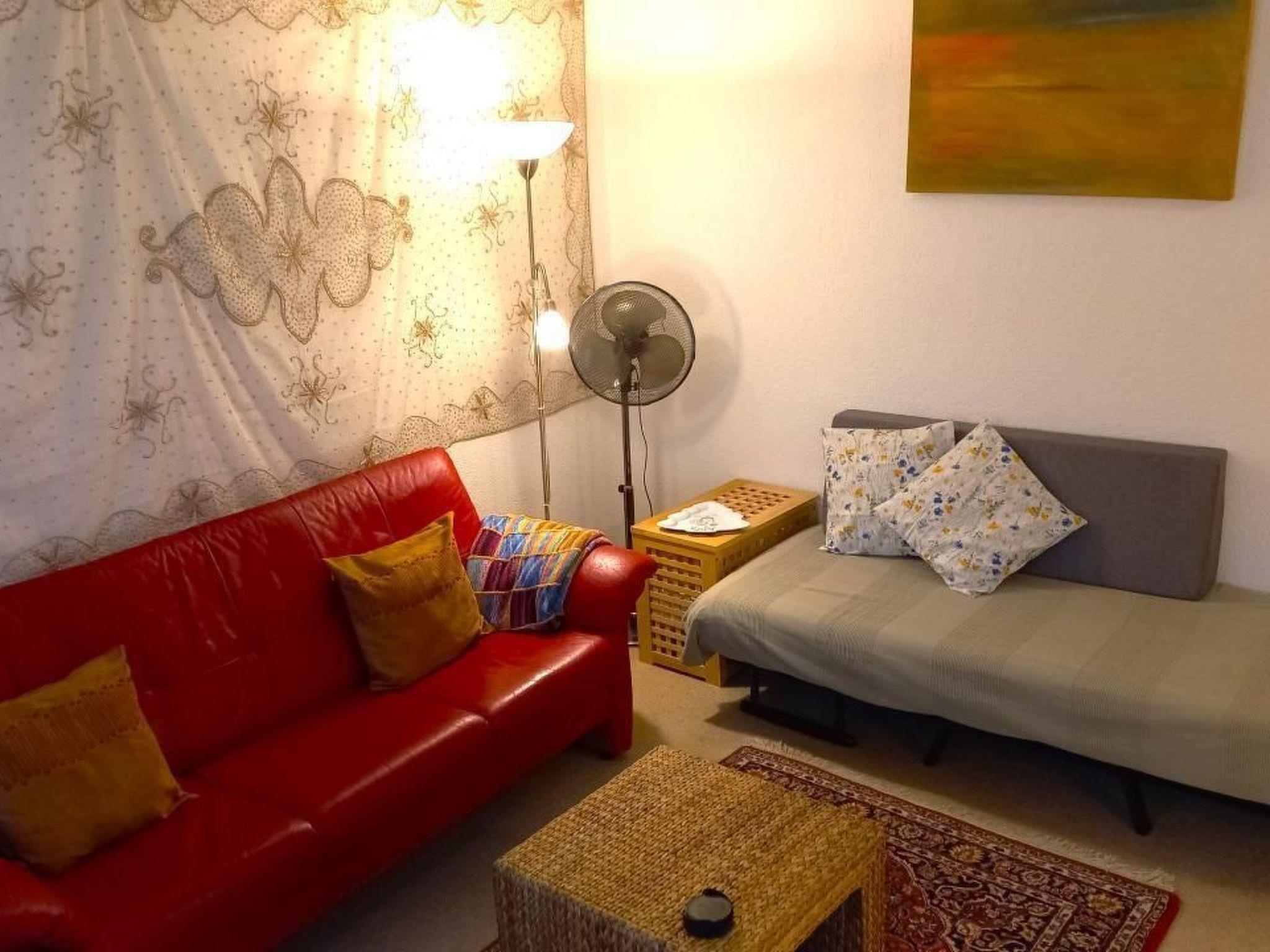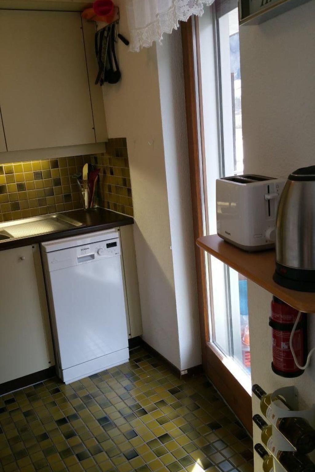 The 50 m² non-smoking flat "Ruhe in EyHus 5" on the first floor is cosily furnished, tiled and has adjustable central and underfloor heating. It offers a bedroom with a large EU king-size double bed, a single bed and an additional single mattress, a travel cot (for hire), ample wardrobe space and a view of the Staubbach Falls. The living room is furnished with two sofas, Wi-Fi internet (20 MB) - please note that there is no TV, but 400 English language films are available. A practical open-plan kitchen area (with dishwasher, 3 hotplates, oven, microwave, rice cooker) leads to the balcony. There is also a shower room/WC with hairdryer, iron and ironing board.
