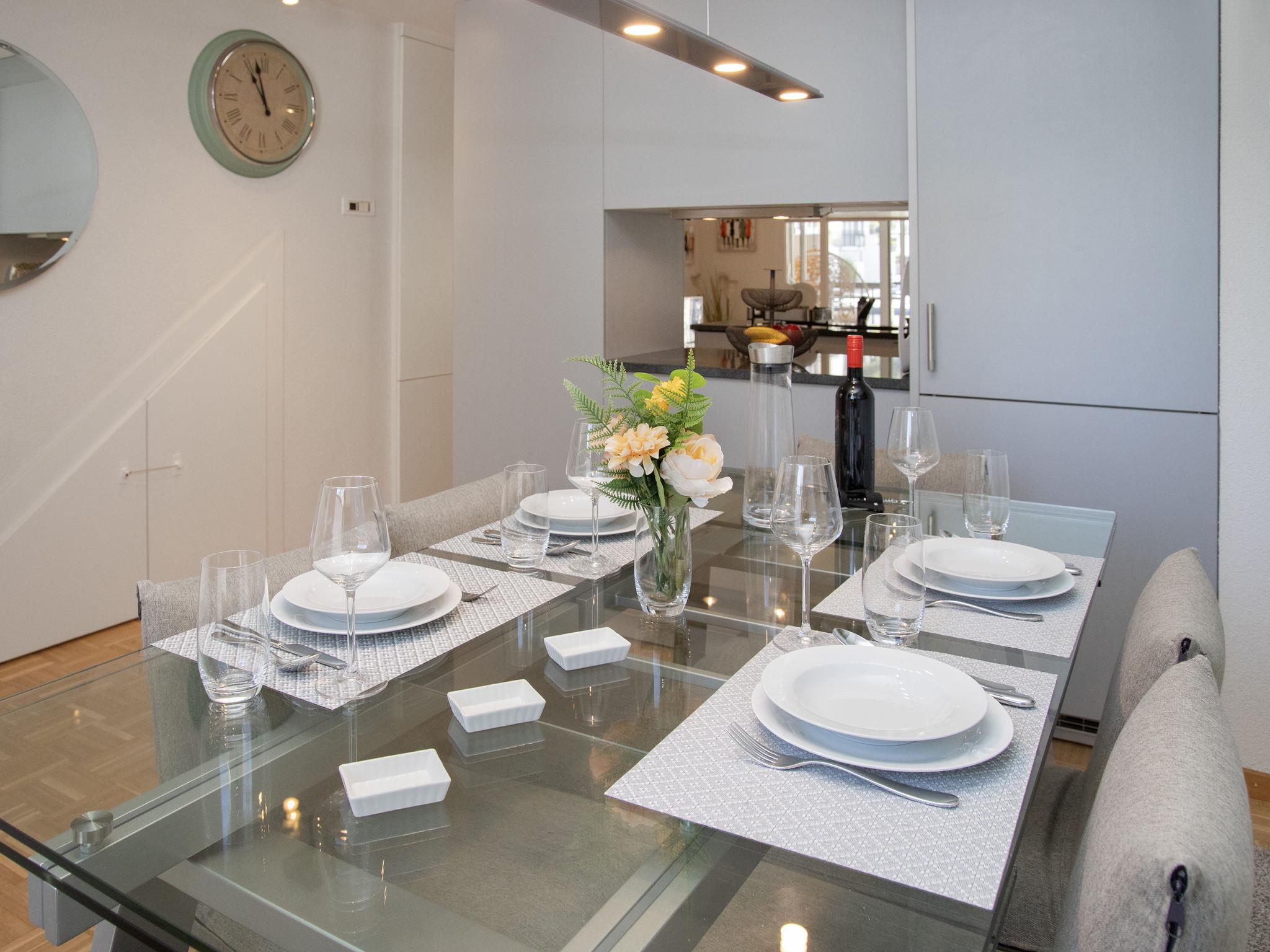 "Tasman S12/R", 3-room apartment 89 m2, on the ground floor. Comfortable and tasteful furnishings: living/dining room with cable TV. Exit to the balcony. Open kitchen (oven, dishwasher, 4 ceramic glass hob hotplates, toaster, kettle, microwave, freezer, electric coffee machine, Capsules for coffee machine (Nespresso), raclette grill, fondue Set (cheese)). Sep. WC. Upper floor: with 1 double bed (2 x 90 cm, length 200 cm). 1 room with 2 beds (90 cm, length 200 cm). Shower/WC. Balcony. Balcony furniture. Beautiful view of the mountains, the countryside and the canal. Facilities: washing machine, dryer. Internet (WiFi, free). Parking space n 136. Please note: non-smokers only.