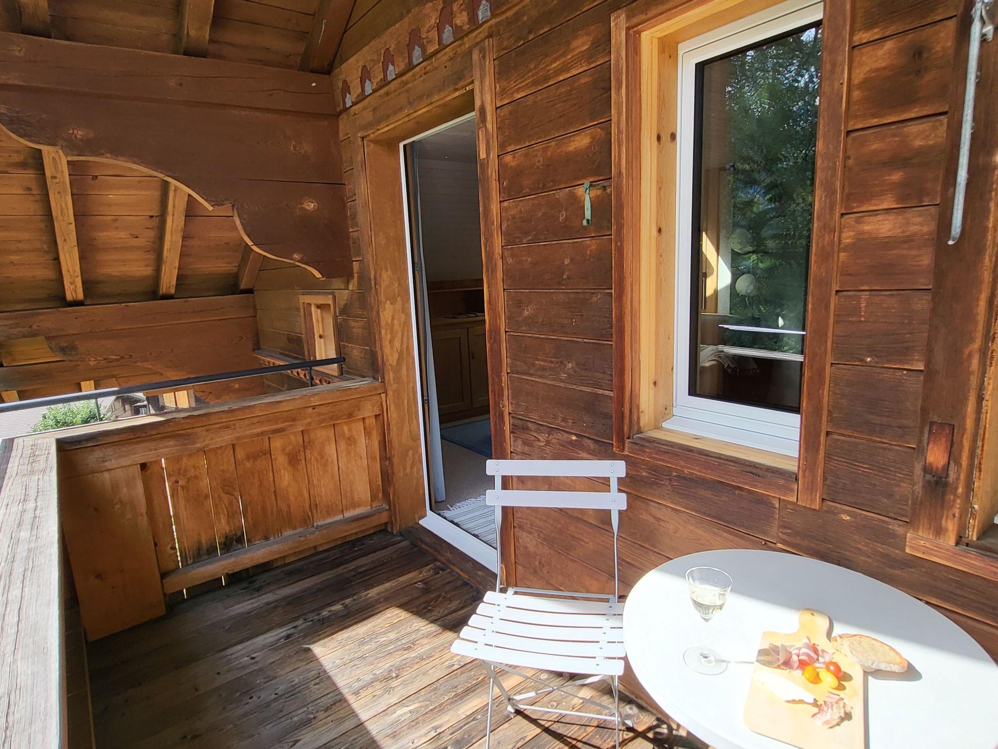 55 m2. More information by the provider: Cozy chalet with one holiday flat, sunny, quiet and hillside location with a beautiful view onto the mountains. 5 minutes walking distance to the village center.