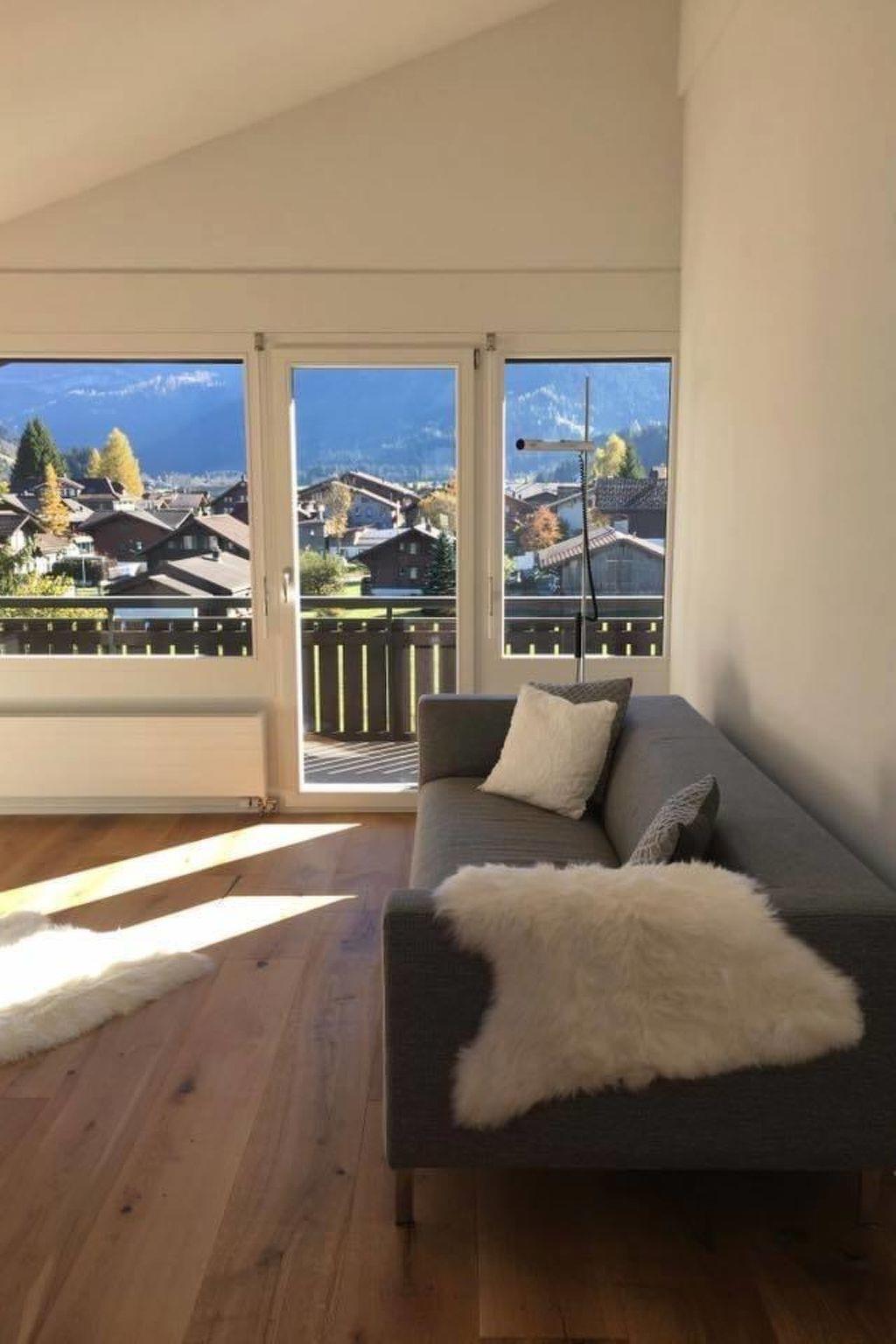 70 m2. More information by the provider: Summer: Check-in 16h00, Check-out: 11h00 Winter: Check-in Sunday 17h00, Check-out 11.30 3-room apartment in a chalet, fully renovated, modern and luxurious. A quiet and idyllic location but still situated very centrally with a magnificent view of the mountains. You will also find a lawn in front of the house. It’s only a 5 minute walk to the train station, the „Mauren-Skilift, the Wallbach baths, to restaurants and shops. The apartment is a perfect starting point for skiing in the winter and hiking, biking and golfing (golfclub Gstaad-Saanenland) in the warmer seasons.