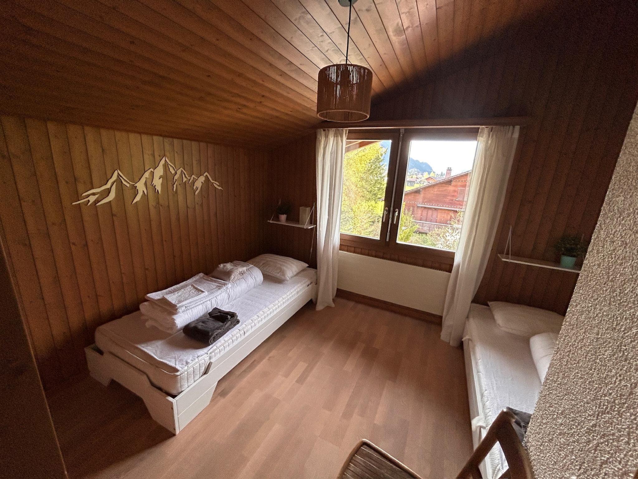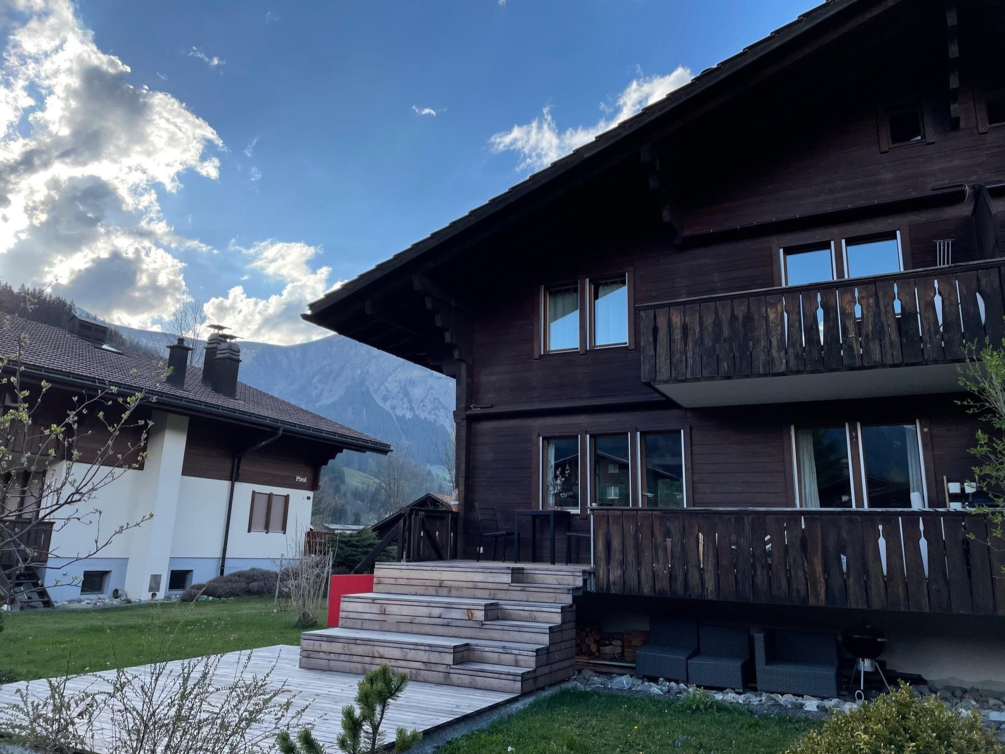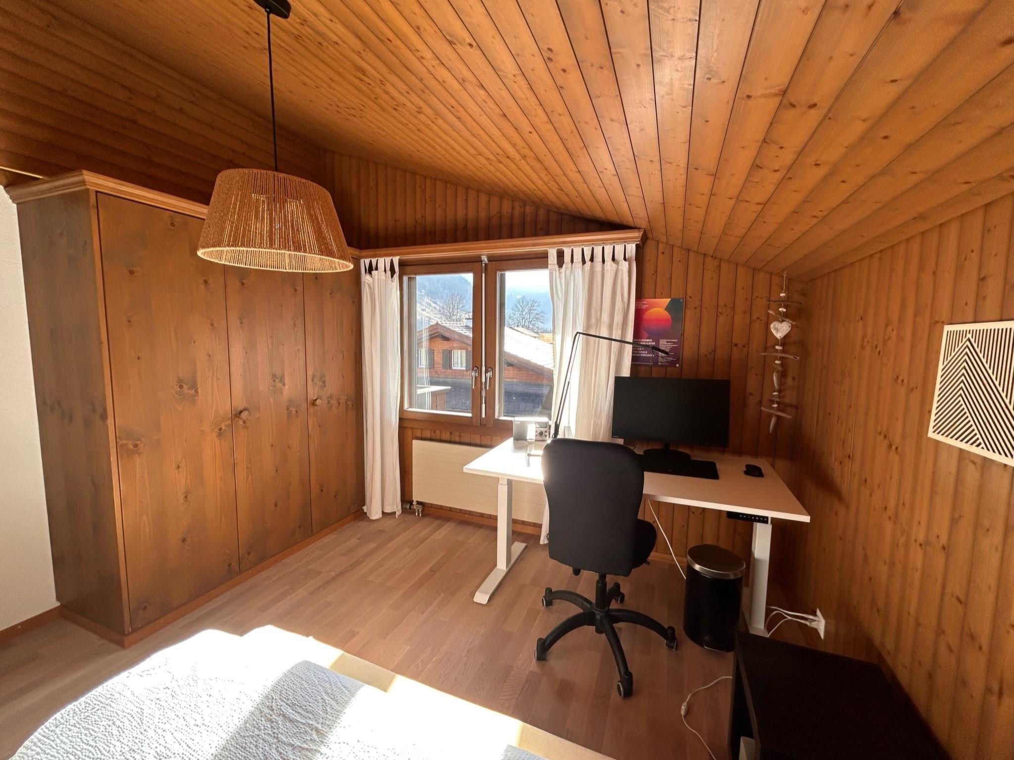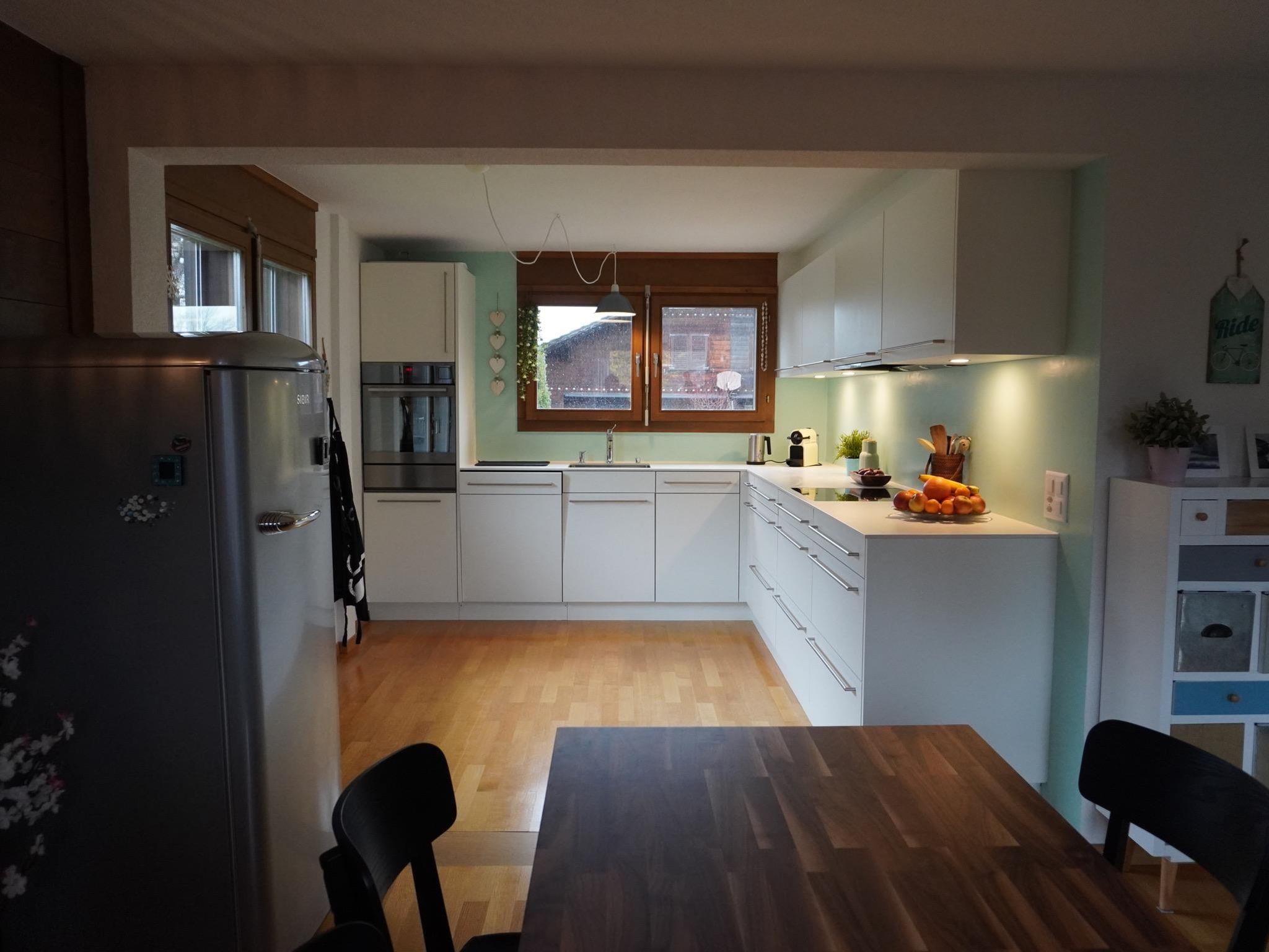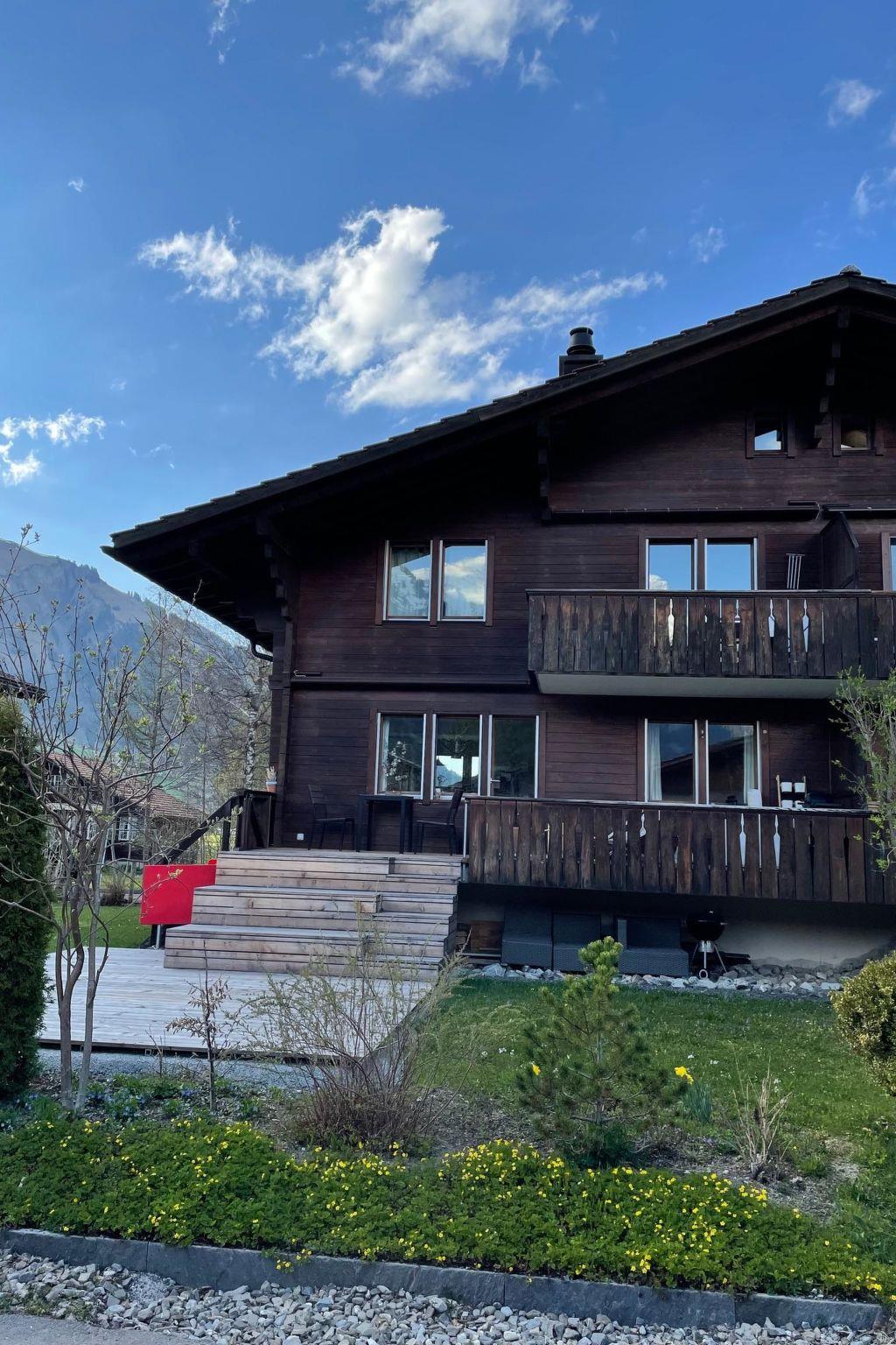 110 m2. More information by the provider: The 2-family house is on the outskirts of the town in a quiet area, in a sunny location with a panoramic view of the beautiful mountains. The apartment extends over four floors from the basement to the habitable attic room. The large terrace on the ground floor invites you to spend cozy hours in the sun. The apartment has two bedrooms with a double bed and one bedroom with two single beds. In one bedroom there is also a height-adjustable office table with a monitor for work. A steep staircase leads to the attic room, which also offers two single beds. Highlights: cozy and modernly furnished apartment, large and well-equipped kitchen, close to the Lenkerseeli children's playground (10 minutes on foot), cross-country ski trail and ski area, set up for work, reach the village center in 10 minutes on foot.