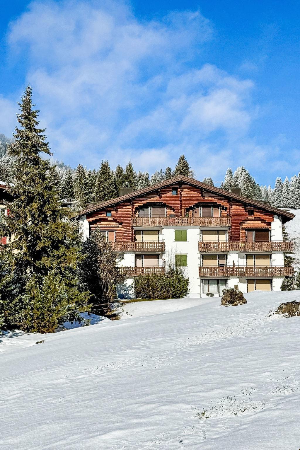 Valbella 3 km from Lenzerheide: Cosy, comfortable apartment house "Chesa Gop", 1'500 m a.s.l., 4 storeys, built in 1980. On the outskirts, 700 m from the centre, in a quiet, sunny position, 200 m from the lake, 500 m from the skiing area. In the house: storage room for skis, central heating system. Motor access to the house. 4x4 car recommended in winter. Communal covered parking at the house. Supermarket 700 m, restaurant 120 m, bus stop "Valbella, Seehof" 90 m, indoor swimming pool 2 km, bathing lake 1 km. Ski lift 500 m, skisport facilities 1 km, slopes 500 m, ski rental 1 km, ski bus stop 90 m, ski school 1 km, cross country ski track 150 m. Please note: In case of good snow conditions, the house is accessible on skis. The photo is just an example.