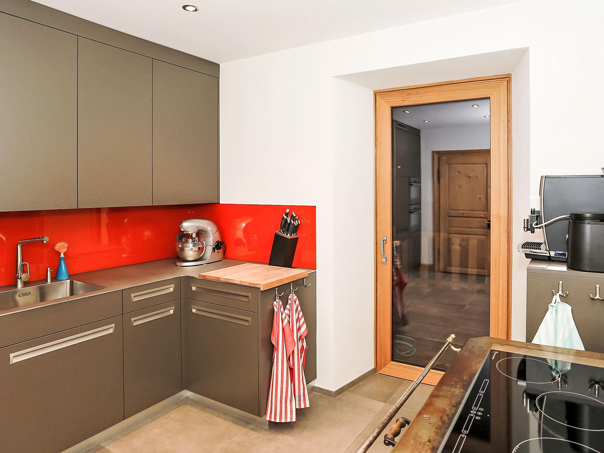"von Capeller", 8-room house 269 m2. Spacious and bright, fully renovated in 2014, tasteful and stylish furnishings: living room with cable TV, flat screen, video, radio, CD-player, hi-fi system, DVD and DVD collection available. Exit to the terrace. Dining room. Large kitchen (oven, dishwasher, 4 induction hot plates, freezer, electric coffee machine, steamer, raclette grill, fondue Set (chinoise, cheese)). Sep. WC. On the lower ground floor: with Home cinema. Upper floor: 1 room with 2 beds (90 cm, length 200 cm). 2 double bedrooms, each room with 1 double bed (2 x 90 cm, length 200 cm). Shower/WC. 2nd upper floor: 1 room with 2 beds (90 cm, length 200 cm). 1 double bedroom with 1 double bed. Shower/WC. Wooden floors. Balcony, large terrace 47 m2. Terrace furniture, balcony furniture, deck chairs (6). Very beautiful panoramic view of the mountains, the ski run and the countryside. Facilities: washing machine, dryer, iron, baby cot, hair dryer. Internet (WiFi, free). Parking (3 cars) at the house. Please note: suitable for families. Non-smoking house. Maximum 2 pets/ dogs allowed. No lift. TOP: Large loggia with Klafs sauna/sanarium. KitchenAid food processor and mixer, two raclette sets and two fondue and chinoise sets each.