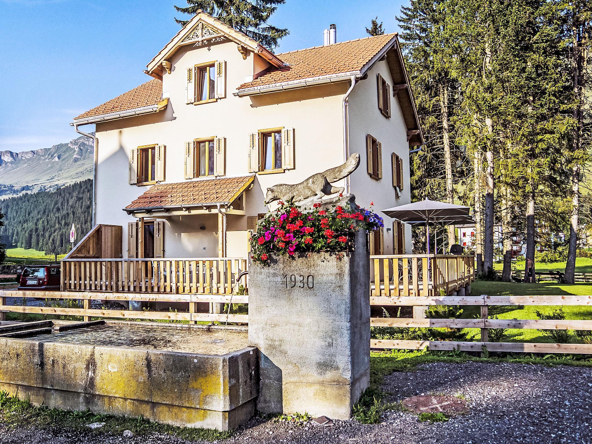 Parpan 5 km from Lenzerheide: Throughout the house: wireless LAN, central heating and central vacuum. Important Information: home cinema room: Samsung SMART TV 65 " Curved UHD HU8580 3D 7.1 Home Entertainment, radio, CD, DVD, 3D Blue-ray player and DVD collection and 3D available. Luxurious single-family house "von Capeller", 1'511 m a.s.l., 4 storeys, detached from the 19th century, built in 1900, renovated in 2014, surrounded by trees and meadows. In the centre of Parpan, in a secluded, quiet, sunny position, excellent location: right in the centre but still quiet, 5 km from the lake, directly by the skiing area, in the countryside, south-east facing position. Private: natural state property 1'570 m2 (fenced), beautiful garden to relax. Patio, terrace, garden furniture, barbecue. In the house: sauna, storage room for skis, central heating system, washing machine, tumble dryer. Motor access to the house. Parking (for 4 cars) at the house. E-charging station. Shop 50 m, grocery, 2 minute walk to the centre, bus stop 50 m, indoor swimming pool 5 km, bathing lake "Heidsee" 5 km. Golf course (18 hole) 10 km, walking paths from the house 5 m, ski lift 250 m, ski bus stop 50 m, sled run 200 m, cross country ski track 10 m, ice rink 20 m. Please note: suitable for families, baby equipment (included).