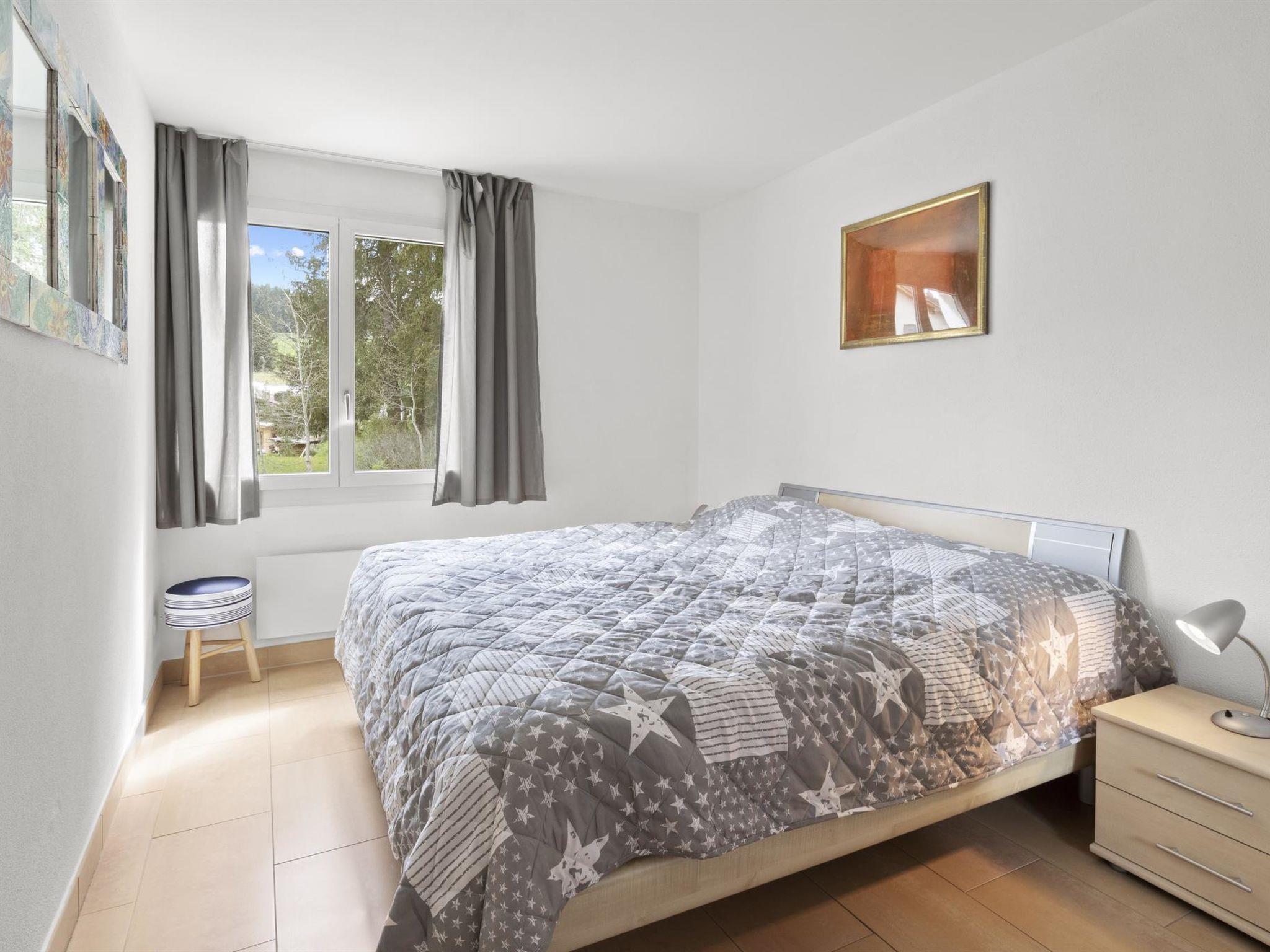 The apartment is comfortably furnished with a bedroom with a double bed, a bedroom with 2 single beds and an open living room with a sofa and sofa bed. A toddler bed is also available. The apartment has a bathroom with bathtub/shower/toilet and a separate toilet with sink. The living room is equipped with a Swedish stove, an OLED SmartTV with Netflix and a stereo with CD, DBA and Bluetooth. Another flat screen TV with CD and satellite TV is in the bedroom. The kitchen is fully equipped with an oven, microwave oven, dishwasher, Nespresso coffee machine, raclette oven and fondue set. The extendable table with corner bench offers space for up to 6 people. On the balcony there is a table with 4 chairs and an electric grill. Iron, ironing board and clothes horse are available in the apartment. Washing machine and tumble dryer are available for common use in the house.
