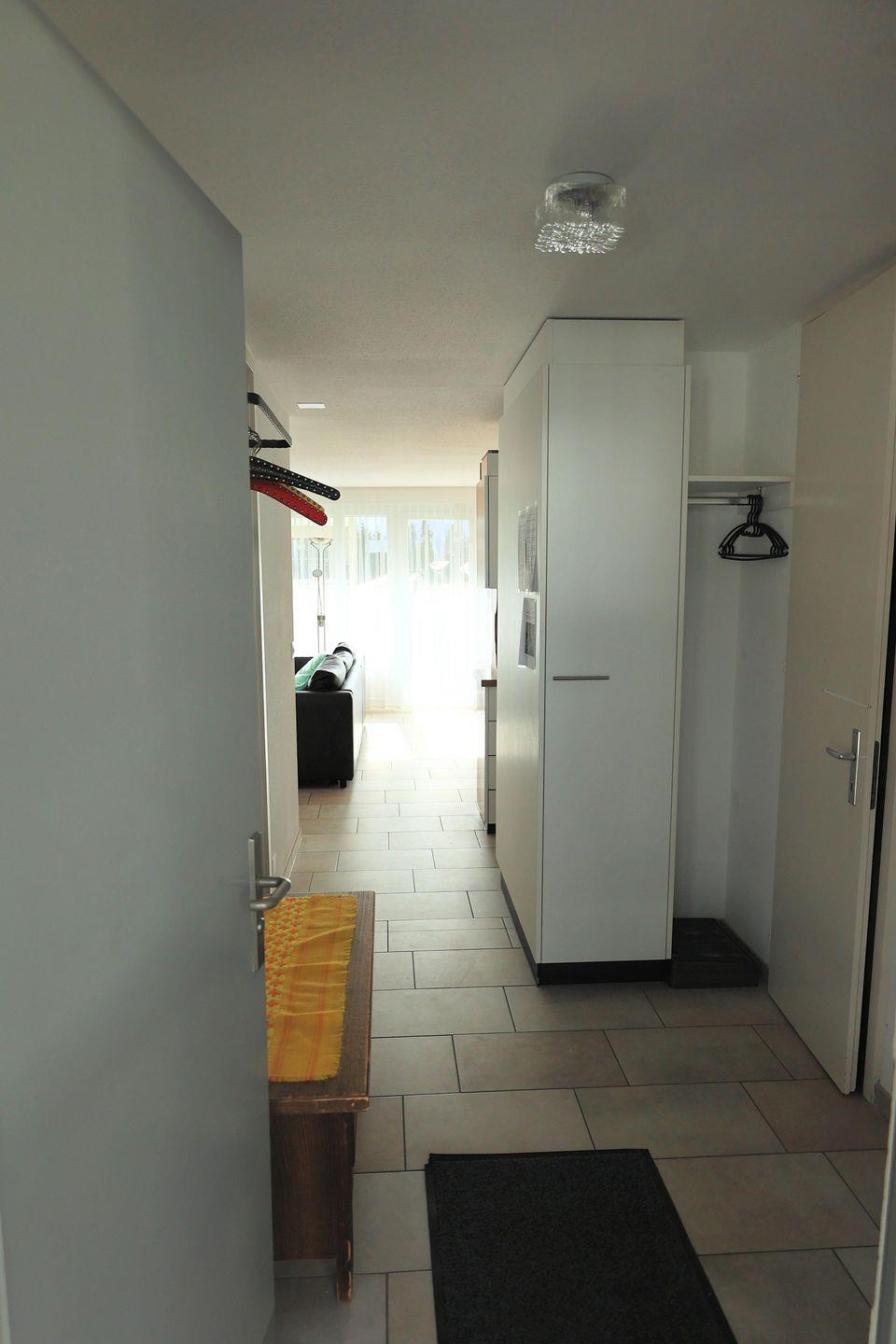 2-Zimmer-Wohnung mit Plattenboden im Wohnbereich im 5. Obergeschoss bestehend aus: Entrée mit Garderobe, Dusche / Lavabo, WC / Lavabo, im Wohnzimmer integrierte Küche mit 4-Platten-Glaskeramikherd, Geschirrspüler, Backofen, Kühlschrank und diversen Einbauschränken, Wohn- / Esszimmer mit TV/Radio, Sitzgruppe, Esstisch und 2 Wandklappbetten, Südbalkon, Doppelzimmer mit 2 Normalbetten, Gratis W-Lan, Garagenplatz Nr. 76 in der Tiefgarage, zur Mitbenützung: Personenaufzug, Skiraum sowie kostenpflichtige Waschmaschine und Tumbler, Wohnfläche ca. 68 m2, Nichtraucherwohnung / Keine Haustiere erlaubt! Garagenhöhe 1,80 m