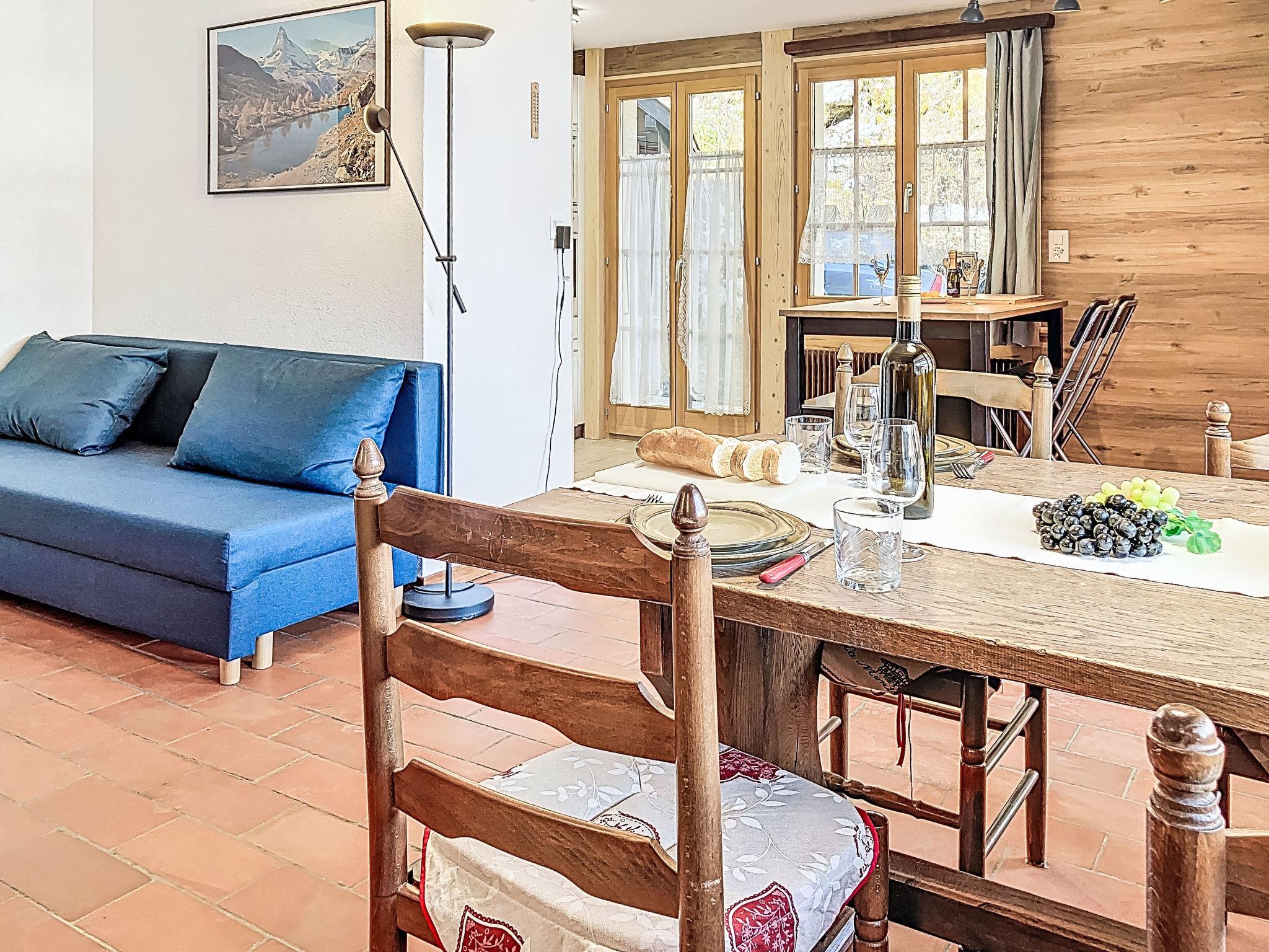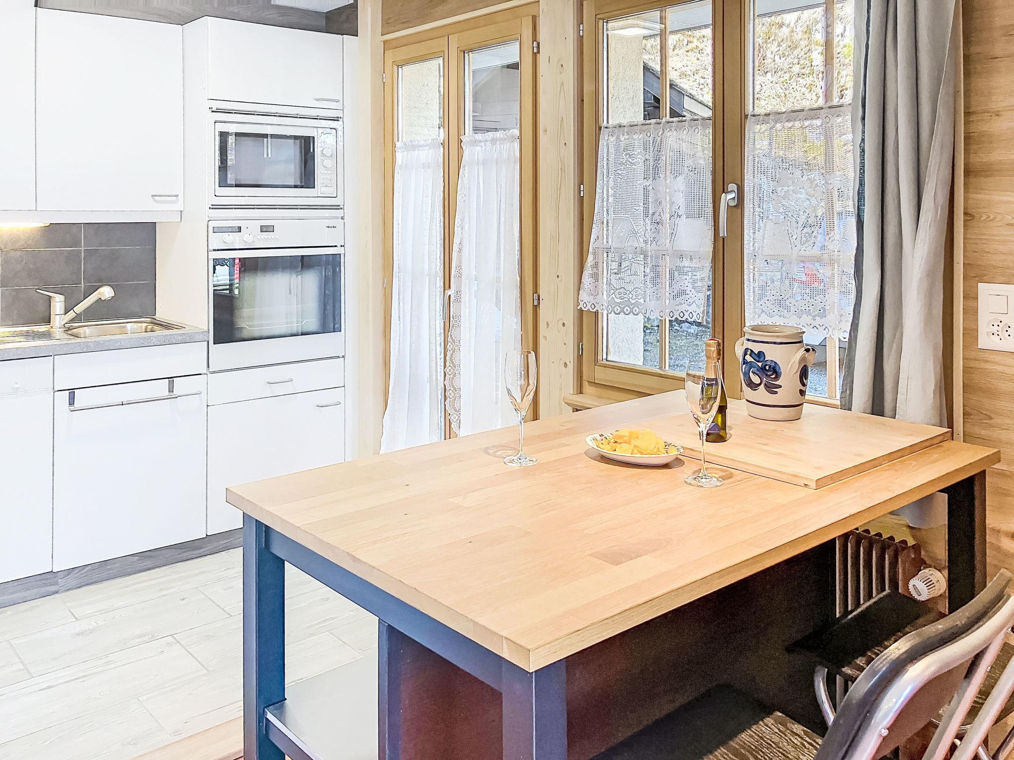 "Chalet L'Aube", 2-room apartment 50 m2, on the ground floor. Comfortable and tasteful furnishings: living/dining room with open-hearth fireplace and satellite TV. Exit to the terrace, south-east facing position. 1 room with 2 beds (90 cm, length 200 cm). Open kitchen (oven, dishwasher, 4 ceramic glass hob hotplates, toaster, kettle, microwave, freezer, electric coffee machine, Capsules for coffee machine (Dolce Gusto), raclette grill, fondue Set (cheese)). Shower/WC. Oil heating. South-east facing position, terrace. Terrace furniture. Very beautiful view of the mountains. Facilities: Internet (WiFi, free). Parking (1 car) at the house. Please note: non-smokers only.