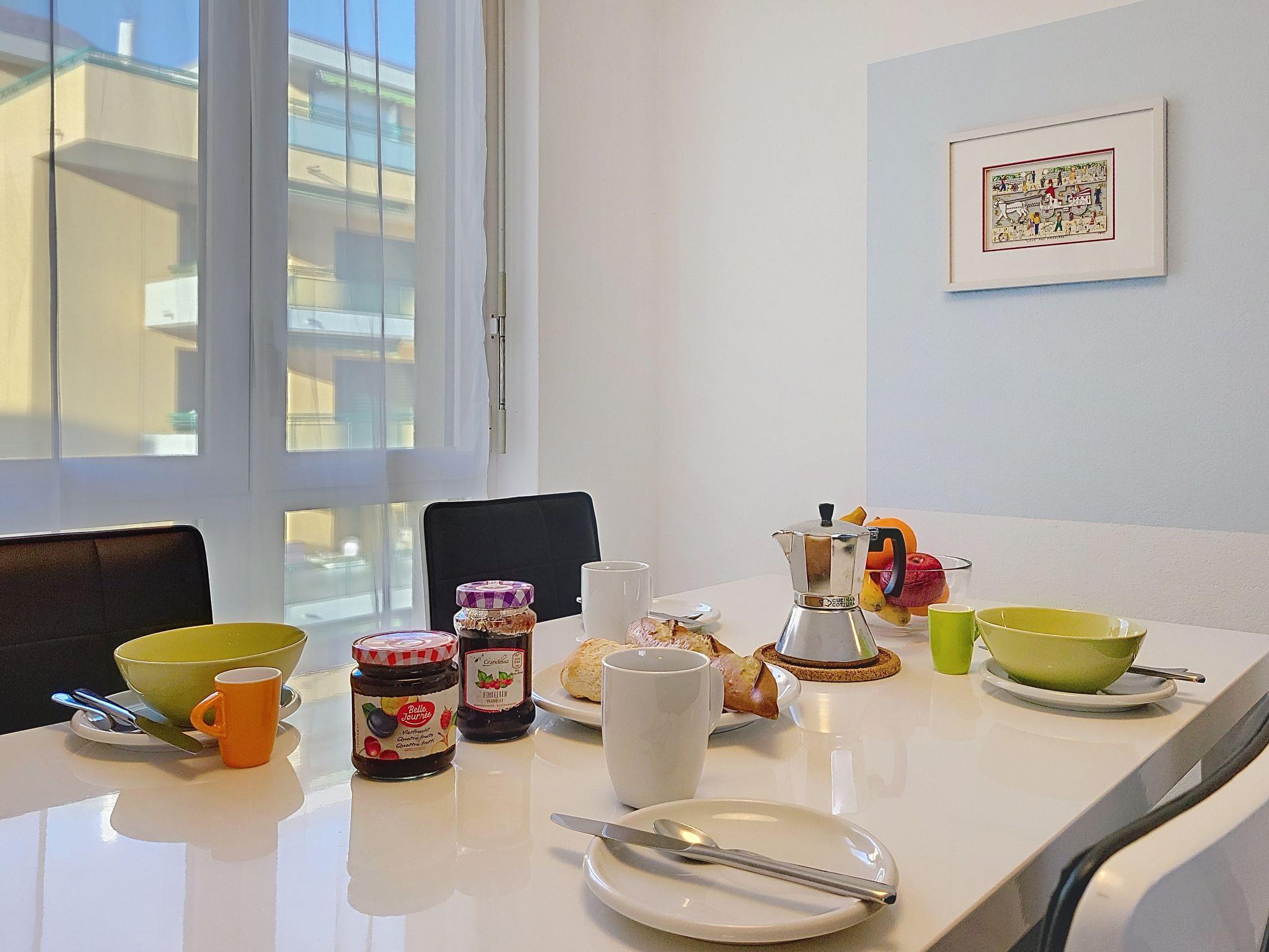 Locarno 1 km from Piazza Grande: Beautiful, comfortable apartment house "Residenza Robinia", 5 storeys. In the resort, 800 m from the centre, 300 m from the lake, 400 m from the river. For shared use: park, well-kept garden trees. Boccia, barbecue. In the house: lift, central heating system, heating available only from 15.Oct. - 30.Apr.. Motor access to the house. Communal covered parking at the house. Supermarket 800 m, shopping centre 600 m, restaurant 40 m, café 50 m, pedestrian zone 800 m, bus stop "Sacra Famiglia, Linie 4" 170 m, railway station "SBB - CFF Locarno" 1.5 km, outdoor swimming pool, indoor swimming pool 750 m, thermal baths "Termali & Salini SPA". Golf course (18 hole) 3.2 km, minigolf 550 m, walking paths from the house 10 m. Nearby attractions: Falconeria, Locarno, Piazza Grande, Locarno, Lido Locarno, Parco Camelie, Madonna del Sasso, Monte Verita, Lido di Ascona. Well-known ski regions can easily be reached: Bosco Gurin, Airolo, Cari, Campo Blenio. Well-known lakes can easily be reached: Lago Maggiore, Lago di Lugano. Hiking paths: Cardada-Cimetta, Monte Bré, Vallemaggia - Valle Verzasca, Centovalli.