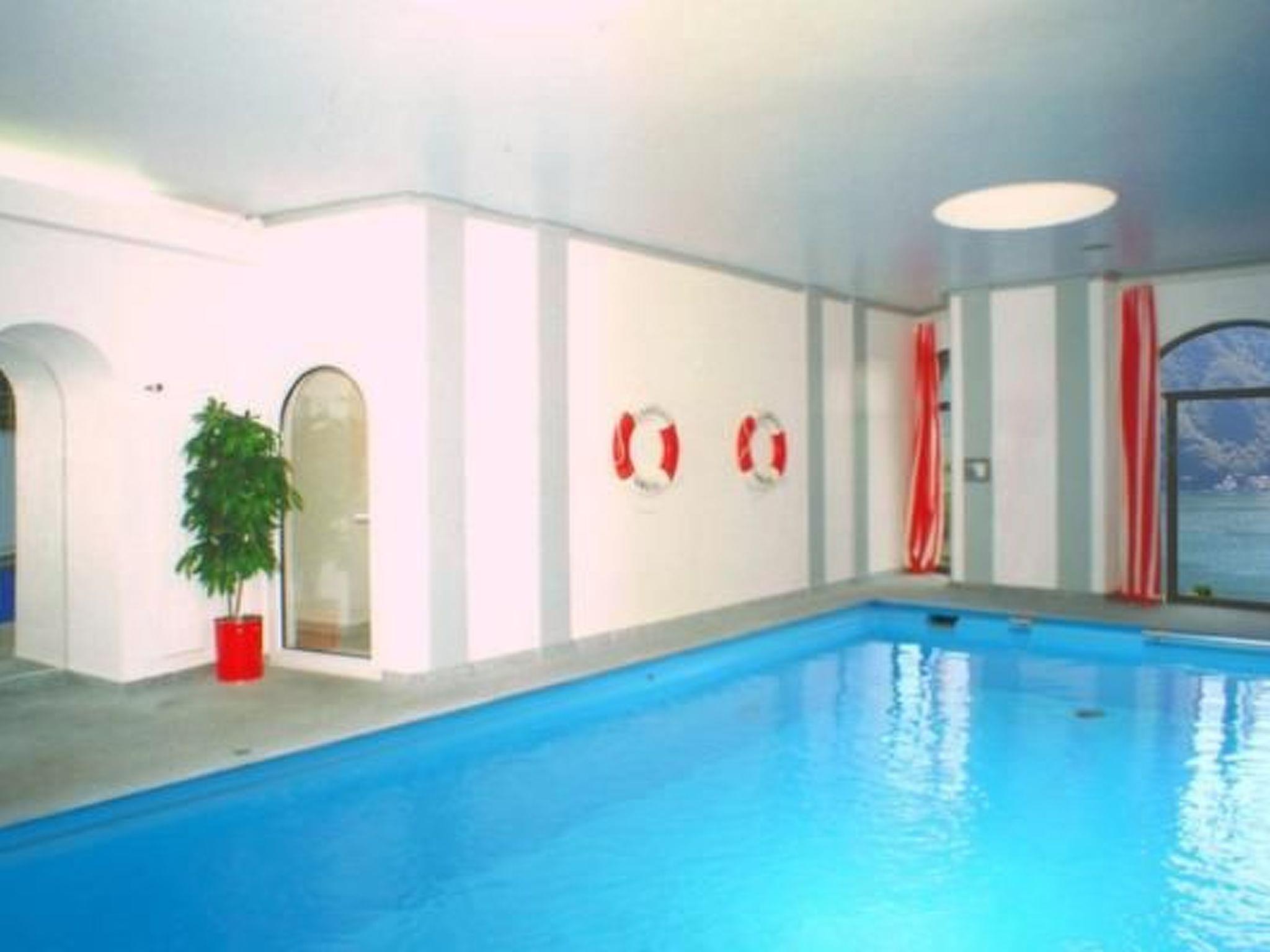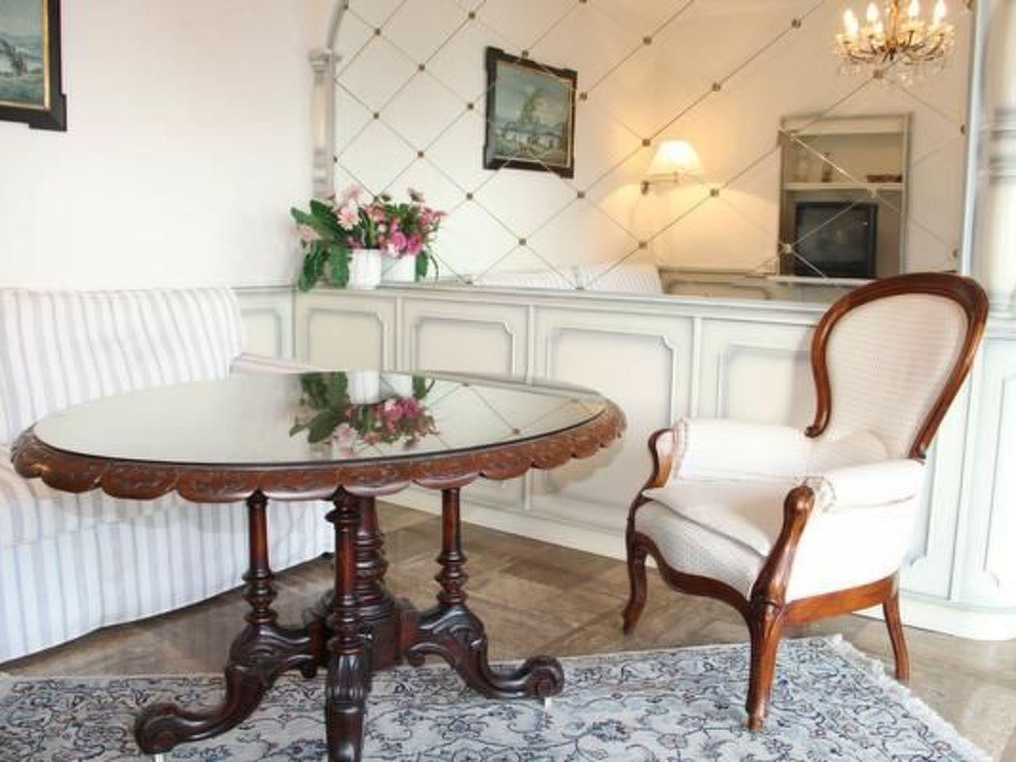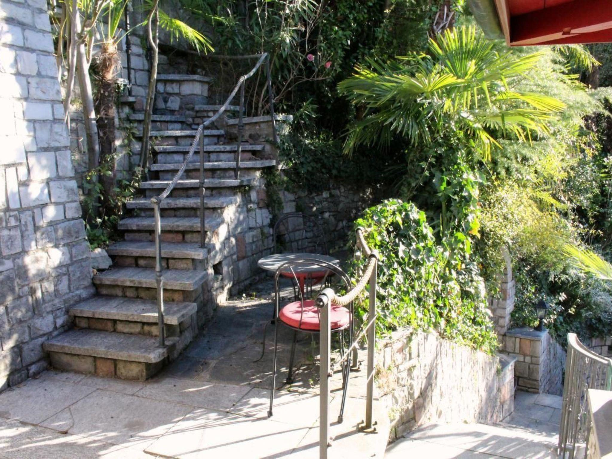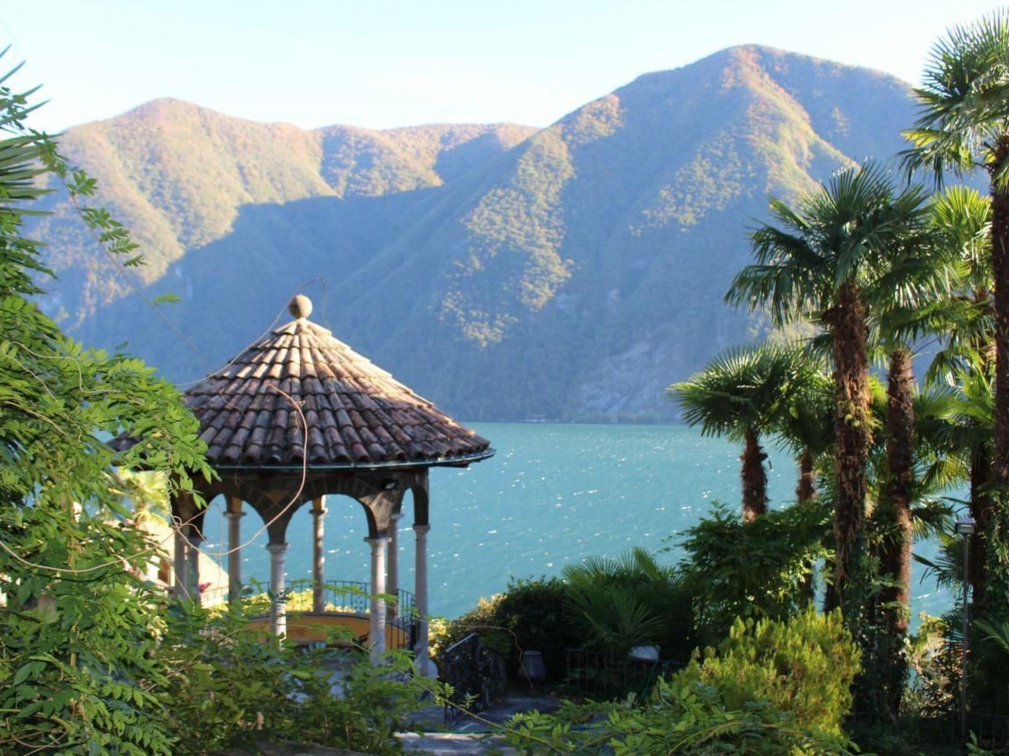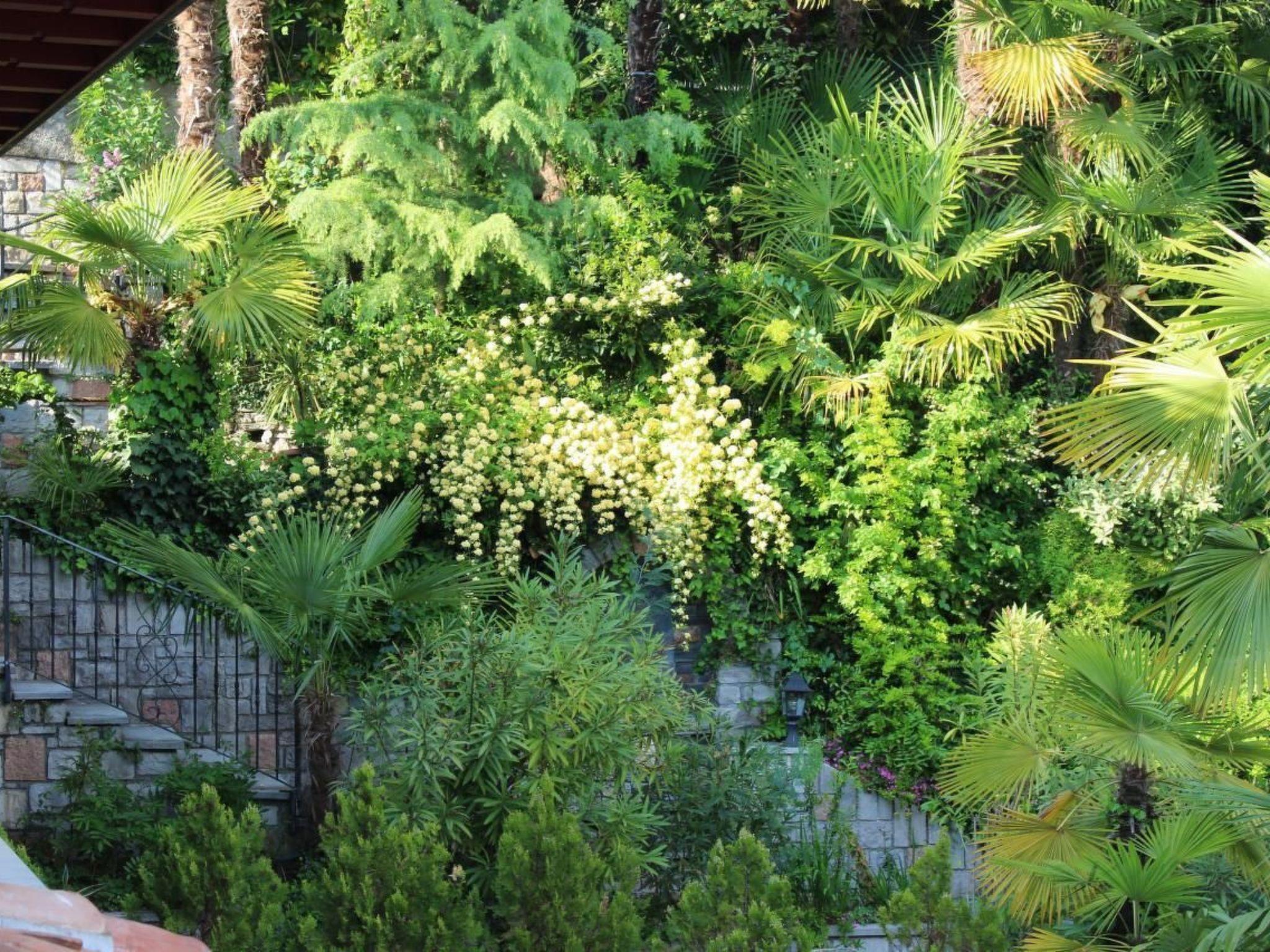 2 1/2 room flat IV A 1st floor with private entrance from outside for 2 persons.1 extra bed on request. Cable TV, mobile telephone possible, WiFi. 2 terraces with dining area + deckchairs, 1 terrace with direct access to the garden (with own fenced garden section/garden path for the dog amidst palm, olive, laurel and camellia trees) and garden gate to the ancient olive footpath to Gandria. Lake view. Car park or garage for a fee. Small living room with air conditioning, sofa bed 0.9x2 m. 1 double bedroom with fan. Cot on request for a fee. Country-style kitchen with dining area for 3 people and with 4 ring hob, dishwasher, microwave with grill, oven, extractor fan, window. Bathroom: bathtub with shower curtain, WC, bidet, infrared radiator, small mirror cabinet, window. Non-smoking flat. The 5-star BARONY LE PERGOLE with 3 villas with 10 luxurious maisonette flats for 1 - 9 persons is located in the exclusive district of Lugano-Castagnola at the foot of "Monte Bre" (the sunniest mountain in Switzerland) at the beginning of the romantic lakeside path to the fishing village of "Gandria" 1.3 km. The residence is situated in a terraced Mediterranean tree garden (close to nature) with palm trees and a wonderful view of Lake Lugano and the nearby mountains; quiet and sunny between a private cul-de-sac and the ancient olive footpath of Castagnola. Covered swimming pool free of charge (4 m x 8 m) from 30 June-Sept. + 140 sqm sun terraces. All flats are tastefully + comfortably furnished. Cots available.