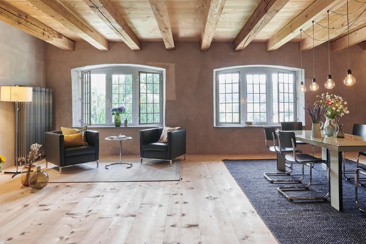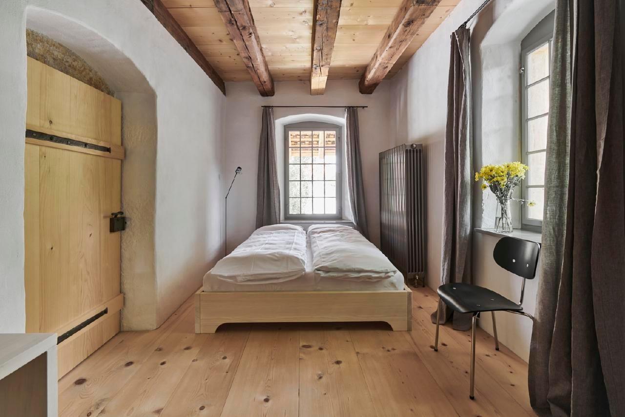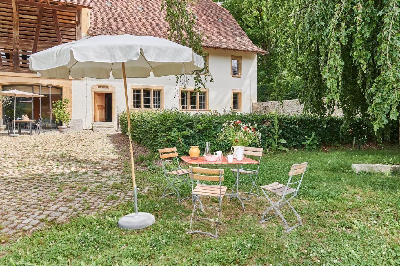 The Schlossgut Münchenwiler is a historic house, a listed building. Although it is technically equipped to modern standards, we would like to point out that certain functional details such as window and door openers, stair handrails and step heights do not comply with current standards and may be a potential source of danger. The tenant is aware of these circumstances. The owner, e-domizil and the Vacation in architectural monument foundation decline any liability.