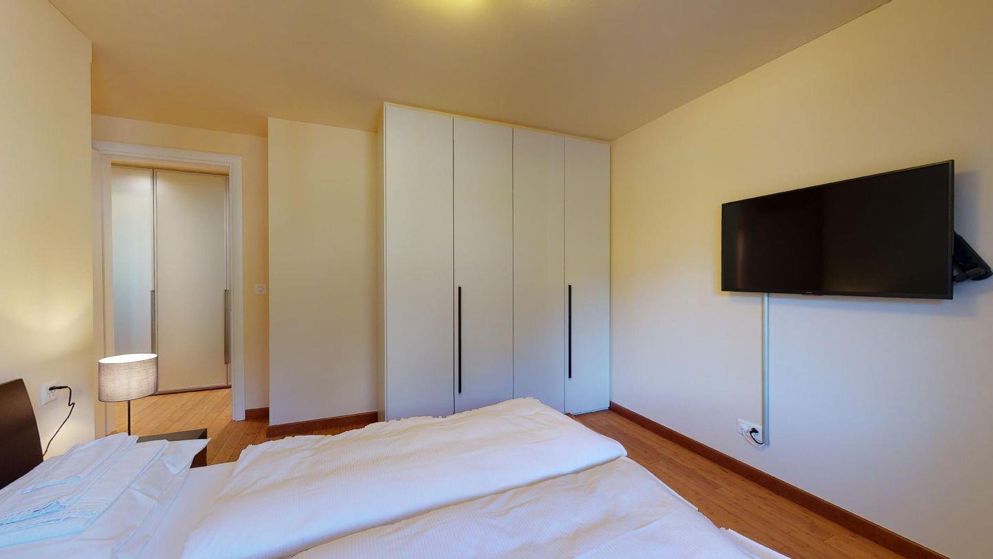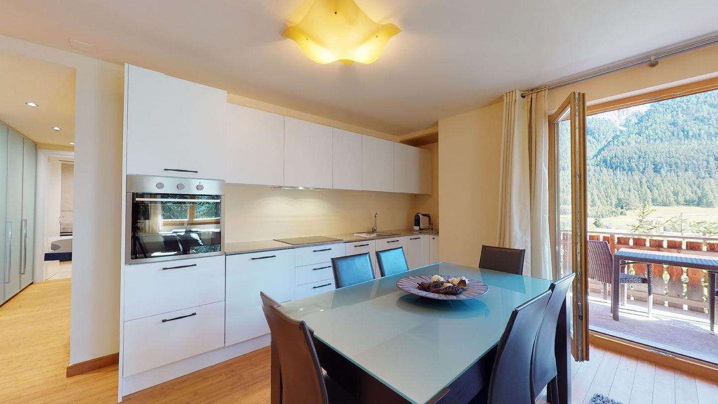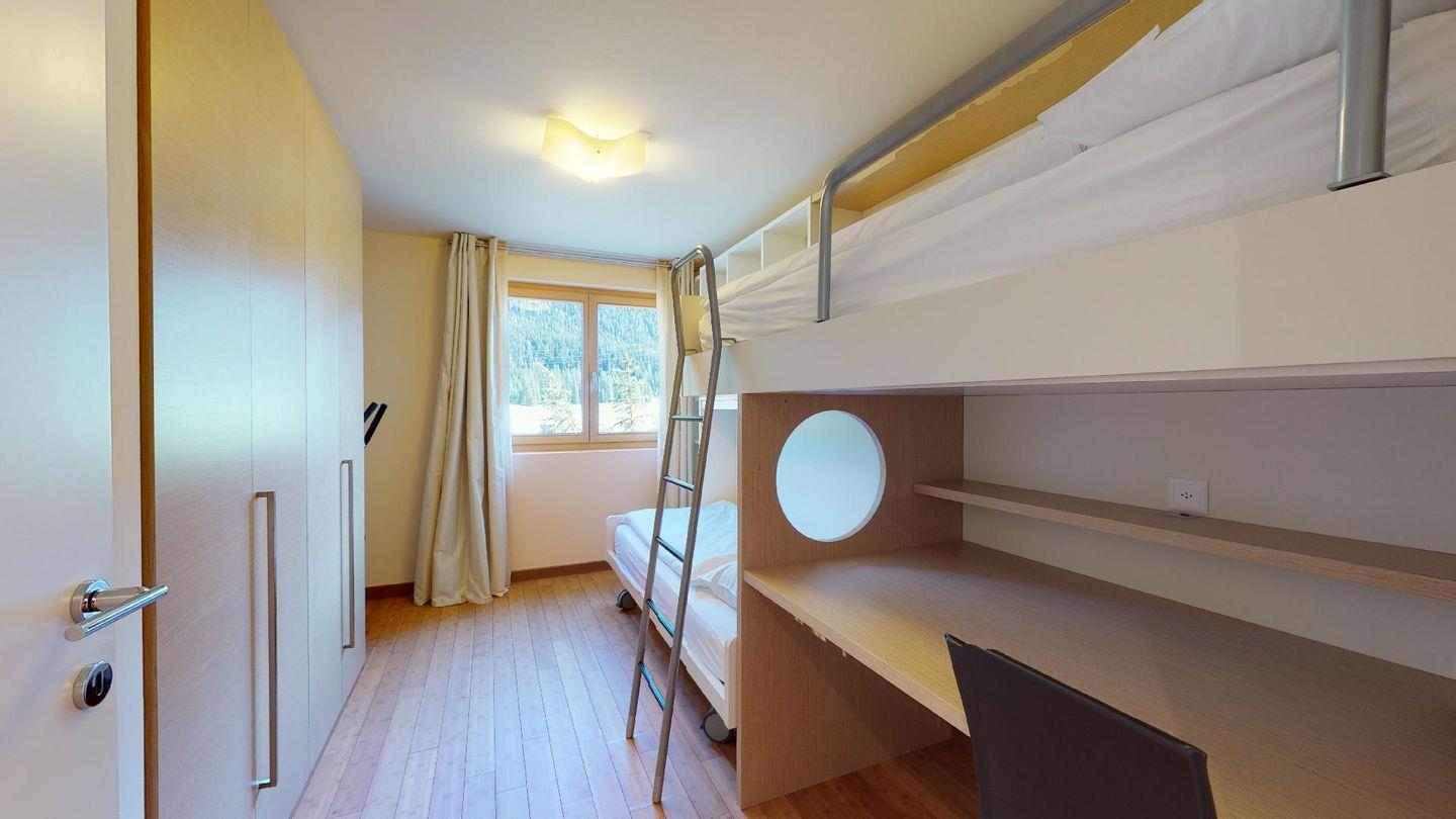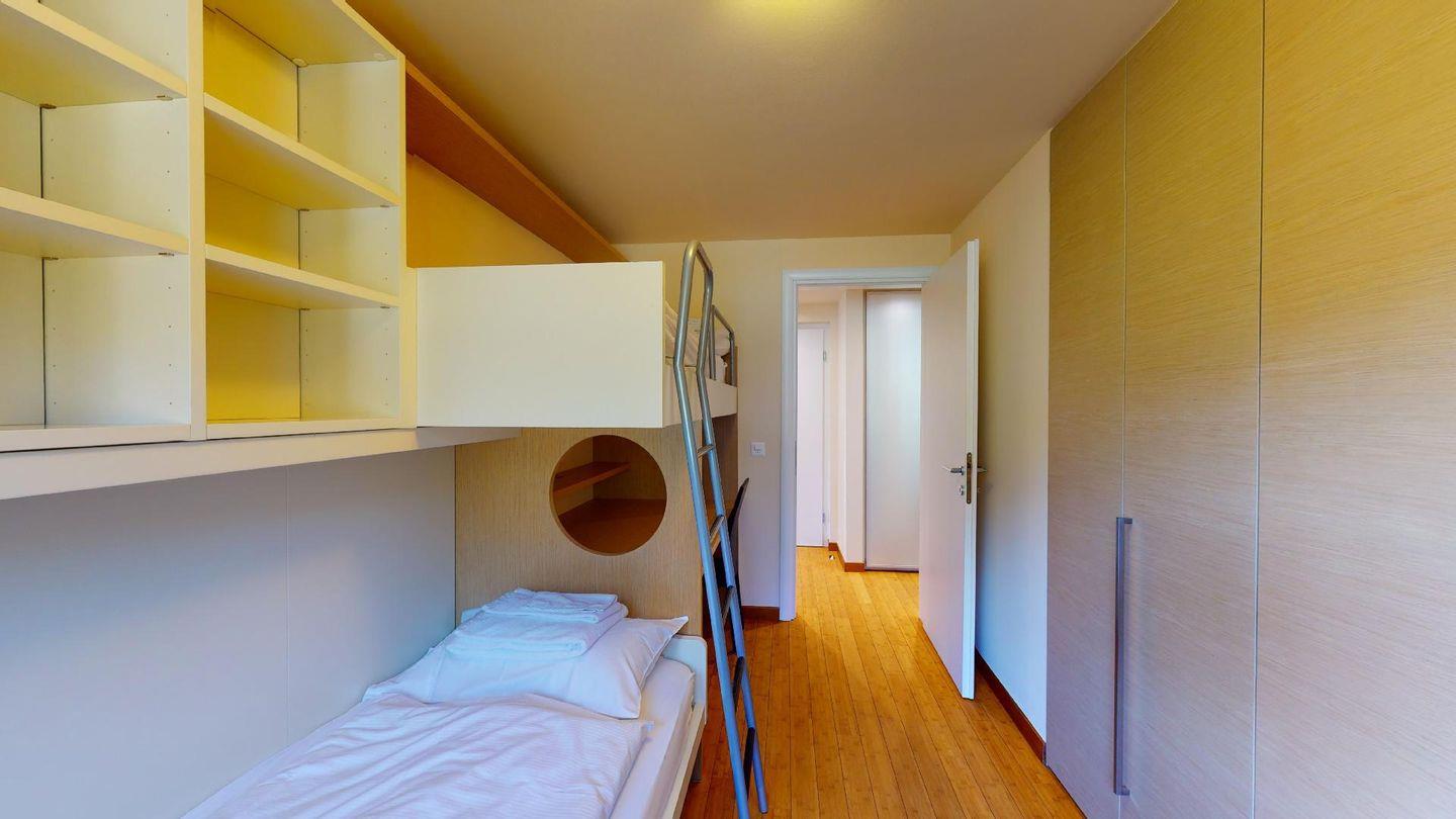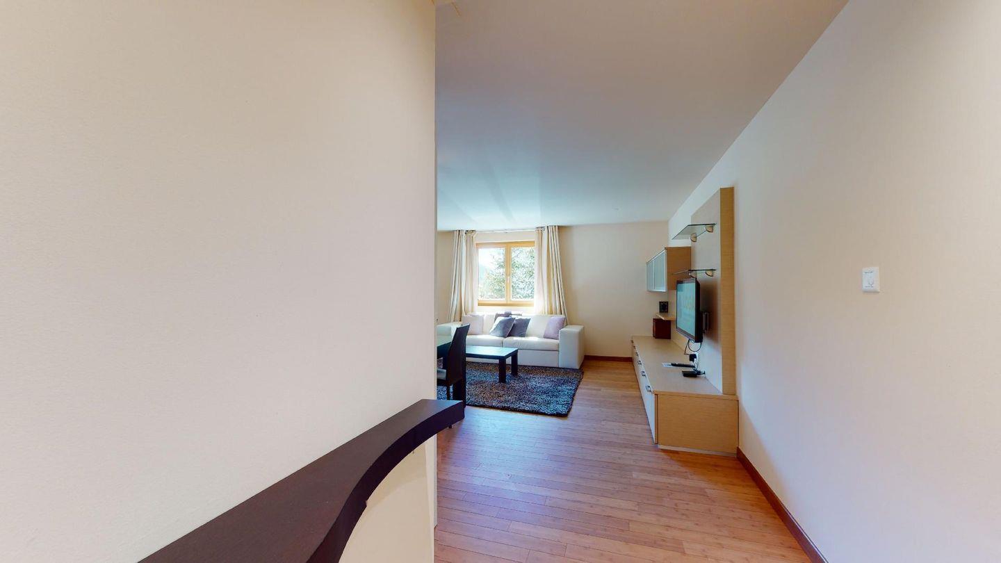 Moderne 3½ Zimmerwohnung im 1. Stock, ca. 67m² gross. Eingang mit Garderobe. Offenes Wohn- und Esszimmer mit Küchenzeile. Esstisch mit sechs Stühlen, ein Sofa, Smart-TV und Balkon. Küche mit Herd, Ofen, Kühlschrank und Geschirrspüler. Ein Doppelzimmer mit Smart-TV. Ein Zimmer mit einem Einzelbett und einem Hochbett. Badezimmer mit Wanne, Lavabo, Toilette und Bidet. WLAN. Gemeinsamer Ski- und Veloraum, sowie Waschmaschine im Untergeschoss. 1 Parkplatz in der Tiefgarage (Höhe max. 210 cm).