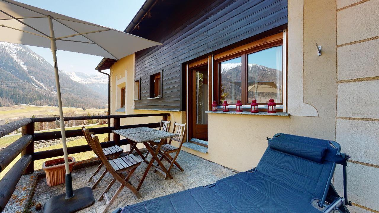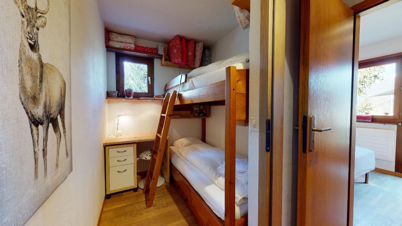 Die gepflegte Wohnung verfügt über ein Schlafzimmer mit einem Doppelbett und ein kleines Schlafzimmer mit Etagenbett. Somit eignet sich die Wohnung sowohl für Paare als auch für eine Familie mit Kleinkindern. Vom Elternschlafzimmer gibt es einen Zugang zur Terrasse (Gartenmöbel sowie Sonnenschirm vorhanden). Ein Badezimmer mit Dusche steht zur Verfügung und ebenso eine komplett ausgestattete Küche mit Kombi Steamer. Das Wohnzimmer lädt zum Verweilen ein und verfügt über ein Sofa mit TV, einem Esstisch und ein Cheminèe. WLAN-Internet und Swisscom-TV stehen zur Verfügung. Ein Garagenplatz kann kostenpflichtig hinzugebucht werden und befindet sich in unmittelbarer Nähe.