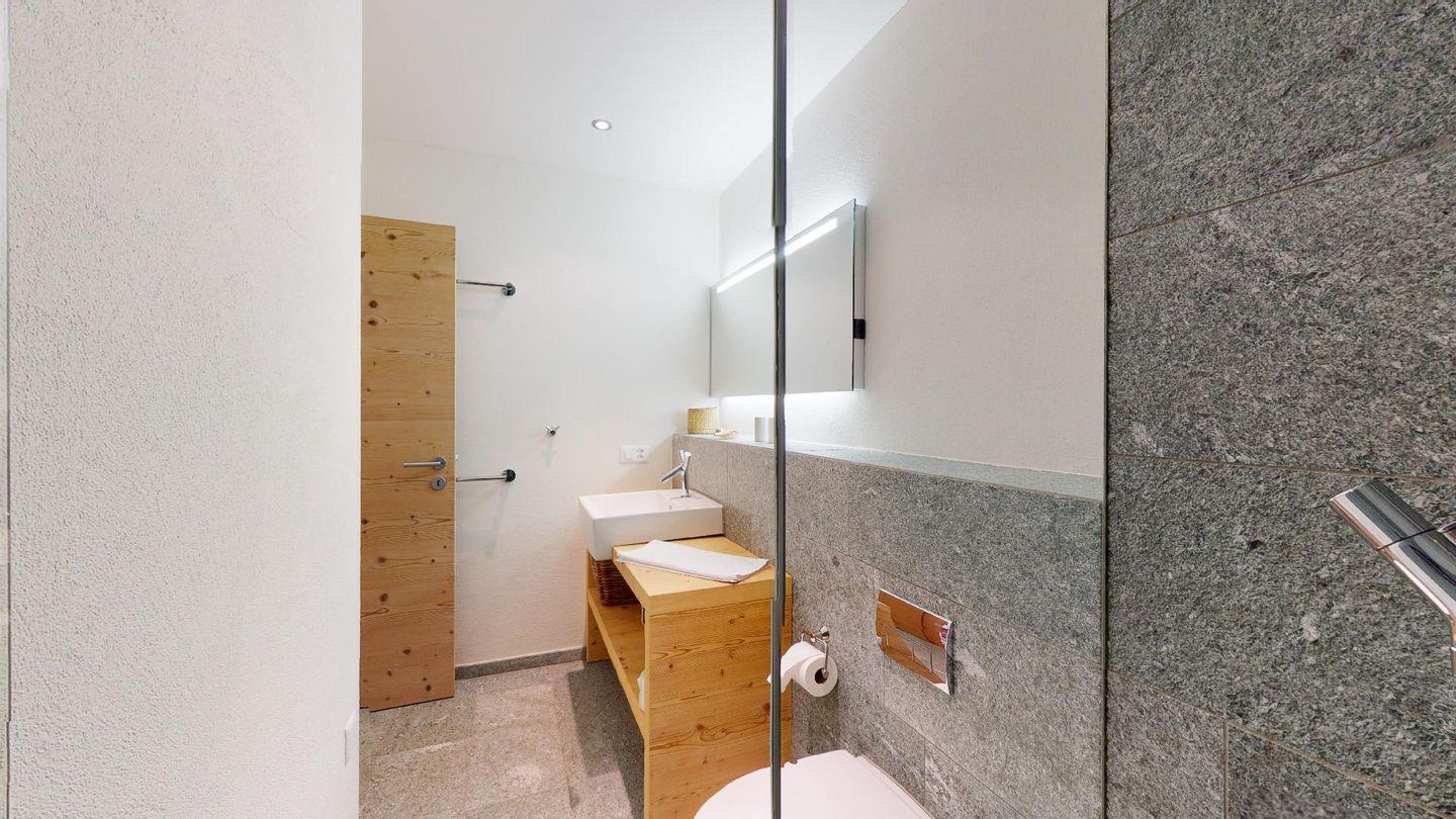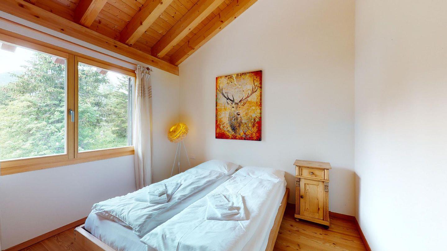 Schöne, 3½ Zimmerwohnung im 2. Stock. Eingang mit Garderobe. Doppelschlafzimmer (160 cm x 200 cm) mit eigenem Badezimmer mit Dusche, WC, Waschbecken. Über die Sprossenleiter im Schlafzimmer erreichen Sie die Empore, wo sich zwei weitere Schlafplätze (nur für Kinder) befinden. TV-Zimmer mit einem Einzelbett. Offener Wohnraum mit Cheminée, Esstisch, Frühstücksecke und Küche. Küche mit Geschirrspüler, Kühlschrank mit Gefrierfach, Herd, Ofen, Toaster, Kaffeemaschine. Gäste-WC mit Waschbecken, Waschmaschine und Tumbler. Zwei Parkplätze. Gemeinsamer Skiraum im Keller. Fahrradständer in der Garage. Haustiere nicht erlaubt.