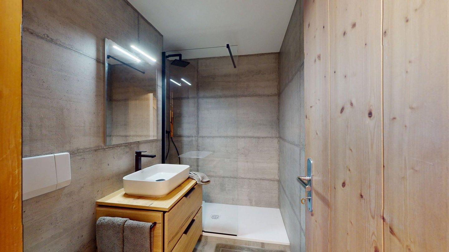 2½ -Zimmerwohnung auf der zweiten Etage, mit Lift. Entree mit Garderobe. Wohn-/ Esszimmer mit Ausgang zum Balkon. Radio/TV und Internet. Offene Küche mit Herd, Backofen, Kühlschrank mit kleinem Gefrierfach, Kaffeemaschine. Doppelschlafzimmer auf der Empore. Badezimmer mit Dusche/WC/Lavabo. Ein Parkplatz in der Garage. Ski- und Veloraum. Gemeinschaftliche Waschküche. Nichtraucherwohnung. Haustiere sind erlaubt.