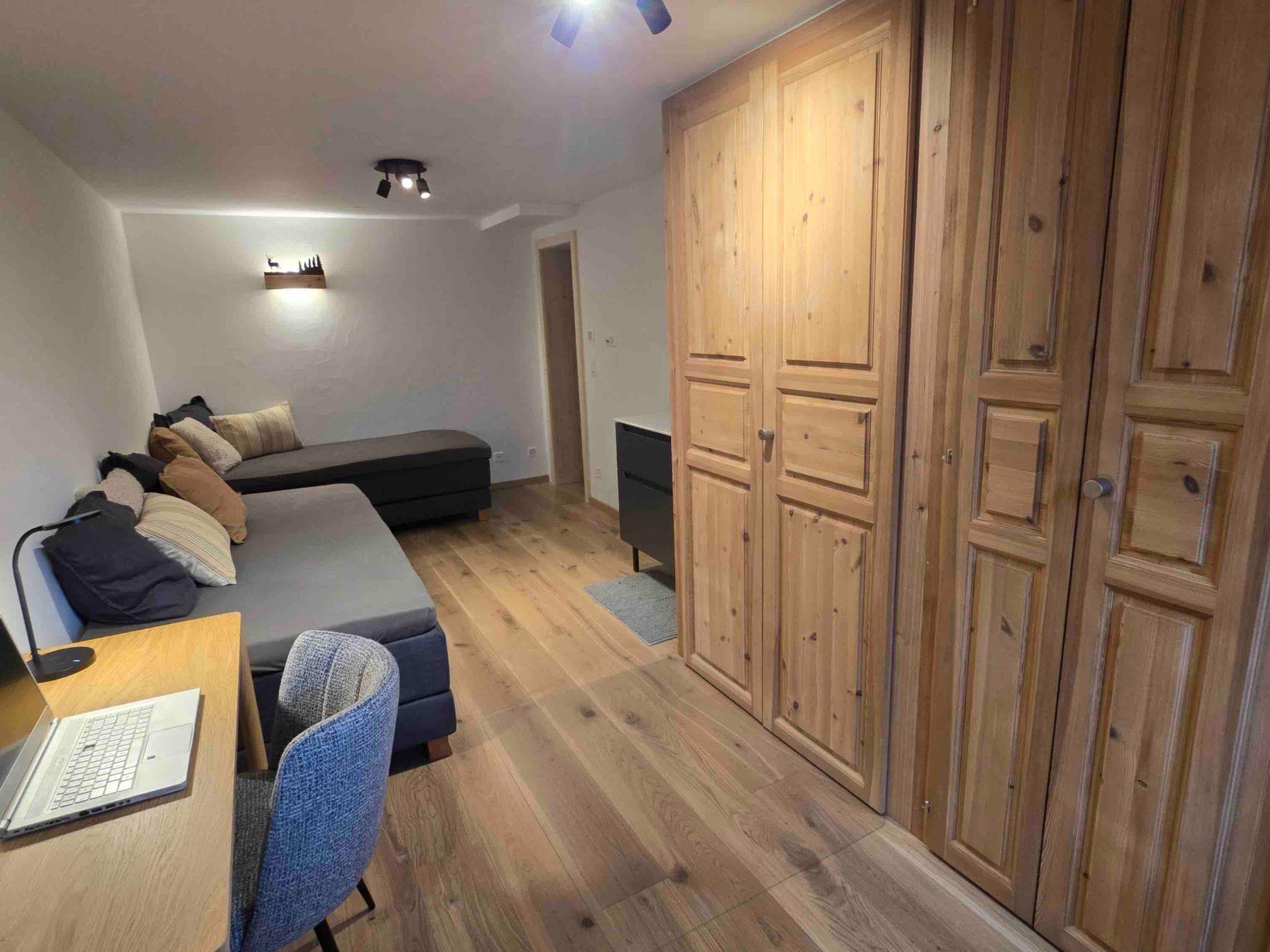 The exterior of the chalet does not disappoint, offering ample opportunities for outdoor enjoyment and relaxation. The spacious terrace invites you to bask in the tranquility of the surrounding area, while the balcony offers a more elevated spot to enjoy the fresh mountain air. The property's thoughtful positioning at the end of a quiet dead-end street enhances the sense of privacy and peace, making it the perfect setting to unwind and reconnect with nature.