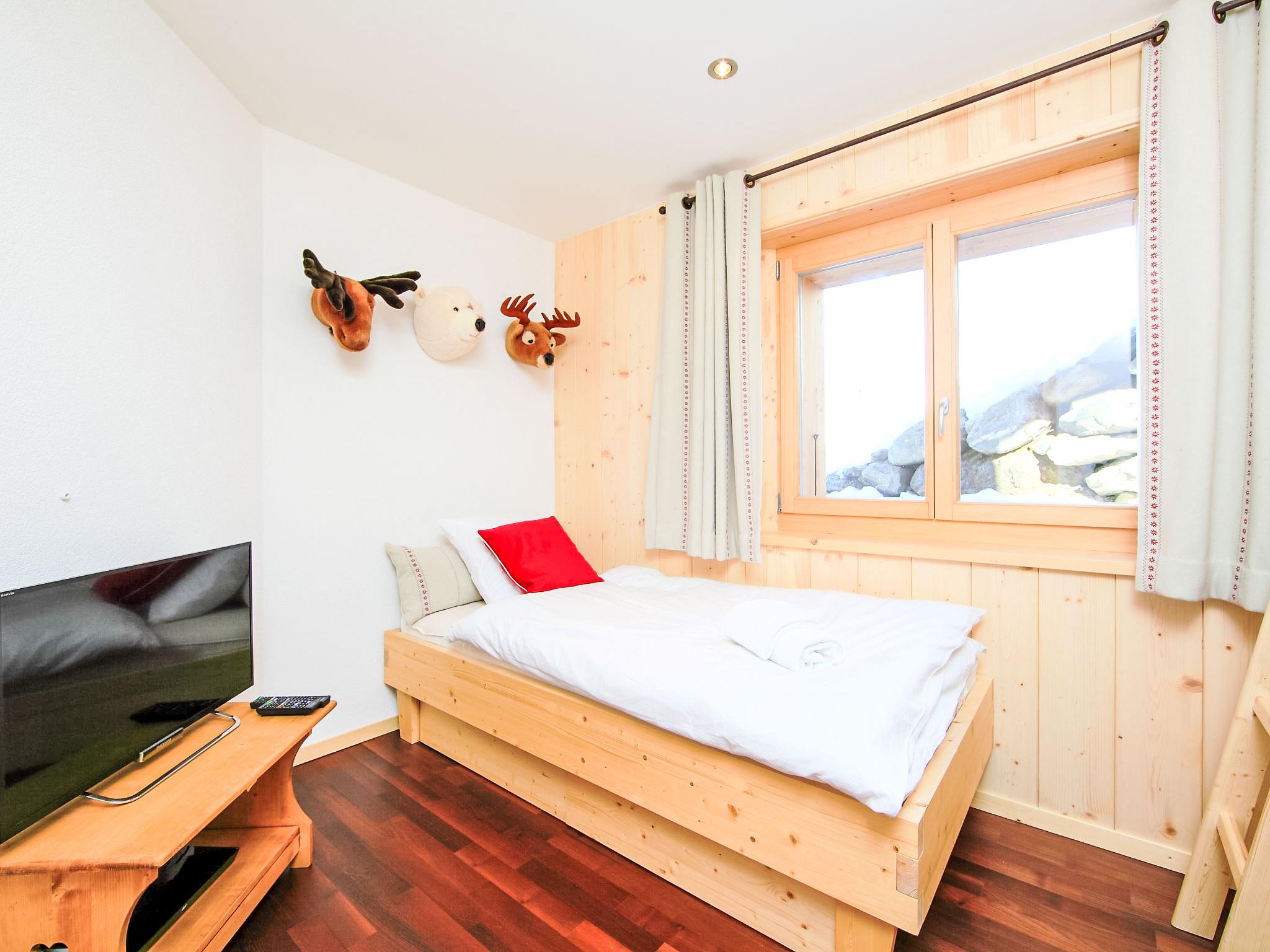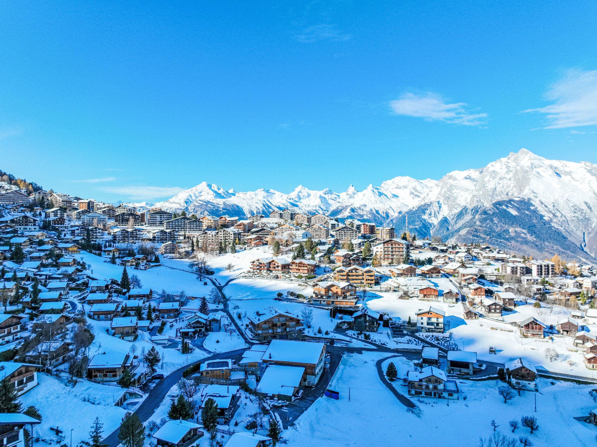 "Chalet Flocon de Neige", 5-room chalet 184 m2 on 2 levels. Comfortable furnishings: large living/dining room with panoramic window with Scandinavian wood stove, dining nook, cable TV and DVD. Open kitchen (oven, dishwasher, 6 induction hot plates, toaster, kettle, microwave, electric coffee machine, Capsules for coffee machine (Nespresso) extra, raclette grill, cooking island, fondue Set (cheese)). Sep. WC. Heating. On the lower ground floor: 2 double bedrooms, each room with 2 beds (90 cm, length 200 cm). 1 children's room with 1 bed (90 cm, length 190 cm), 1 x 2 bunk beds (90 cm, length 190 cm), cable TV, flat screen and DVD. 1 double bedroom with 1 french bed (160 cm, length 190 cm), shower/WC, cable TV and flat screen. Bath/WC, shower/WC. Balcony, north facing position, terrace, west facing position and north facing position. Terrace furniture, barbecue, deck chairs (2). Very beautiful view of the mountains and the valley. Facilities: washing machine, dryer, children's high chair, baby cot, hair dryer. Internet (WiFi, free). Parking (3 cars). Please note: non-smoking house.