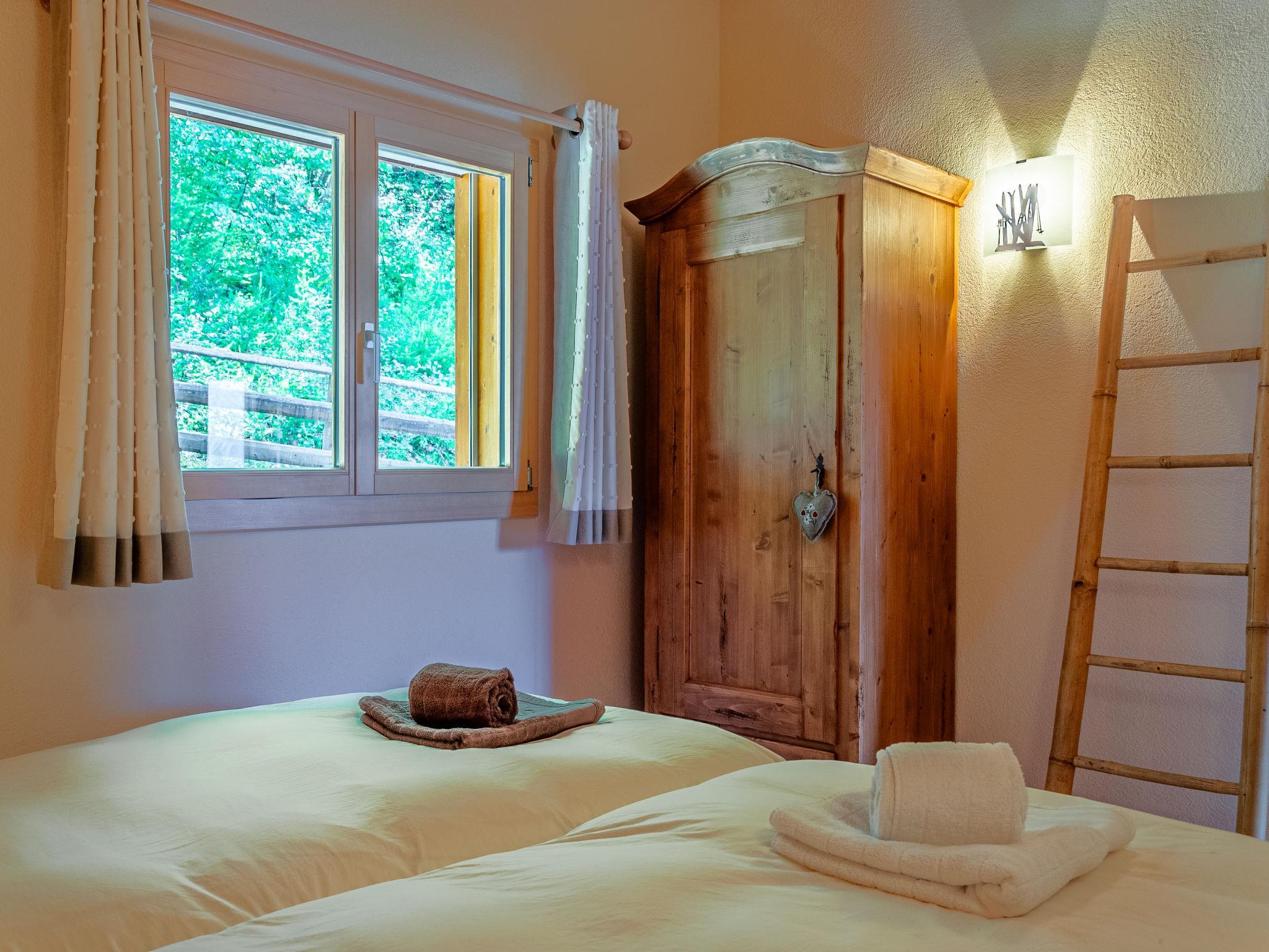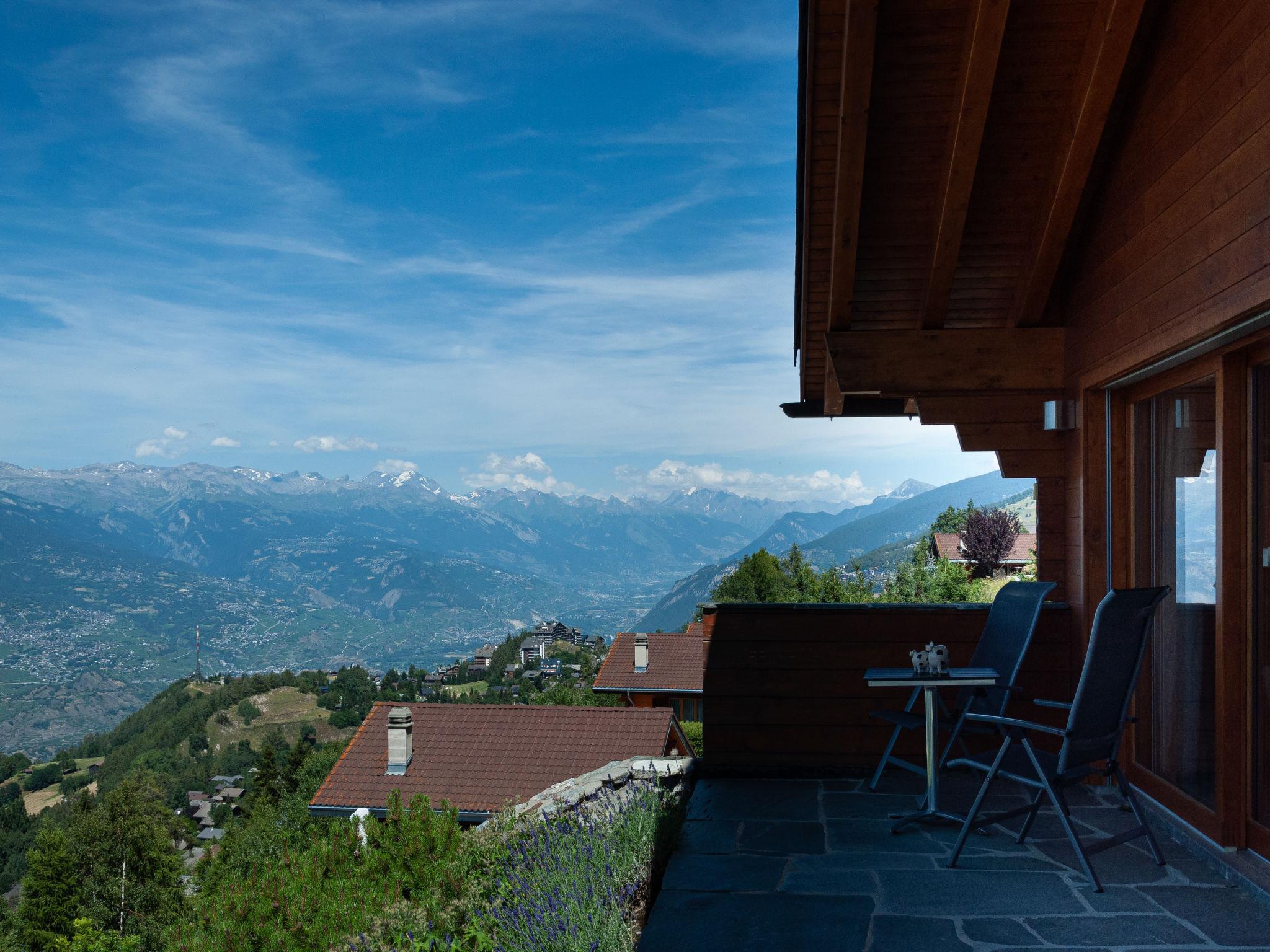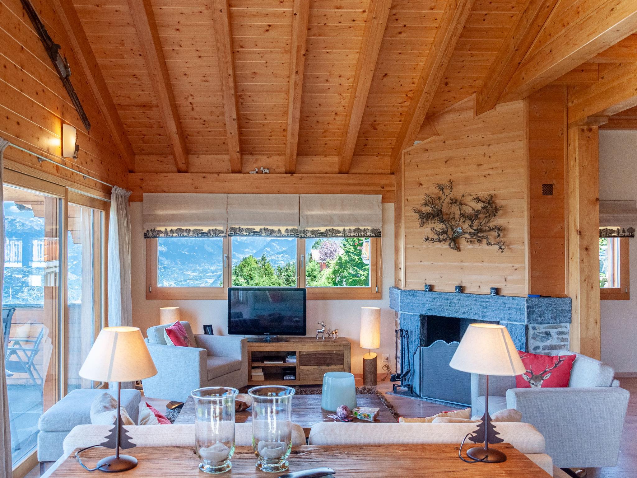"Bonâme", 5-room chalet 188 m2. Spacious, tasteful and cosy furnishings: large living/dining room with open-hearth fireplace and cable TV. Exit to the terrace, north facing position and west facing position. 1 room with 1 double bed (2 x 90 cm, length 210 cm), shower/WC and double hand-basin. Exit to the terrace. Large, open kitchen (oven, dishwasher, 5 induction hot plates, toaster, kettle, microwave, freezer, electric coffee machine, Capsules for coffee machine (Nespresso) extra, raclette grill, fondue Set (chinoise, cheese)) with bar. On the lower ground floor: large entrance hall. Sep. WC. Upper floor: 1 room with 2 beds (90 cm, length 210 cm), shower/WC. 2 rooms, each room with 2 beds (90 cm, length 210 cm). Bath/shower/WC. Large terrace, north facing position and west facing position. Terrace furniture, deck chairs (2). Very beautiful panoramic view of the mountains. Facilities: washing machine, dryer. Internet (WiFi, free). Parking, garage (2 cars), height 220 cm, width 520 cm. Please note: not suitable for small children not suitable for children under 6 years. Non-smokers only.