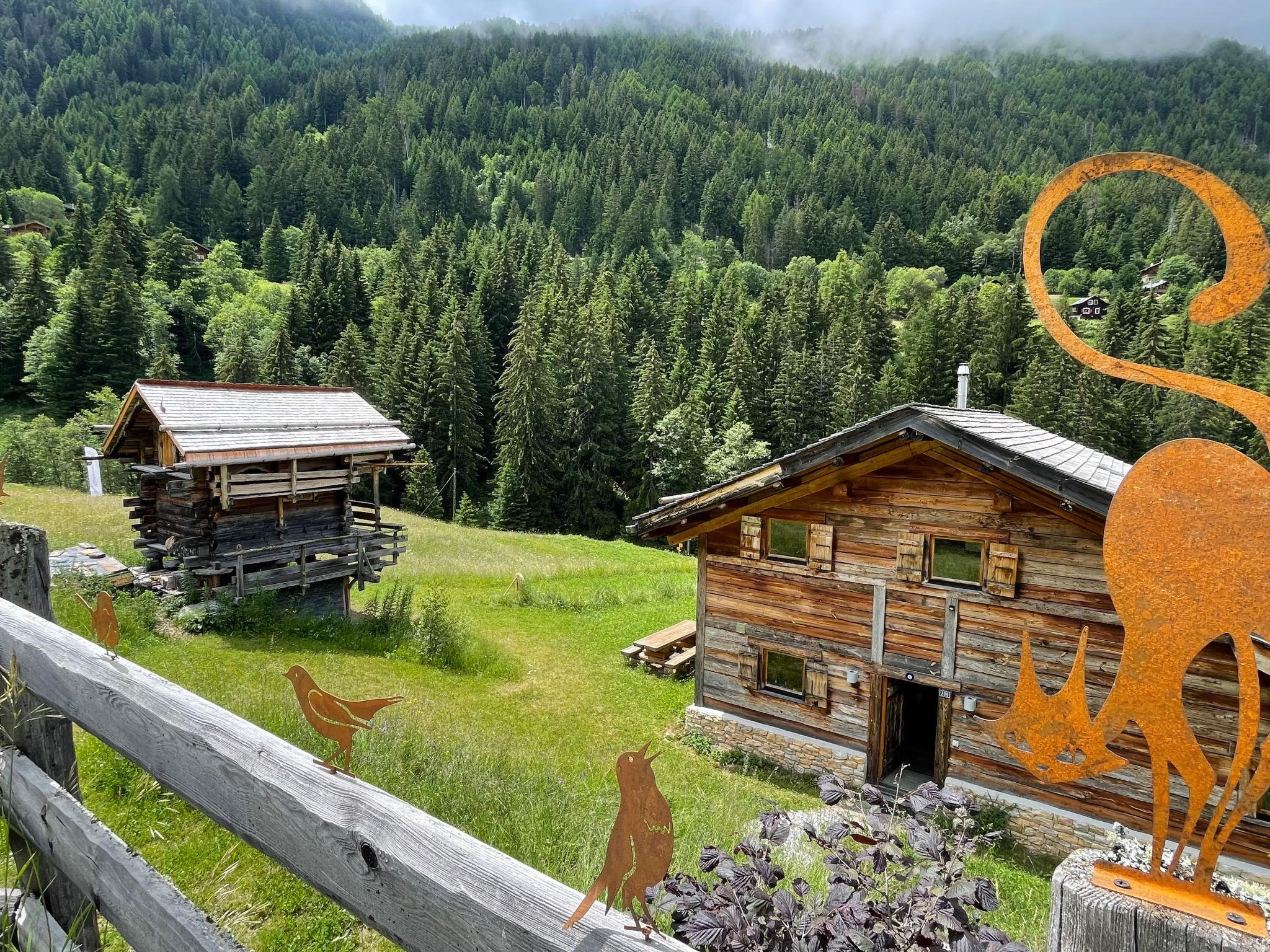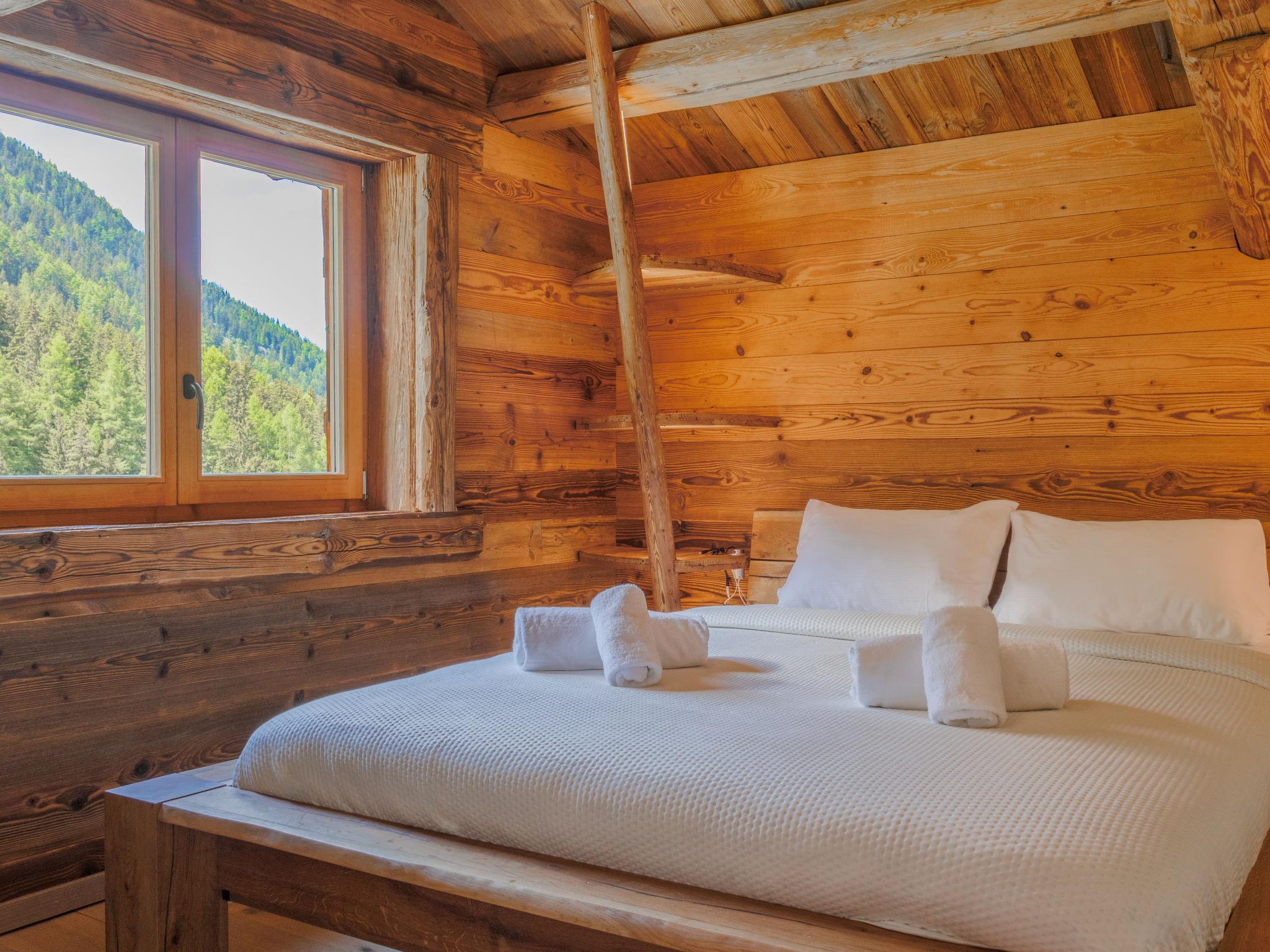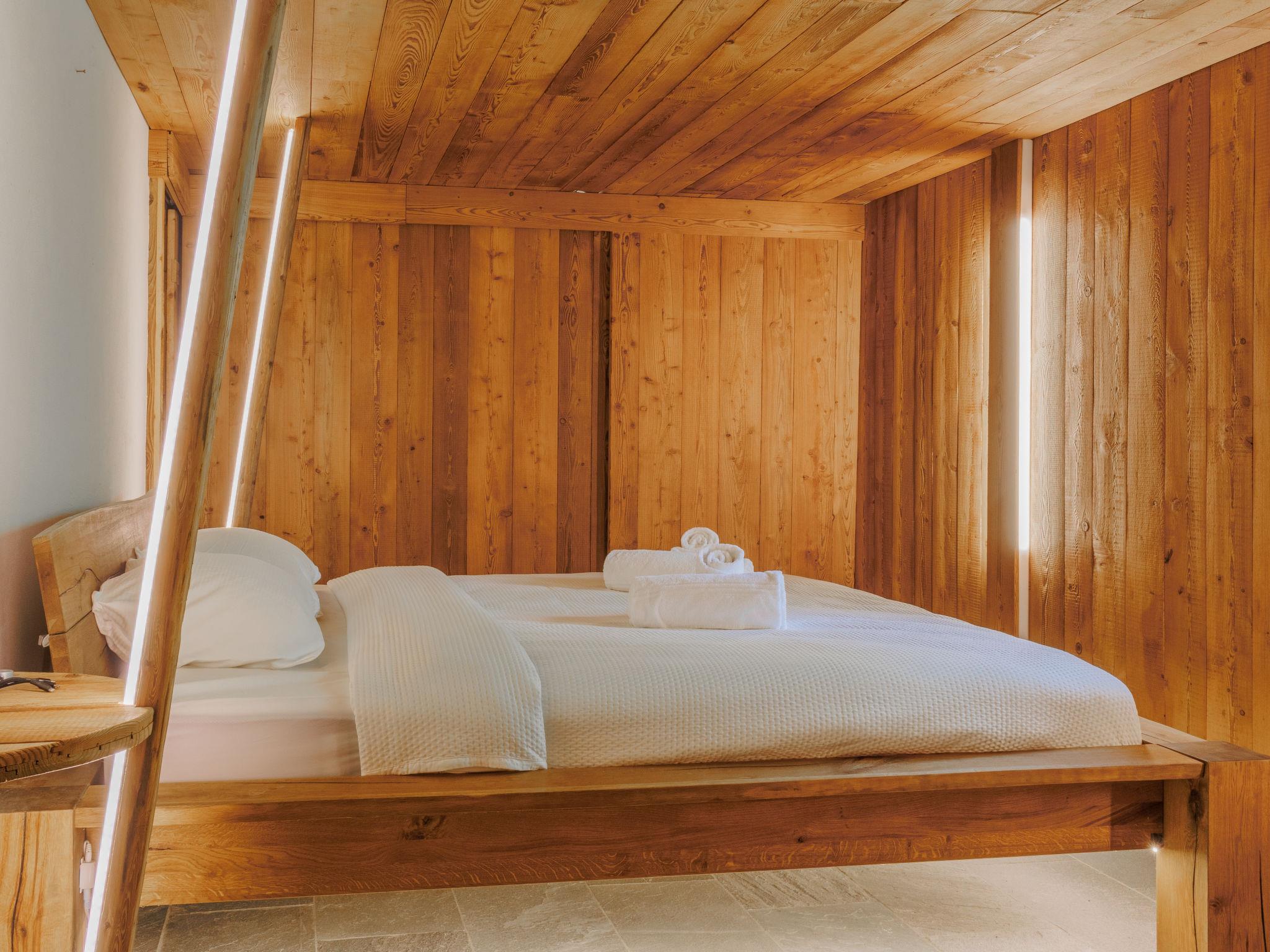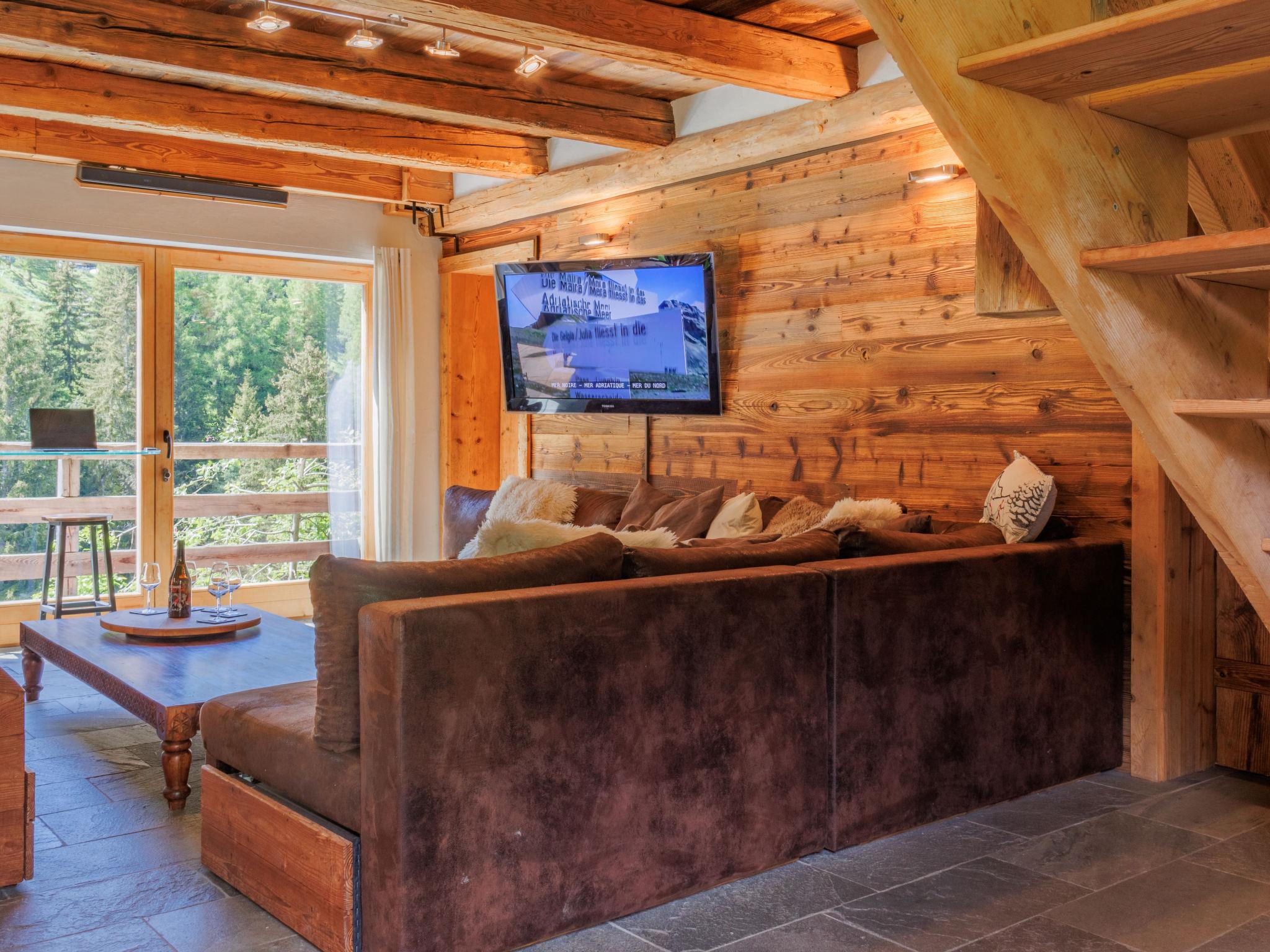" Chalet Gaea", 5-room chalet 140 m2 on 3 levels, north-east facing position. Object suitable for 6 adults + 3 children. Partly with sloping ceilings, very comfortable and beautiful furnishings: entrance hall. Living/dining room with Scandinavian wood stove and Home cinema. Exit to the terrace. Open kitchen (oven, dishwasher, 4 induction hot plates, toaster, kettle, microwave, freezer, electric coffee machine, Capsules for coffee machine (Nespresso) extra, raclette grill, fondue Set (cheese)). Bath/shower/WC. On the lower ground floor: 1 room with 1 french bed (180 cm, length 200 cm), bath/shower/WC. Upper floor: 1 room with 1 bed (90 cm, length 200 cm), 1 french bed (160 cm, length 200 cm). (ladder) open small gallery with sloping ceilings, ceiling height 120 - 145 cm with 1 bed (90 cm, length 200 cm). 1 room, without wardrobe with 1 double sofabed (140 cm, length 200 cm). Top floor: (ladder) open gallery with sloping ceilings, ceiling height 48 - 135 cm with 1 bed (90 cm, length 200 cm). Large terrace. Terrace furniture, barbecue, deck chairs. Very beautiful view of the mountains. Facilities: washing machine, dryer, hair dryer. Internet (WiFi, free). Parking (3 cars). Please note: not suitable for children under 8 years. Non-smokers only. 2 braziers, one of which is covered. Instead of an enclosed bedroom, some sleeping areas are located in an open-plan area (gallery, alcove, etc.).
