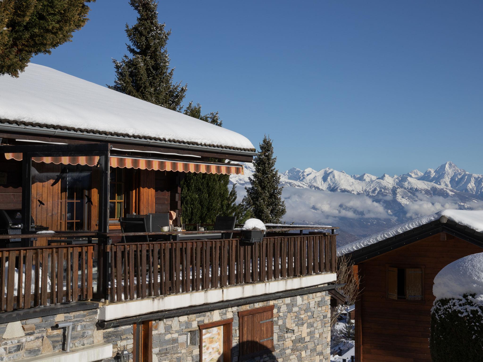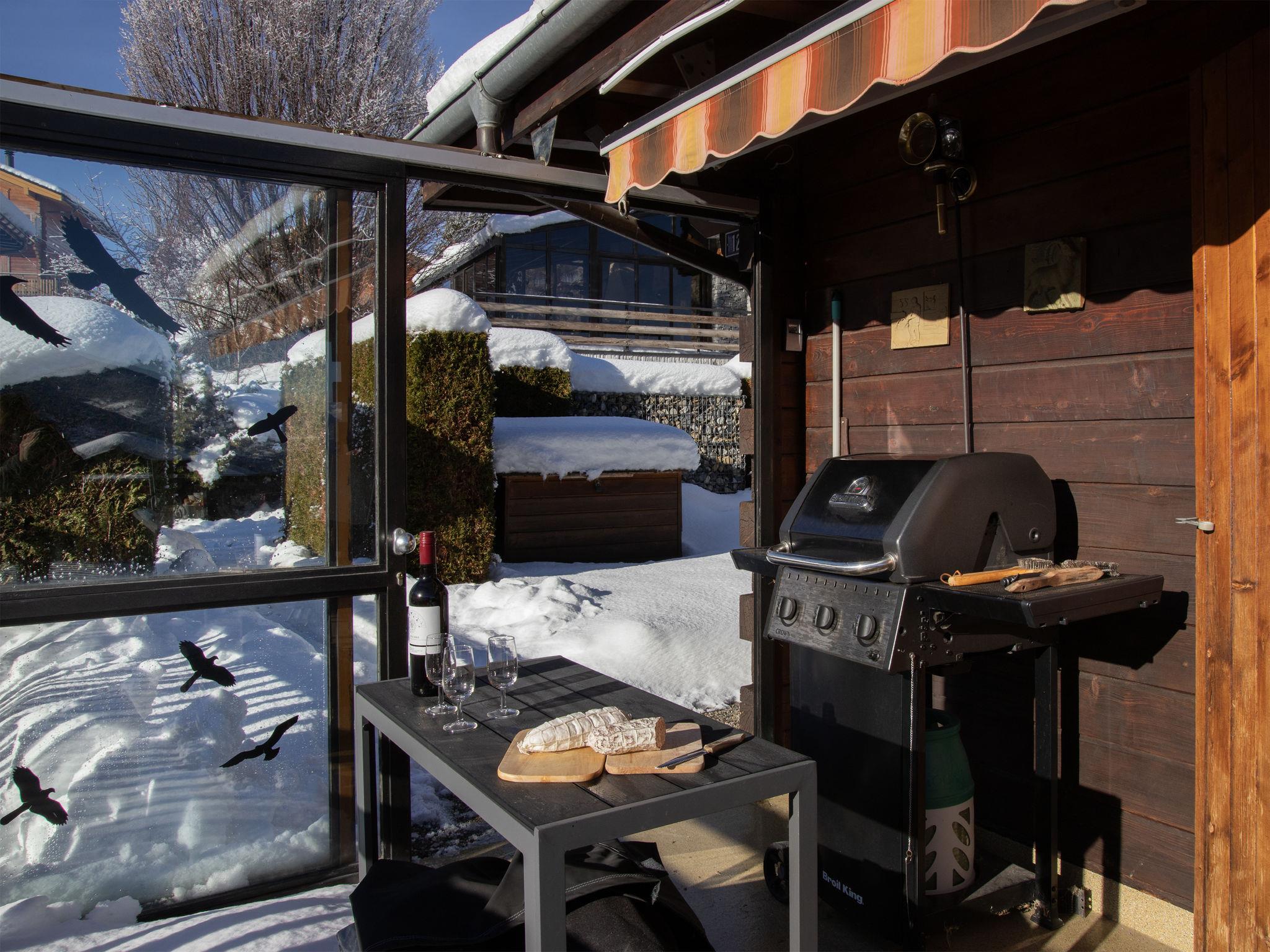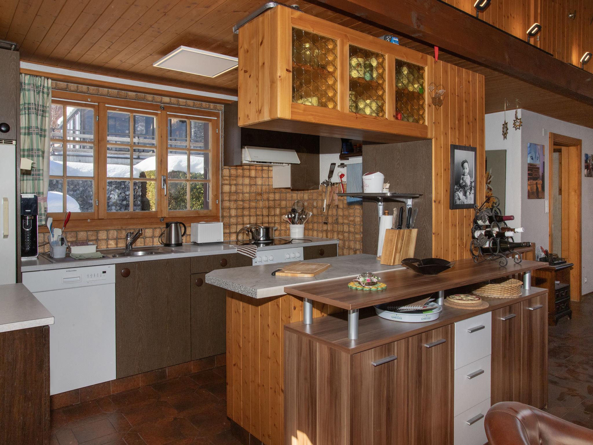 "Petit Râche", 5-room chalet 134 m2 on 2 levels. Comfortable and beautiful furnishings: entrance hall. Living/dining room with open-hearth fireplace and cable TV. Exit to the balcony, to the terrace, south facing position and east facing position. Open kitchen (oven, dishwasher, 4 ceramic glass hob hotplates, toaster, kettle, electric coffee machine, raclette grill, fondue Set (cheese)). Sep. WC. On the lower ground floor: 1 small room with 1 bed (140 cm, length 190 cm). 1 room with 1 french bed (160 cm, length 200 cm). 1 room with 1 french bed (180 cm, length 200 cm). Exit to the garden, east facing position. 1 room with 1 french bed (140 cm, length 200 cm), shower/WC. Exit to the garden. Bath/WC. Heating. Terrace furniture, barbecue. Marvellous view of the mountains and the valley. Facilities: washing machine. Internet (WiFi, free). Parking (2 cars). Please note: non-smokers only. 1 pet/ dog allowed.