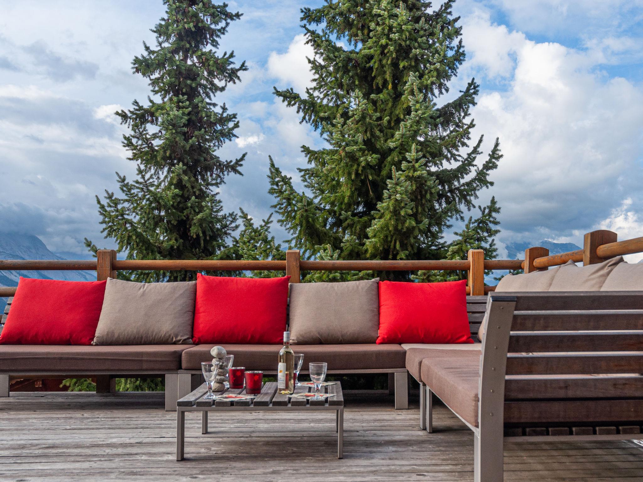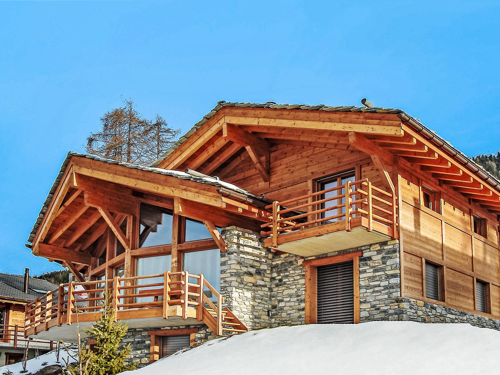 "Sebas", 5-room chalet 180 m2 on 3 levels. Comfortable furnishings: large living/dining room with panoramic window with open-hearth fireplace, cable TV and CD-player. Exit to the terrace. 1 room with 1 double bed (180 cm, length 200 cm), bath/shower/WC. Exit to the terrace. Open kitchen (oven, dishwasher, 4 induction hot plates, toaster, kettle, electric coffee machine, Capsules for coffee machine (nespresso) extra, raclette grill, fondue Set (cheese)). Heating. On the lower ground floor: 1 room with 1 double bed (180 cm, length 200 cm). Shower, sep. WC. Upper floor: 1 room with 2 beds (90 cm, length 200 cm), 1 double bed (180 cm, length 200 cm). Shower/WC. Balcony, north facing position and west facing position, large terrace, south facing position and, east facing position. Barbecue (portable). Very beautiful view of the mountains and the valley. Facilities: washing machine, dryer, sauna, baby cot. Internet (WiFi, free). Parking (2 cars). E-charging station. Please note: non-smokers only.