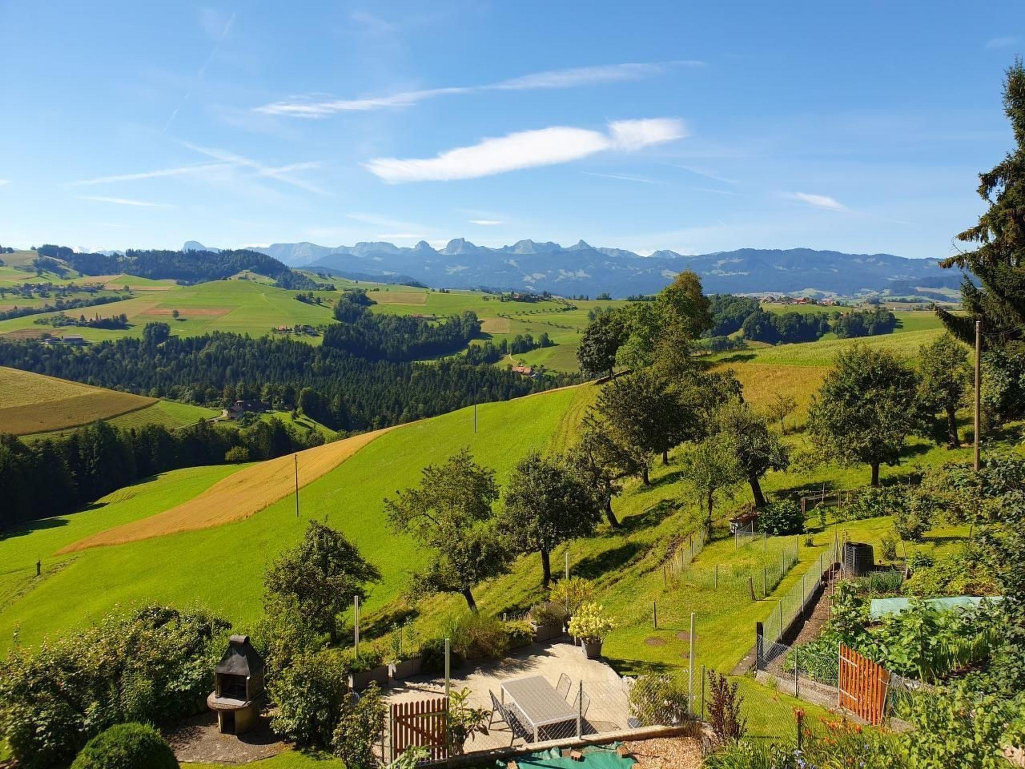 The Stöckli, in which the holiday flat is located, lies in a quiet, small hamlet at 886 metres above sea level, in the hilly landscape of the Gantrisch Nature Park.
