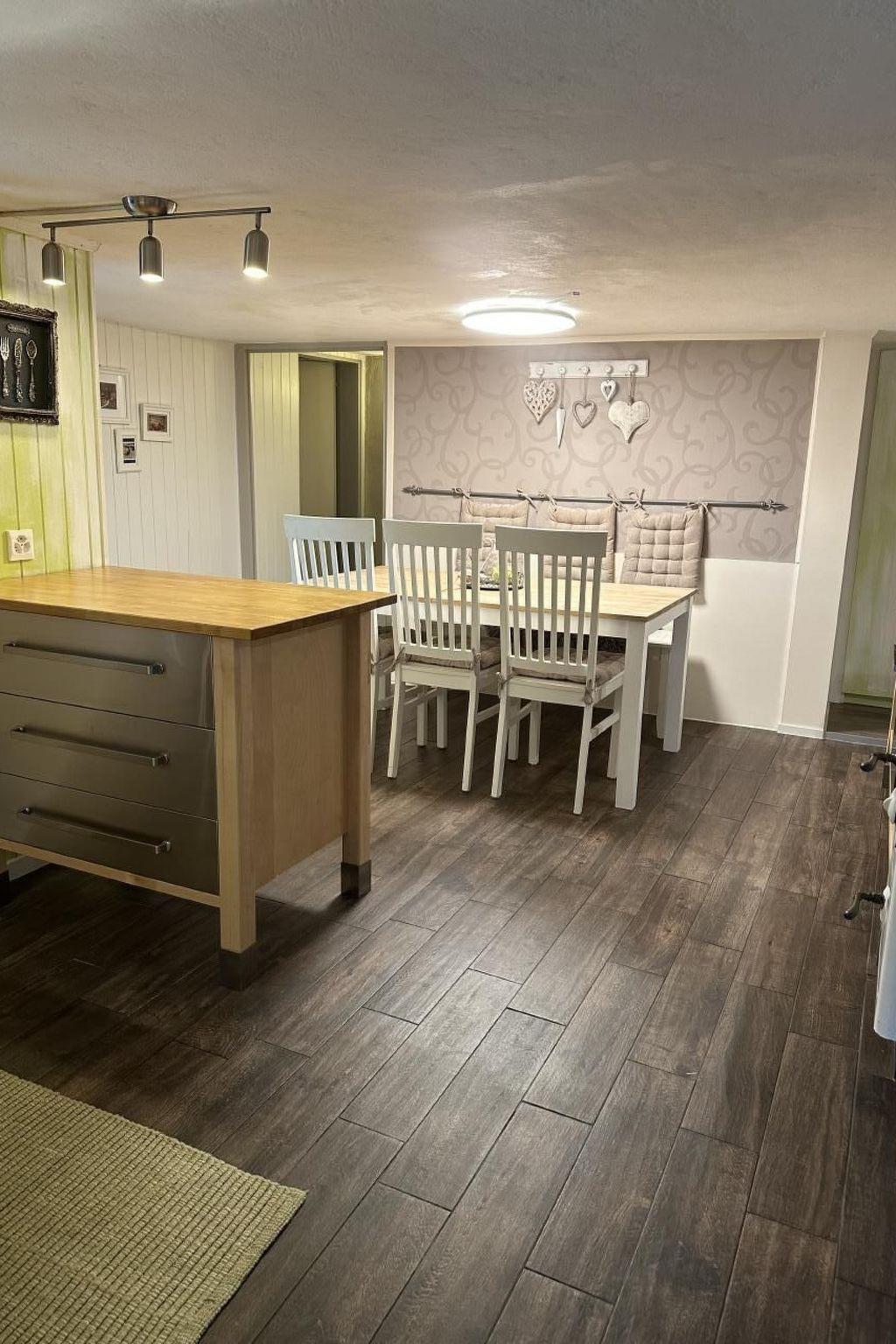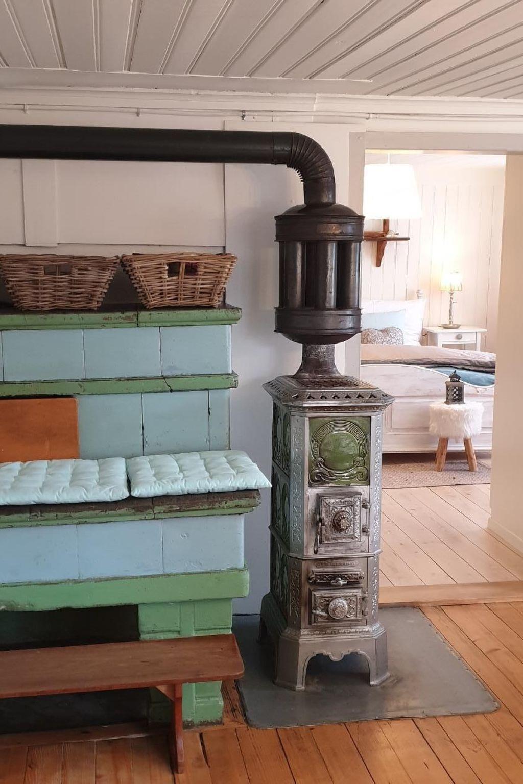 Renovated in 2017 with great attention to detail. The flat is located on the ground floor of a 200 year old farmhouse. It is heated with a wood-burning stove in the kitchen and a wood-burning stove in the living room.