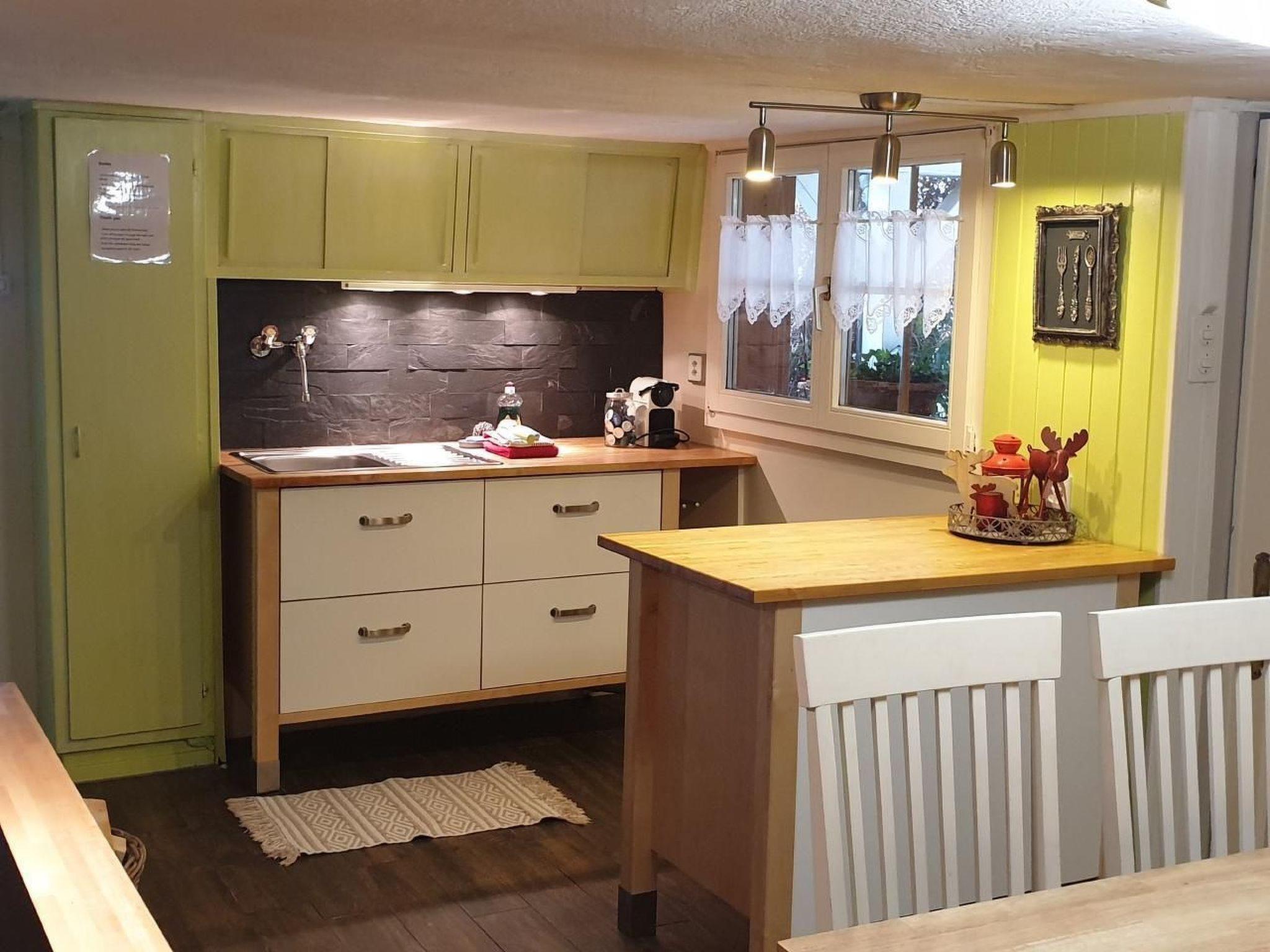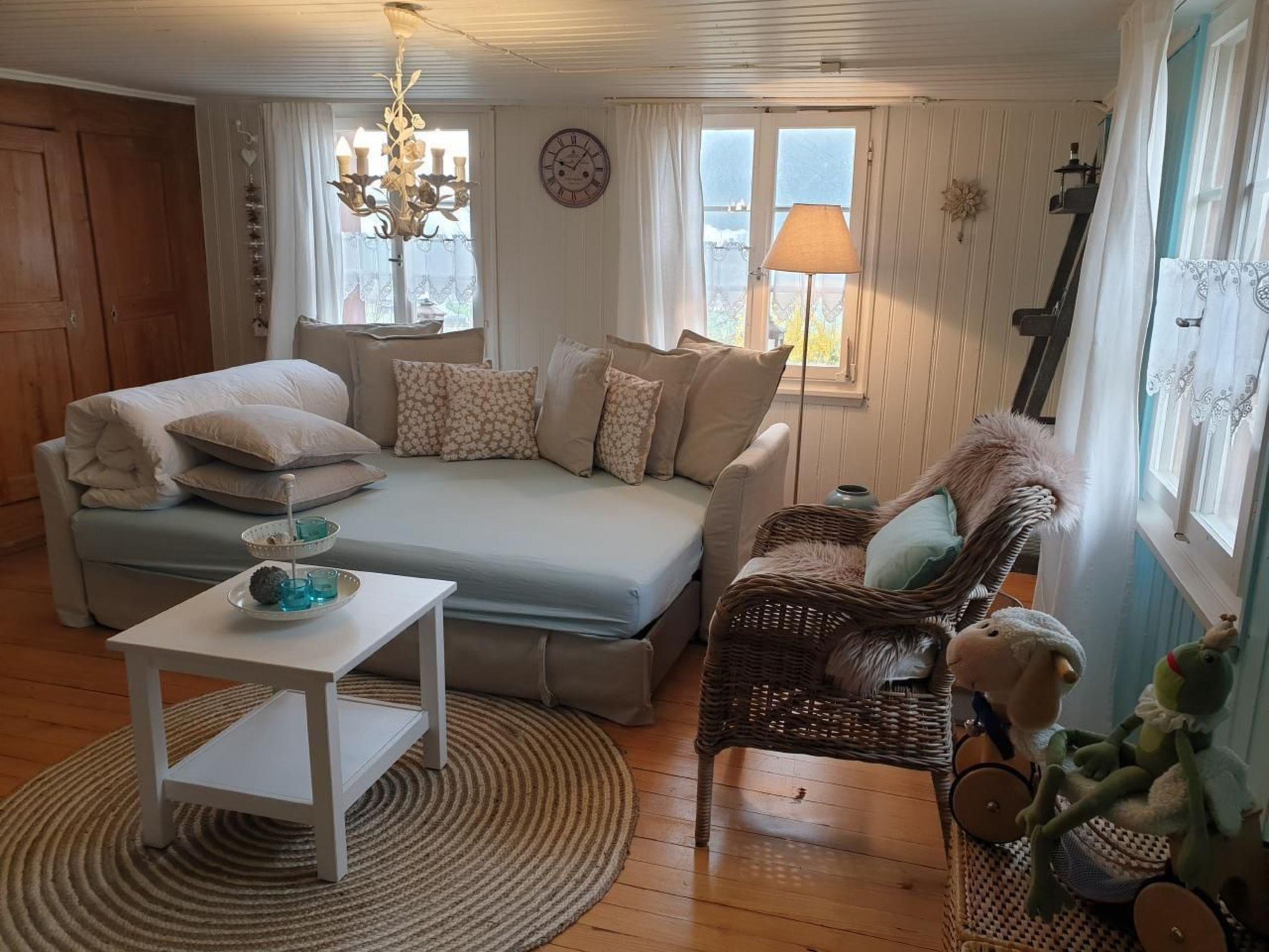 Bedroom with double bed and extra bed, living room with sofa bed and tiled stove. WLAN/ TV/ DVD. Kitchen with oven, fridge, coffee machine, toaster, raclette, fondue. Bathroom with WC, rain shower and washing machine.