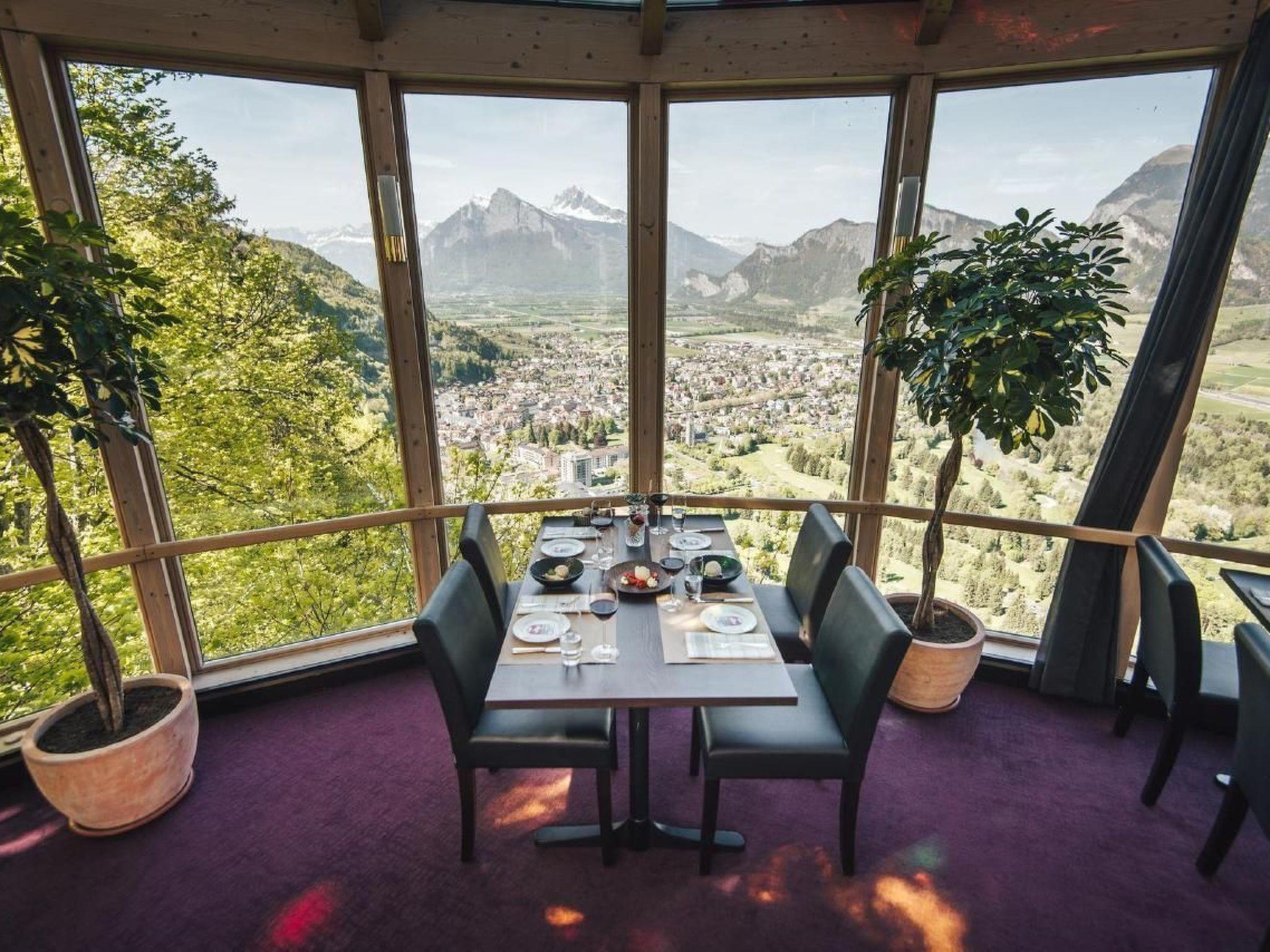 On the ground floor you can use the infrastructure of the closed restaurant and a 160 m2 winter garden with a fantastic view over Bad Ragaz, the Churfirsten and the canton of Graubünden.