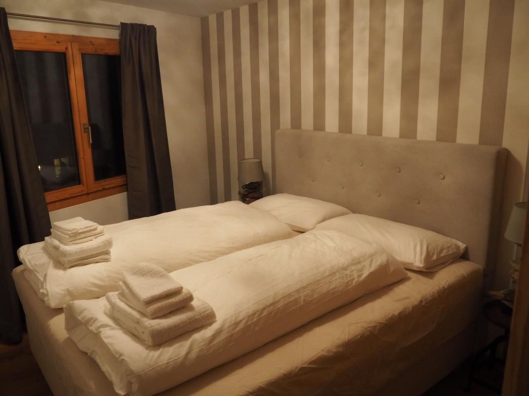 Inside, a sophisticated blend of comfort and style awaits you. Two bedrooms with double beds or two single beds and fitted wardrobes ensure restful nights. The two modern bathrooms with comfortable showers complete the picture. The open-plan kitchen is equipped with every conceivable modern convenience - from oven/steamer to induction hob, dishwasher, large fridge with ice compartment, Nespresso machine, kettle, toaster, raclette grill and fondue set. The living and dining area, with direct access to the south-facing terrace, invites you to linger and is well equipped with a flatscreen TV, Swisscom TV, a Sonos system, board games and books, among other things.