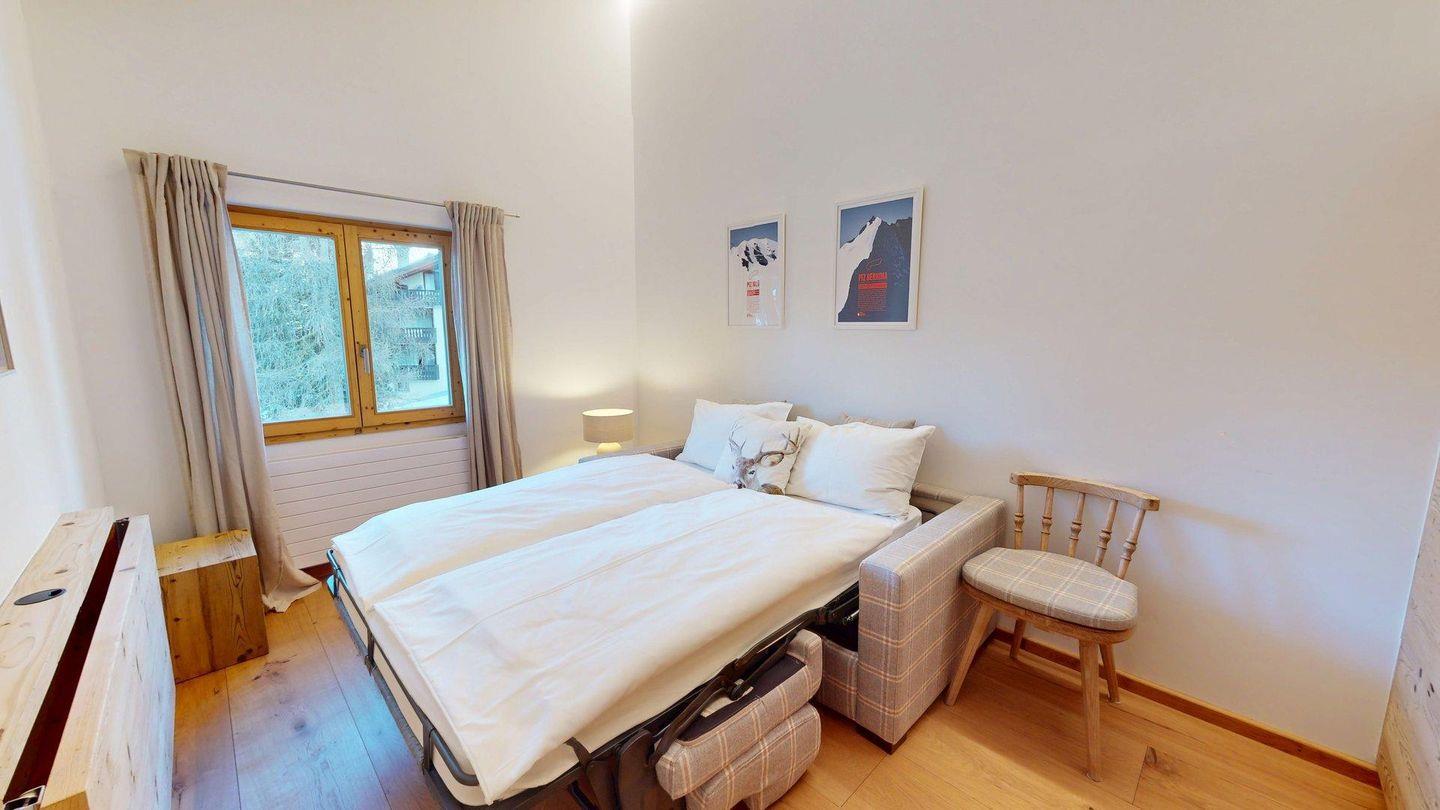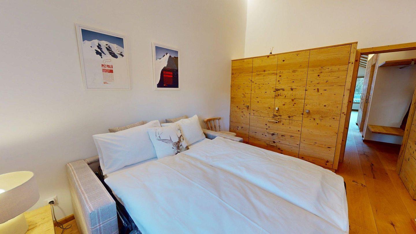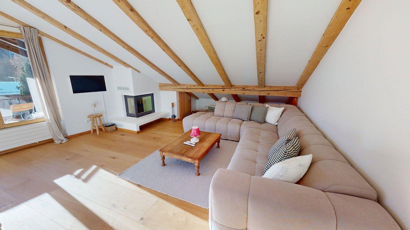 Luxuriöses Ferienapartment mit spektakulärer Bergsicht. Hochwertig renoviert. Helles Wohn- /Esszimmer mit offener Küche. Kamin und Balkon. Waschmaschine in der Wohnung. Grosses Elternschlafzimmer mit Dusche/WC. Ein Doppelschlafzimmer mit Homeoffice-Möglichkeit sowie bequemes Schlafsofa für 2 Personen. Gratis WLAN. 1 Aussenparkplatz.
