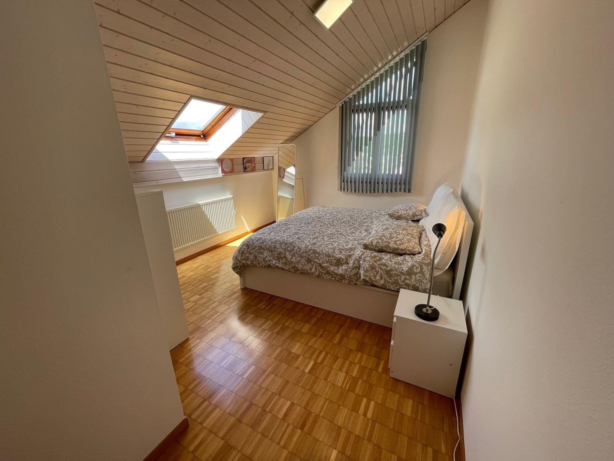 Welcome to Achoumé, a charming 3.5 room 75 sqm attic apartment. The living room has a lot of character with wood panelling, mountain views from some windows and an entrance hall. The kitchen, fully equipped and opening onto the living room, has a dining table as well as a kettle, free coffee machine and capsules, microwave, oven, four hotplates, pots and pans. Kitchen utensils and crockery for four people are available in the cupboards. The living room features two leather sofas in front of the television offering various channels and WiFi is also available. Two double bedrooms, one with two 90x200 mattresses and the second with a 140x200 mattress will ensure you enjoy a good sleep. There are two bathrooms in the apartment: one with bath, washbasin, WC and hairdryer, the second with WC and washbasin only. Silk and cotton bed linen, bath and kitchen towels, an ironing board and iron as well as a vacuum cleaner are also provided in the apartment. The building also features shared access to a lift, laundry room and washing machine. This apartment is suitable for a tourist or business trip, in the heart of the town of Porrentruy, near public transport and the town centre with its restaurants and shops. It is also close to nature and various activities. There is a private parking space for the car and a shared garden. With the Jura-Pass, make the most of free public transport and get reductions on a range of activities in the region.
