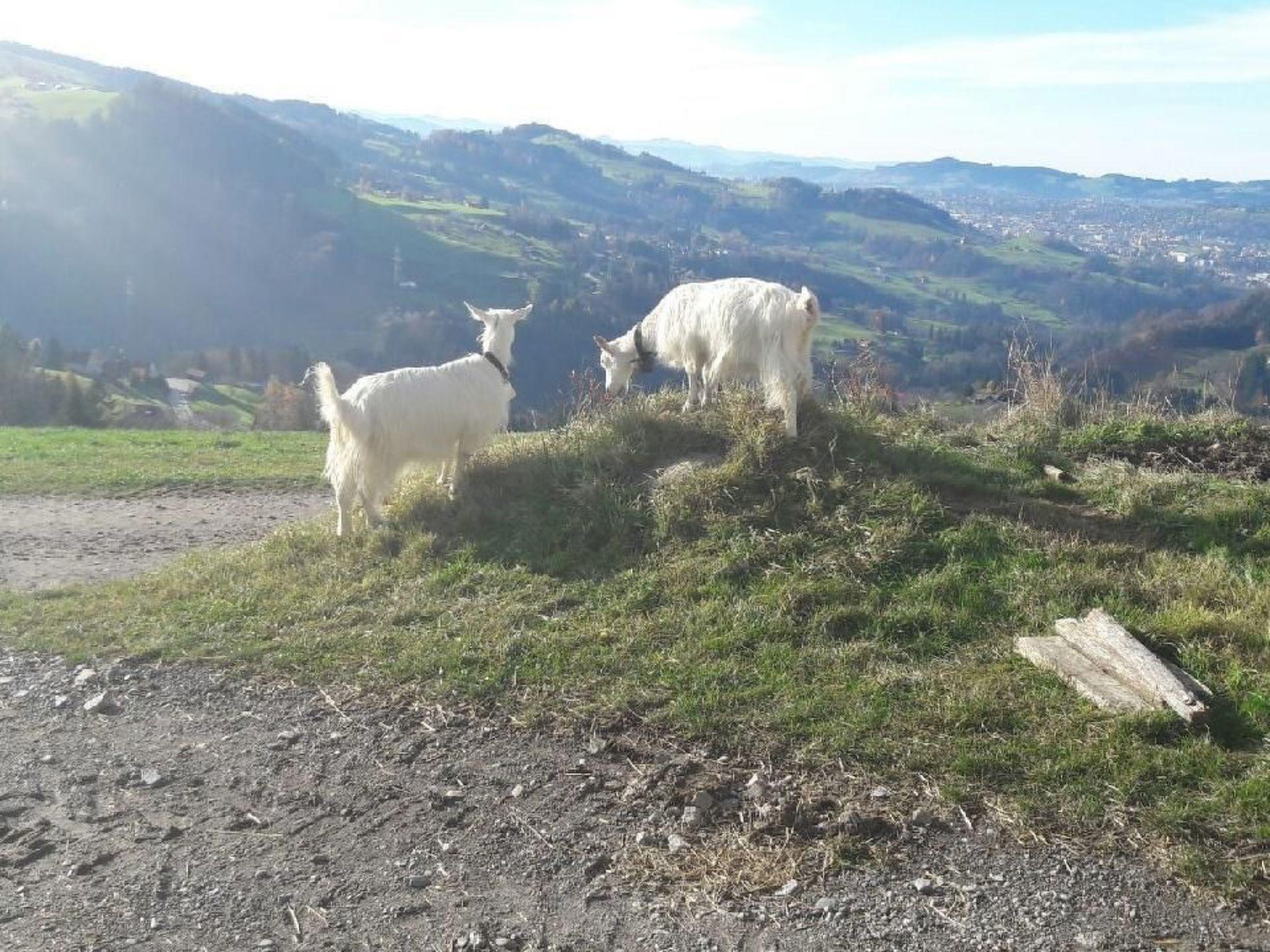 Welcome to our organic farm in the beautiful village of Rehetobel, which belongs to the Appenzeller Vorderland. We live in a quiet, traffic-free location (no through traffic). The Stöckli is surrounded by greenery with a wonderful view of the Säntis, Alpstein, Speicher, St.Gallen, Eggersriet and Lake Constance, and the village centre with bakery, village shop, outdoor swimming pool and post office stop is about a 15-minute walk away. Many excursion destinations are in the immediate vicinity and can also be reached on foot. For example, the Urwaldhaus restaurant, the well-known Gasthaus zum Gupf, or the Dorfhus Gupf. If you fancy a barbecue, there is a fireplace in the immediate vicinity. In the nearby village of Grub AR is the Appenzeller Heilbad Unterrechstein.on our farm we have dairy cows, cattle, calves, pigs, goats, chickens, cats.for the children we offer the following: Toys, e.g. hurry up and wait, memory, Jass cards, sandpit, slide, baby cot. We look forward to welcoming you to our farm soon.