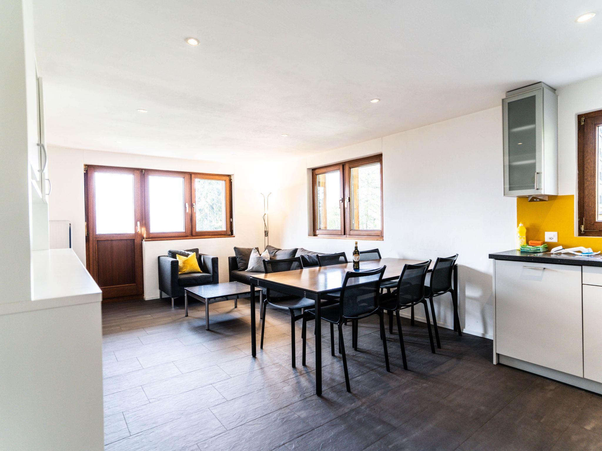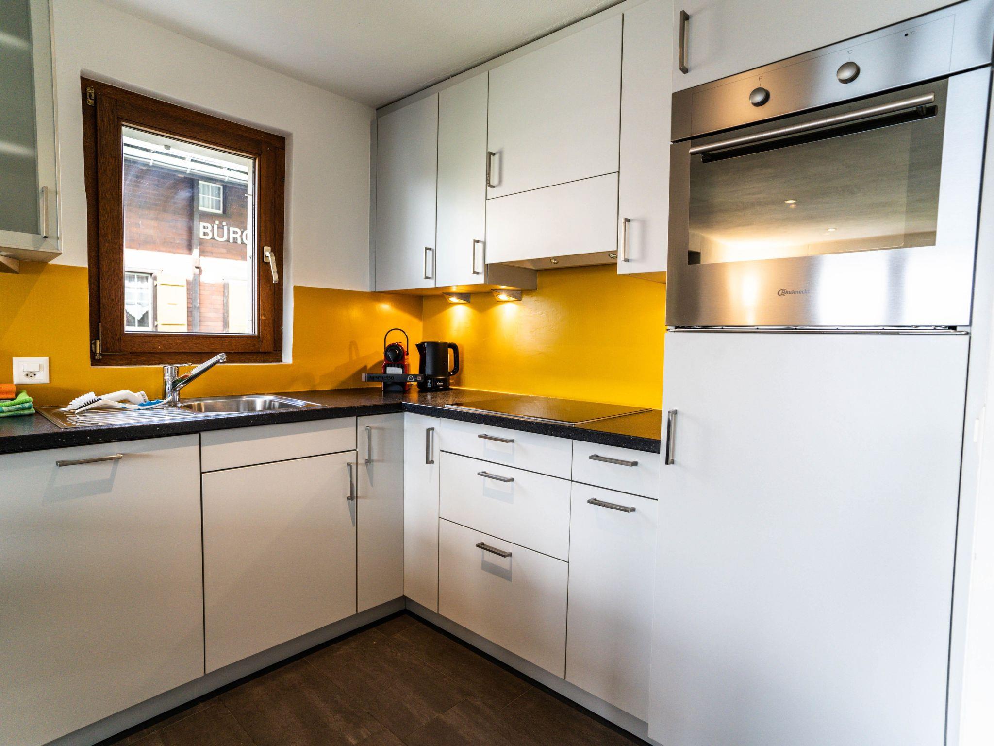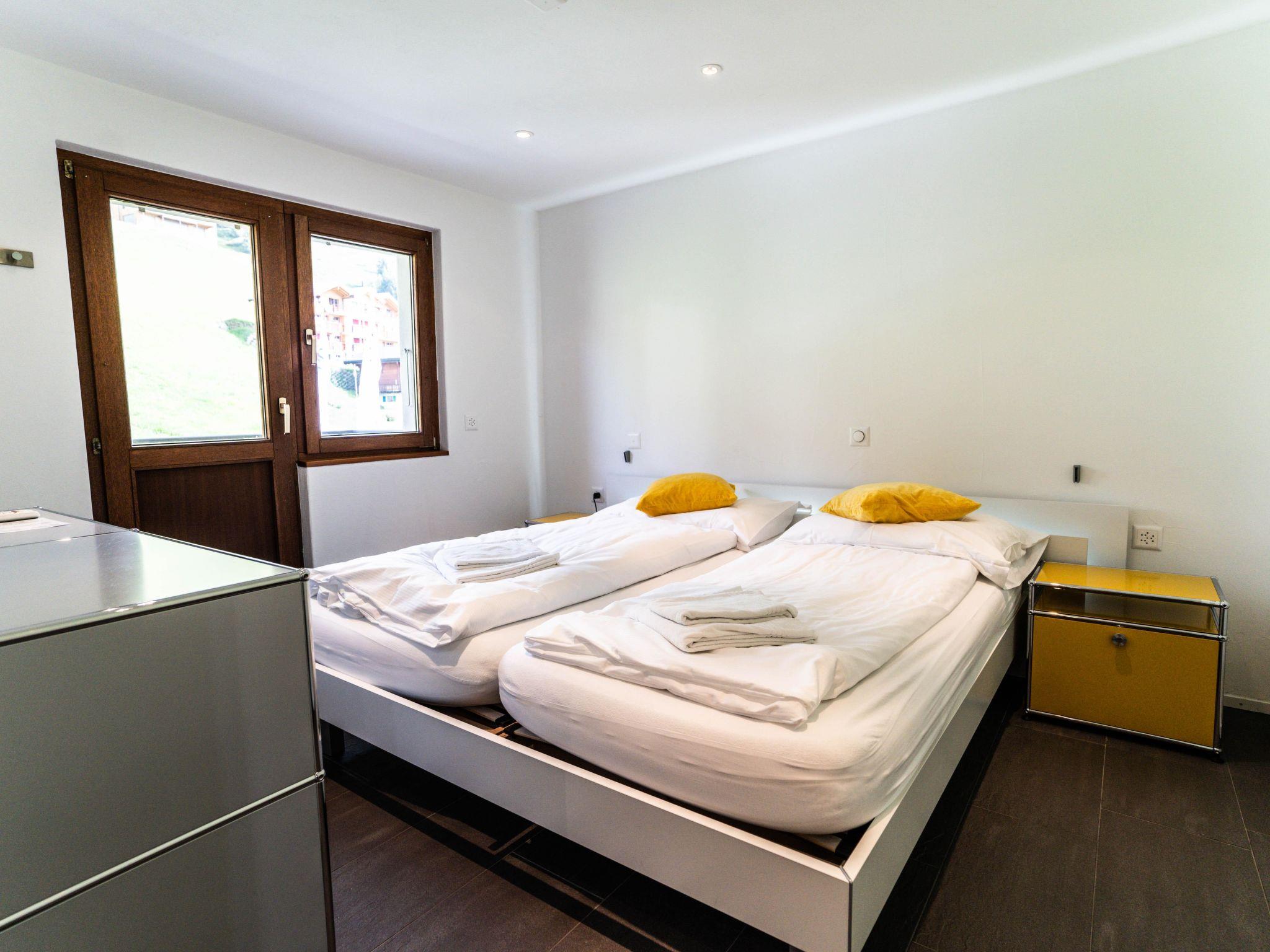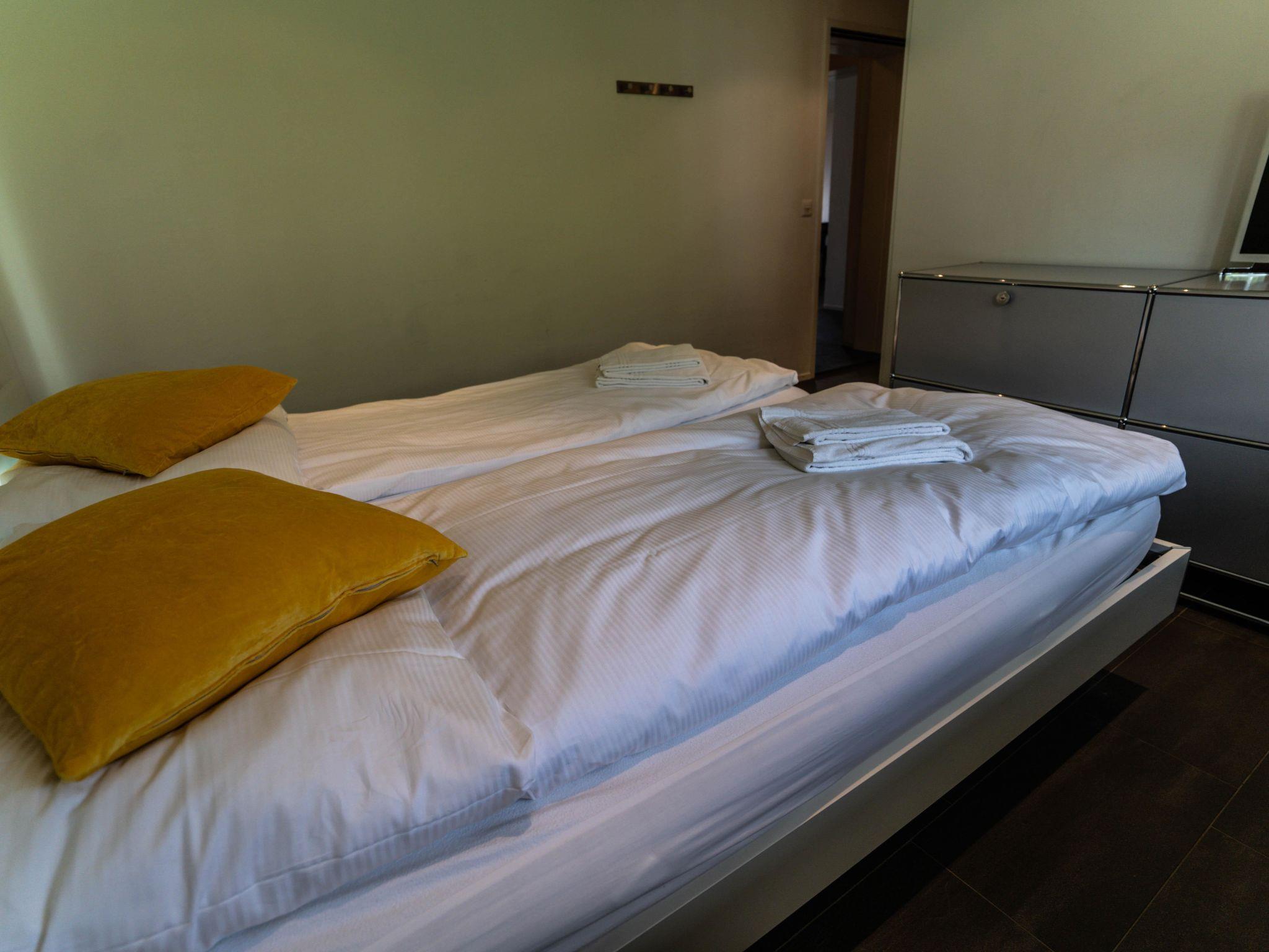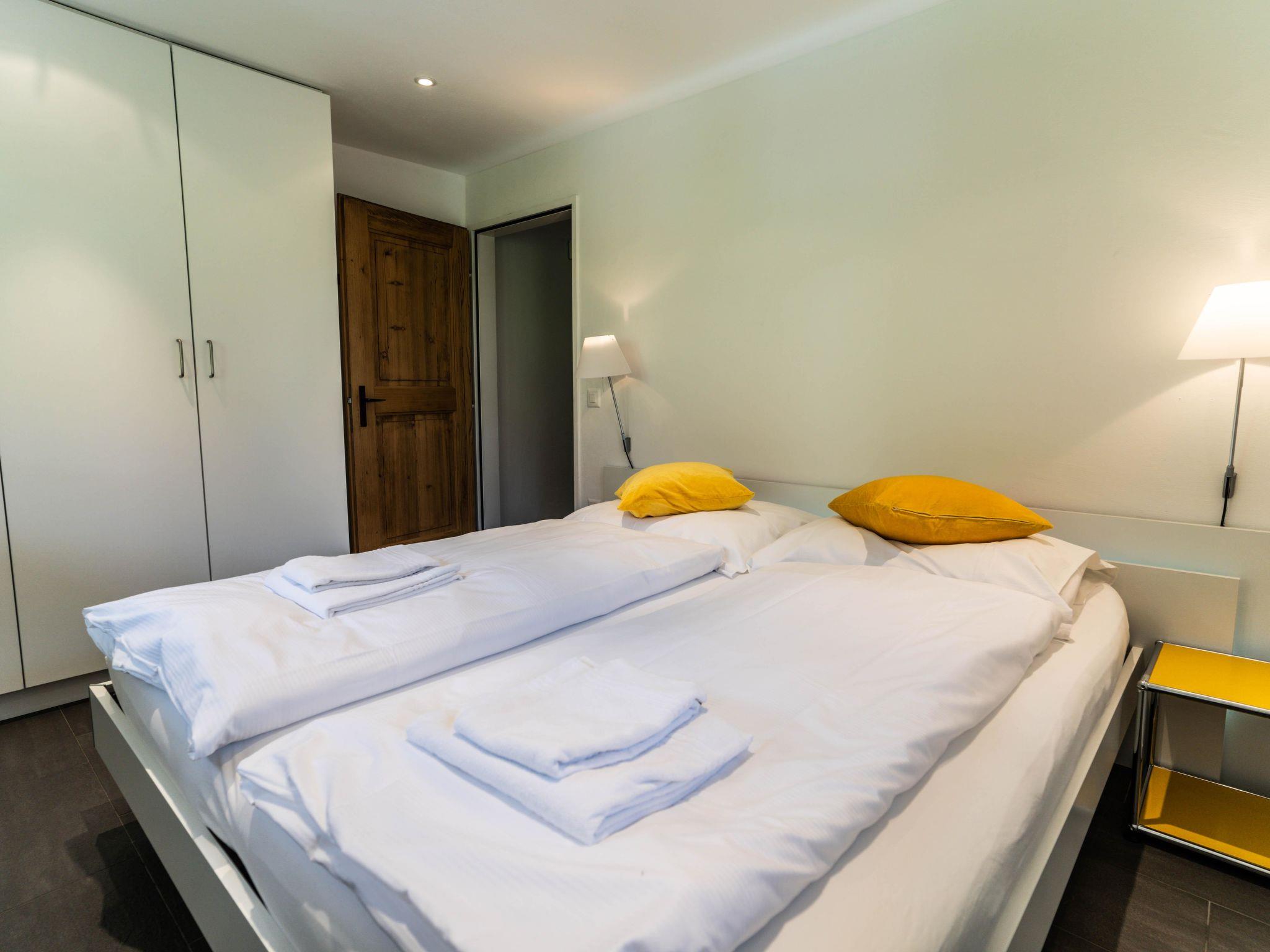 The apartments in the Sportina house are modern and comfortably furnished. All units feature a south and west balcony with a table and chairs, as well as views of the Valais Alps. The 3½-room apartment accommodates 1 to 5 people. It includes two bedrooms with double beds, one of which has its own shower and toilet. The living room has a dining table and a practical fold-down bed. The kitchen is equipped with a dishwasher and a Nespresso coffee machine. The bathroom has a bathtub and toilet. Additional amenities include underfloor heating, TV, free Wi-Fi, as well as a ski storage room with a boot dryer and a laundry room in the basement. A lift is available.