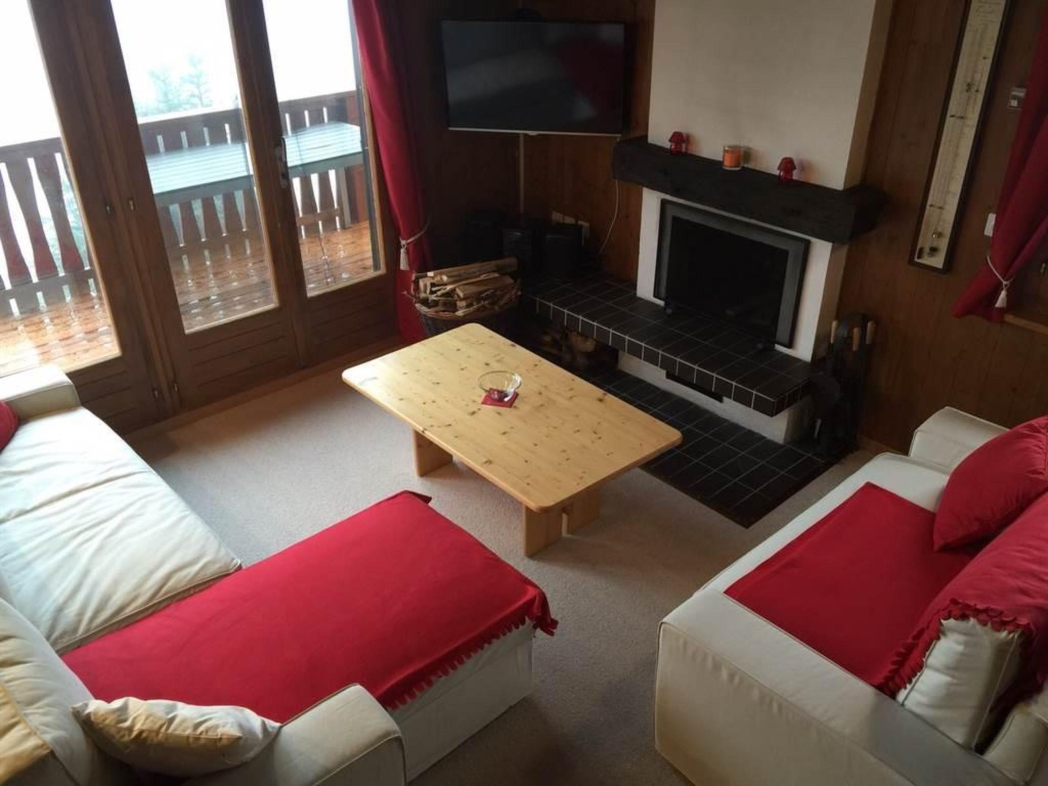 The 3 1/2-room apartment accommodates up to six people. The spacious living area with a television and fireplace offers a cozy atmosphere. The adjacent dining room and the well-equipped kitchen with dishwasher and microwave provide everyday comfort. One bedroom is located on the second floor, with additional sleeping options featuring two double beds and a private toilet in the attic. There are two bathrooms available: one with bath/WC as well as a washing machine and dryer and the other with a toilet. The large south-facing balcony with seating and a grill invites you to spend time outdoors.