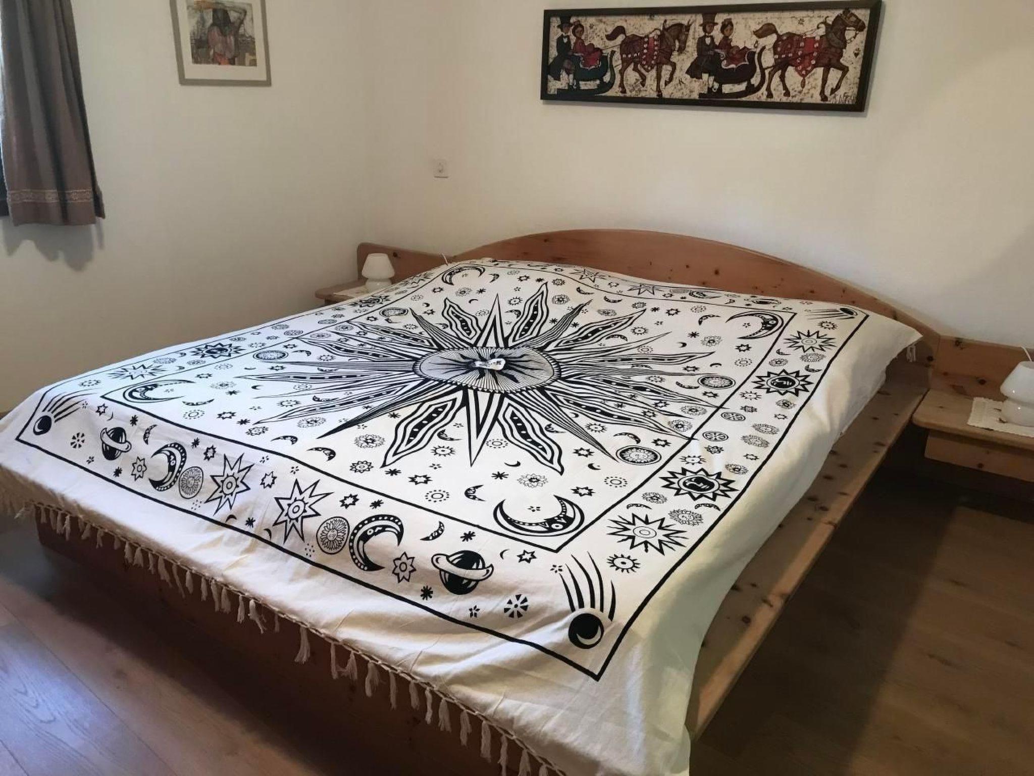 Inside, the flat is lovingly furnished, combining tradition with comfort. Entire rooms are furnished with fine Swiss stone pine furniture, creating a cosy ambience. The living room with an upholstered suite and dining area invites you to spend cosy evenings. Technical equipment such as TV, CD, radio and an Internet connection provide entertainment and information. The partially renovated kitchen is equipped with a ceramic hob, while the sleeping areas with a double bedroom including direct access to the bathroom/WC and a further bedroom with two single beds and separate shower/WC offer every guest privacy and comfort.