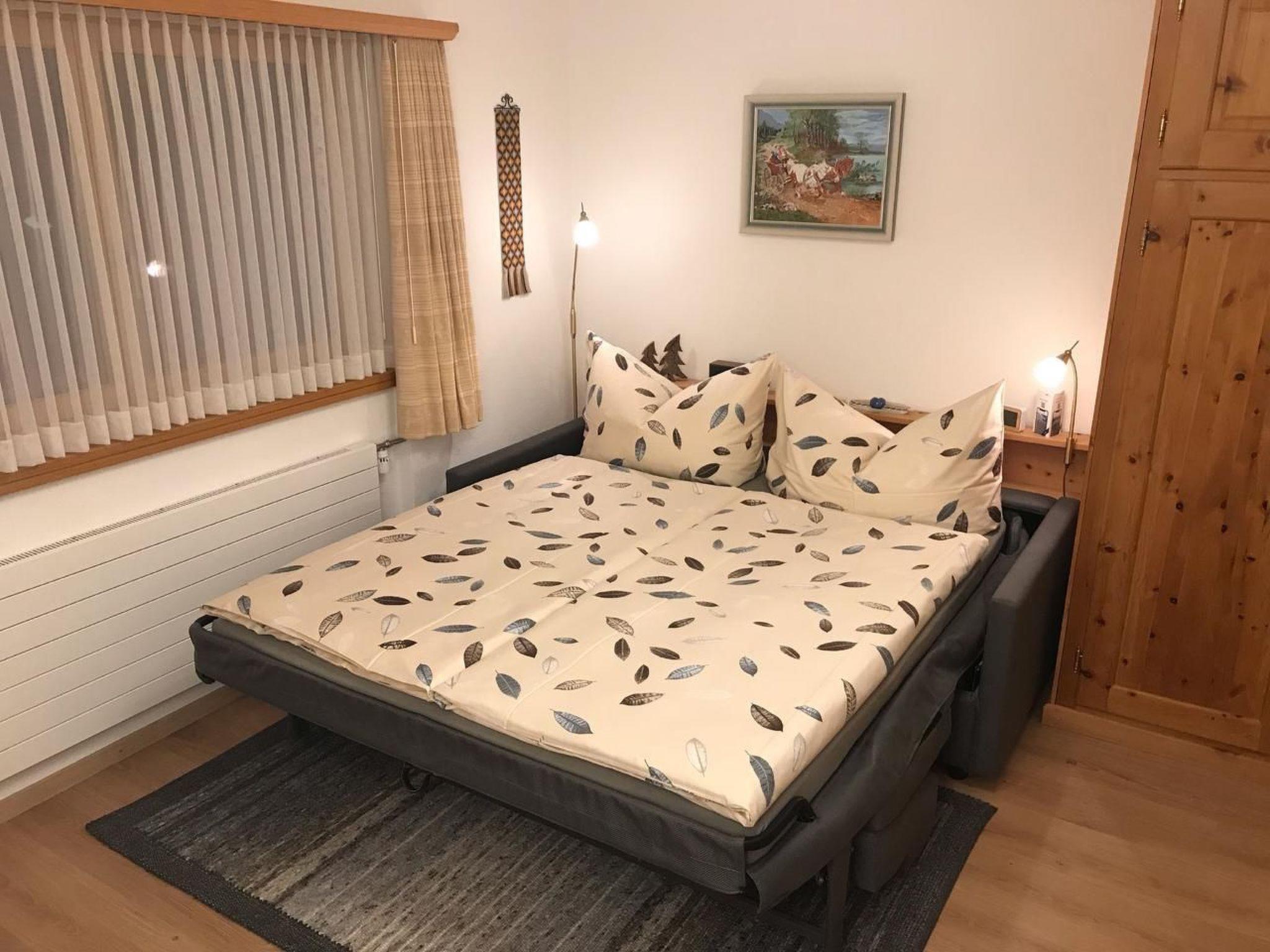"Small but nice", beautiful and well-kept 1 ½-room holiday flat on the ground floor with private entrance in a 2-family house in Crusch, a few minutes' walk from the village centre. Size approx. 33 m2. Lovingly furnished living/bedroom with Swisscom TV/radio and Internet connection (WLAN). Cosy couch which can be converted into a comfortable double bed with integrated mattress (200x160cm). Separate Swiss stone pine kitchen with ceramic hob, microwave oven, fridge and dishwasher. Spacious bathroom with shower/WC. 2 garden seating areas with fantastic views of the highest mountains in Graubünden (Piz Bernina and Piz Palü). Charcoal grill available in summer. Car park in front of the house.