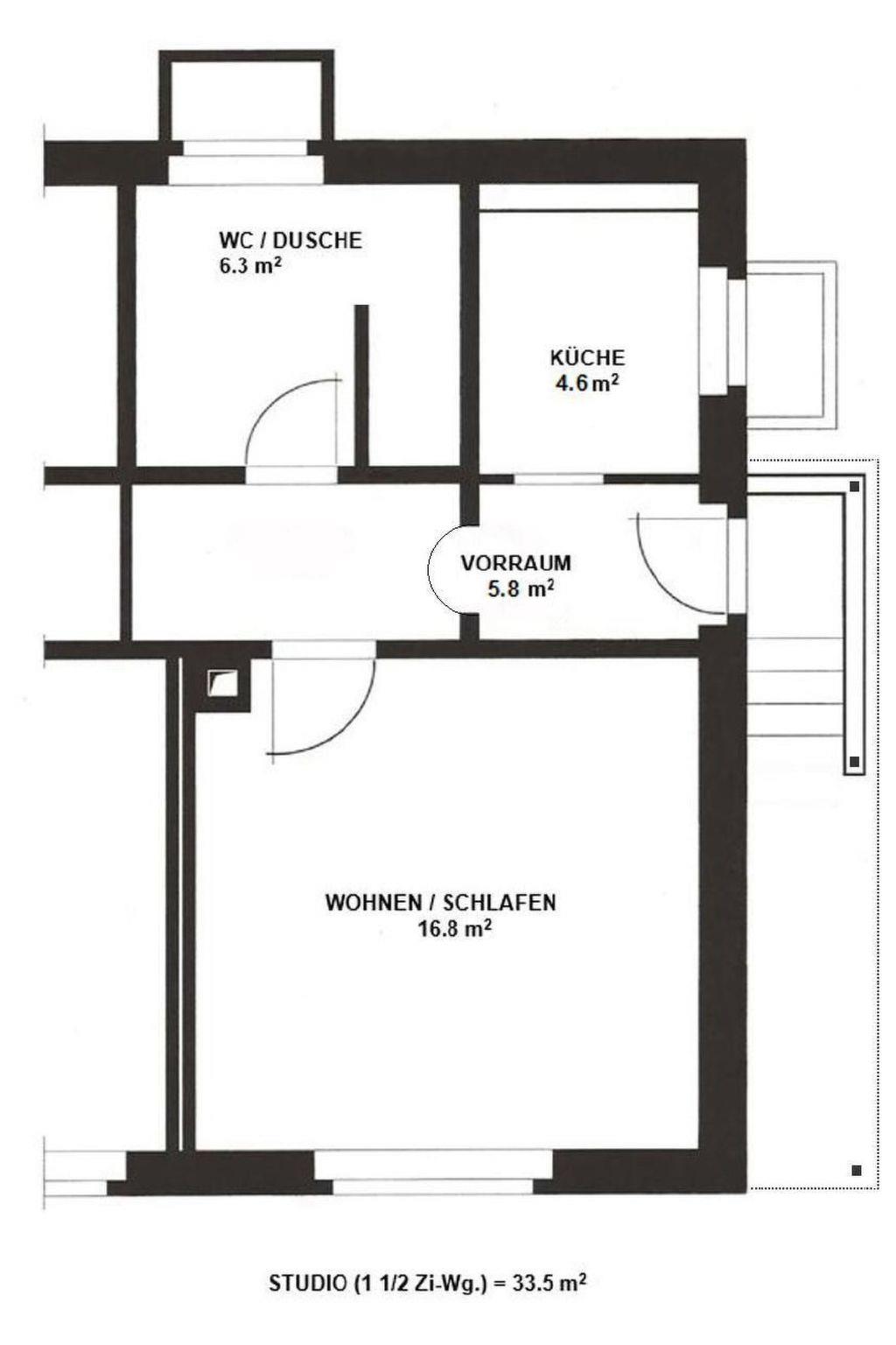 - Number of bedrooms: Studio apartment (no separate bedroom)
