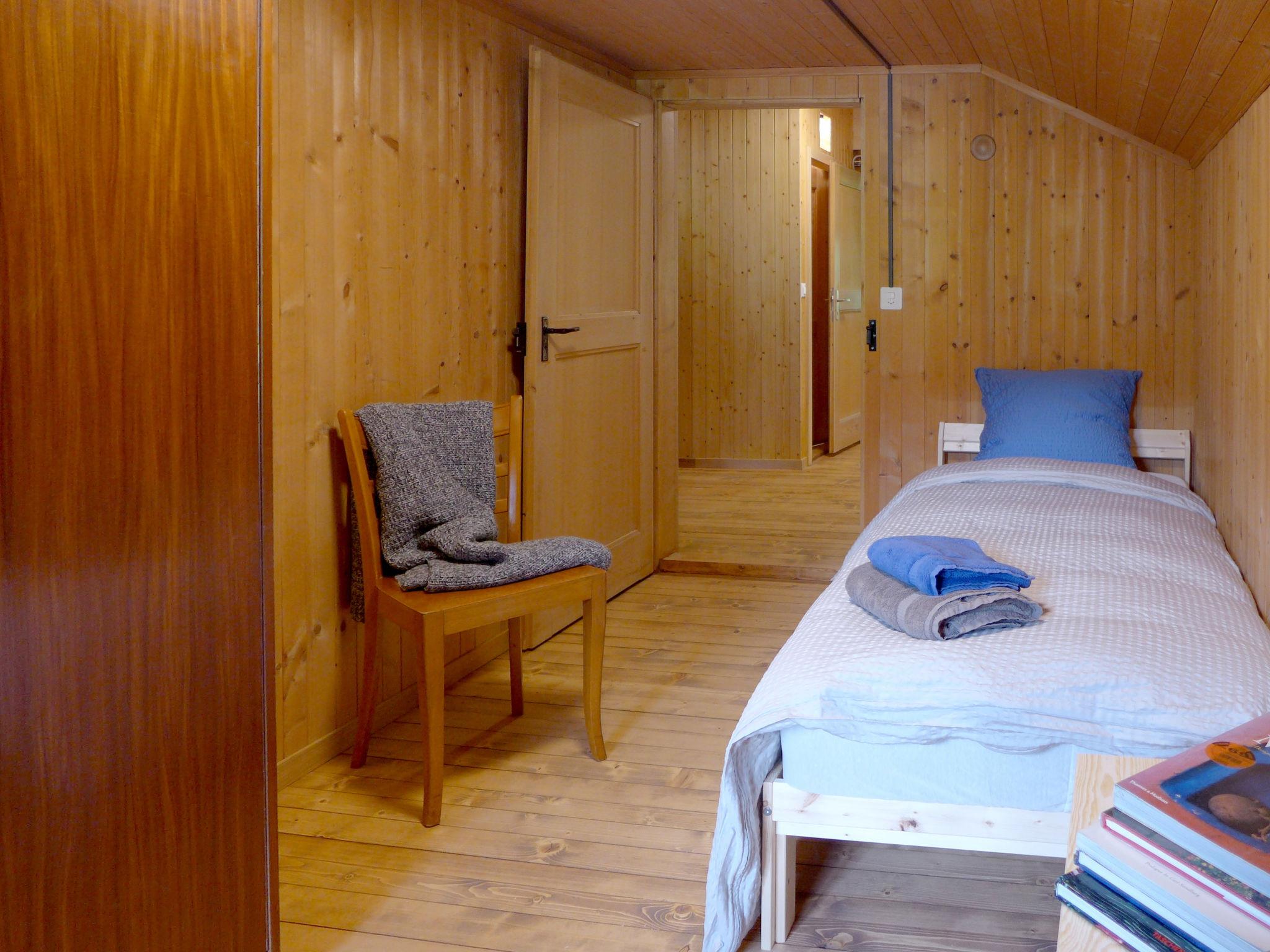 "Chalet Alte Post", 7-room maisonette 170 m2 on 2 levels, on the upper floor. Spacious, partly with sloping ceilings, cosy and wooden furniture furnishings: large living room 25 m2 with digital TV and flat screen. Dining room with dining table. Exit to the balcony. 2 large rooms, each room with 1 double bed (160 cm, length 200 cm). Exit to the balcony. Open kitchen (oven, dishwasher, 4 ceramic glass hob hotplates, toaster, kettle, microwave, electric coffee machine). Shower/WC. Upper floor: 2 rooms with sloping ceilings, each room with 1 bed (90 cm, length 200 cm). 1 room with 1 french bed (140 cm, length 200 cm). Exit to the balcony. Shower/WC. Wooden floors. Large balcony. Marvellous view of the mountains and the countryside. Facilities: washing machine, dryer, children's high chair, baby cot. Internet (WiFi, free). Parking. Please note: suitable for families. Non-smoking house. Smoke alarm, fire extinguisher.