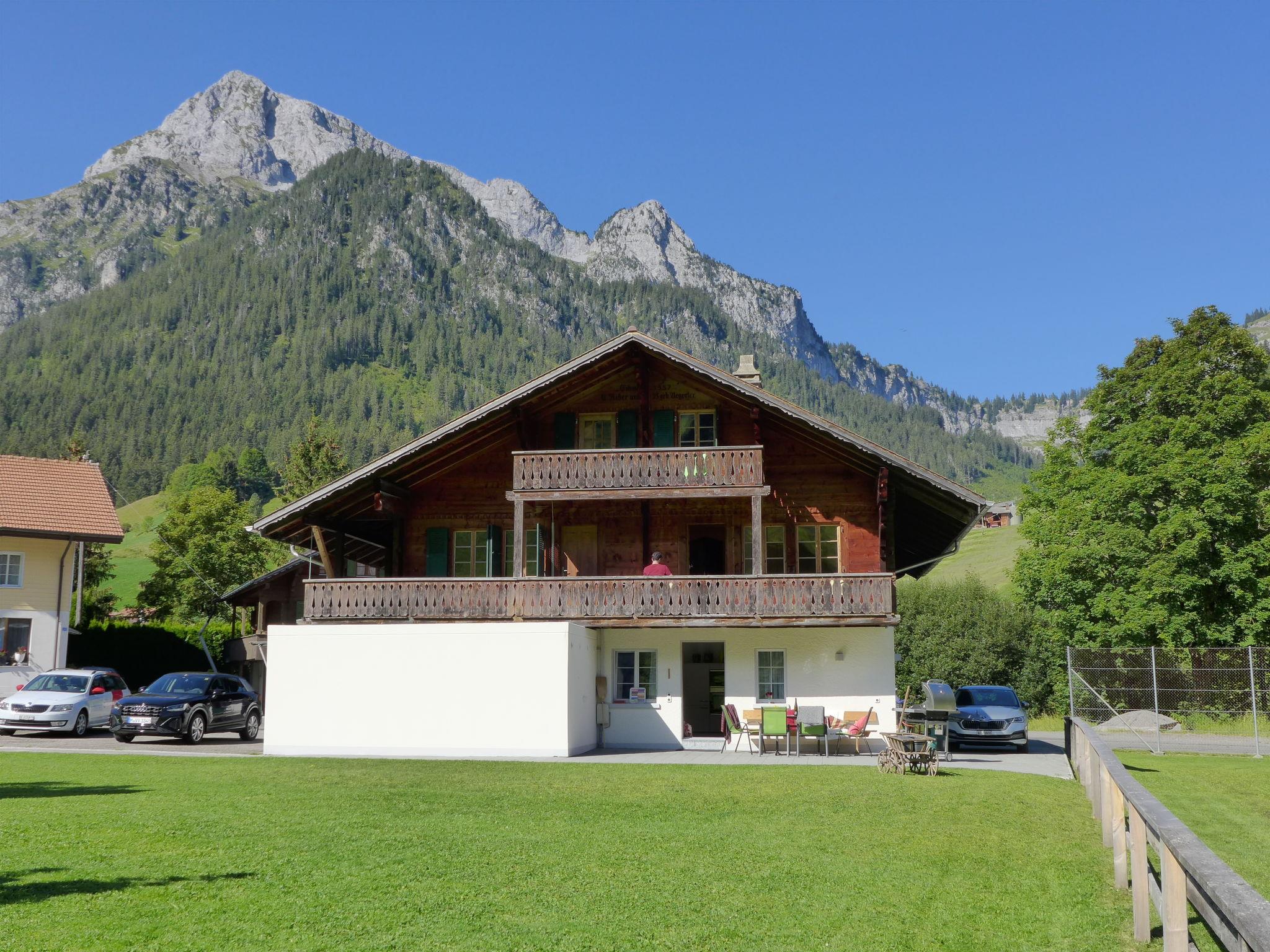 Schwenden 25 km from Spiez: Cosy, rustic 2-family house "Chalet Alte Post", 3 storeys, renovated in 2019. In a quiet, sunny position, 100 m from the edge of the forest, 2 km from the skiing area, 20 m from the stream, located by a road, in the countryside. In the house: storage room for bicycles, storage room for skis, central heating system. Pre-arrival grocery service. Parking at the house. Shop 10 km, bus stop 20 m. Tennis 10 km, riding stable 4 km, sports centre 10 km, walking paths from the house 10 m, cycle lane 50 m, skisport facilities 1.5 km, cross country ski track 50 m, children's playground 1 km. Nearby attractions: Naturpark Diemtigtal, Schloss Spiez, Interlaken, Thun. Well-known ski regions can easily be reached: Grimmialp, Wiriehorn. Well-known lakes can easily be reached: Thunersee. Hiking paths: Diemtigtaler Hauswege, Erlebnisweg Grimmimutz. Please note: car recommended. Groups of teenagers on request only. Ski bus (free of charge). Additional accommodations can be booked.