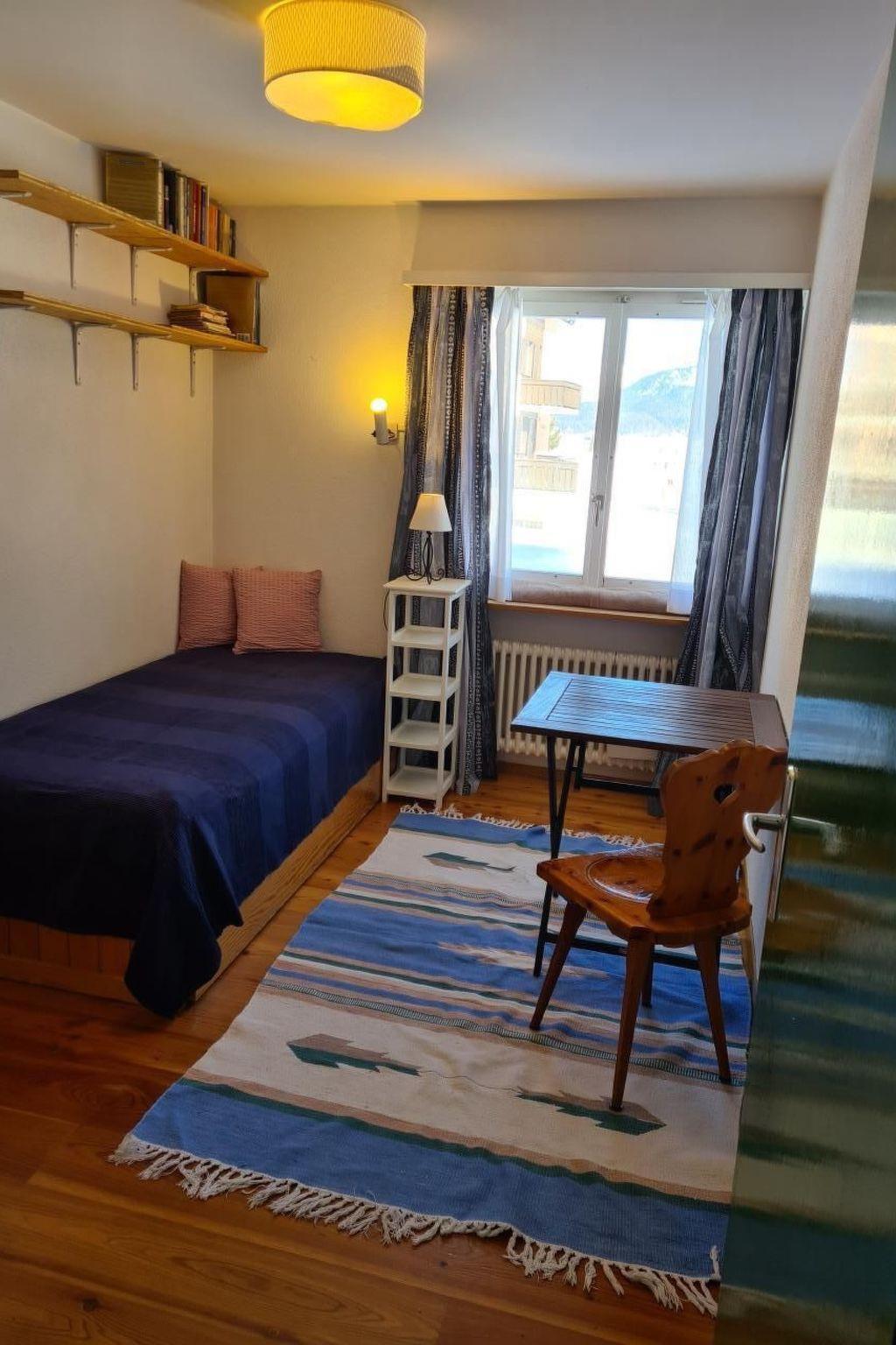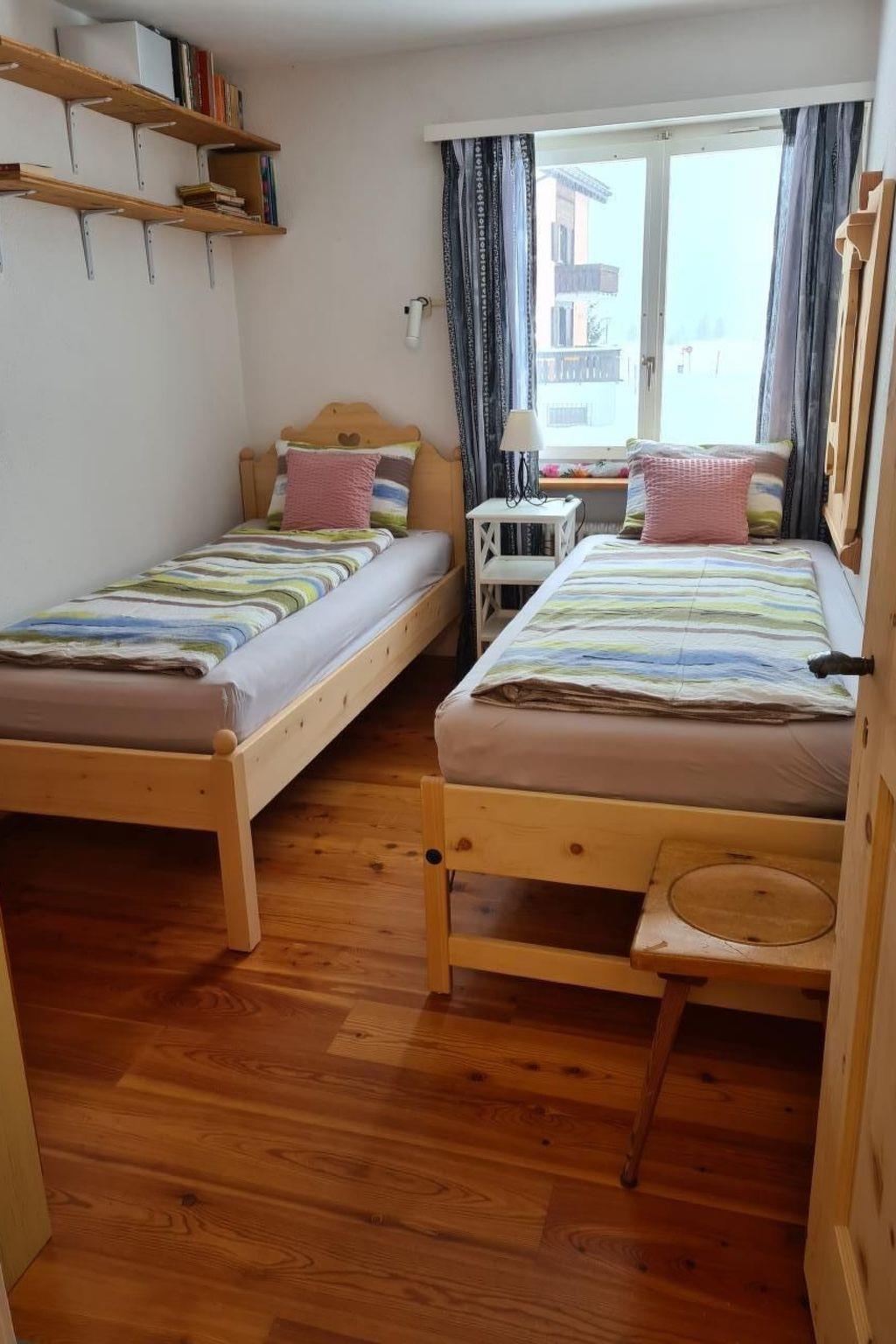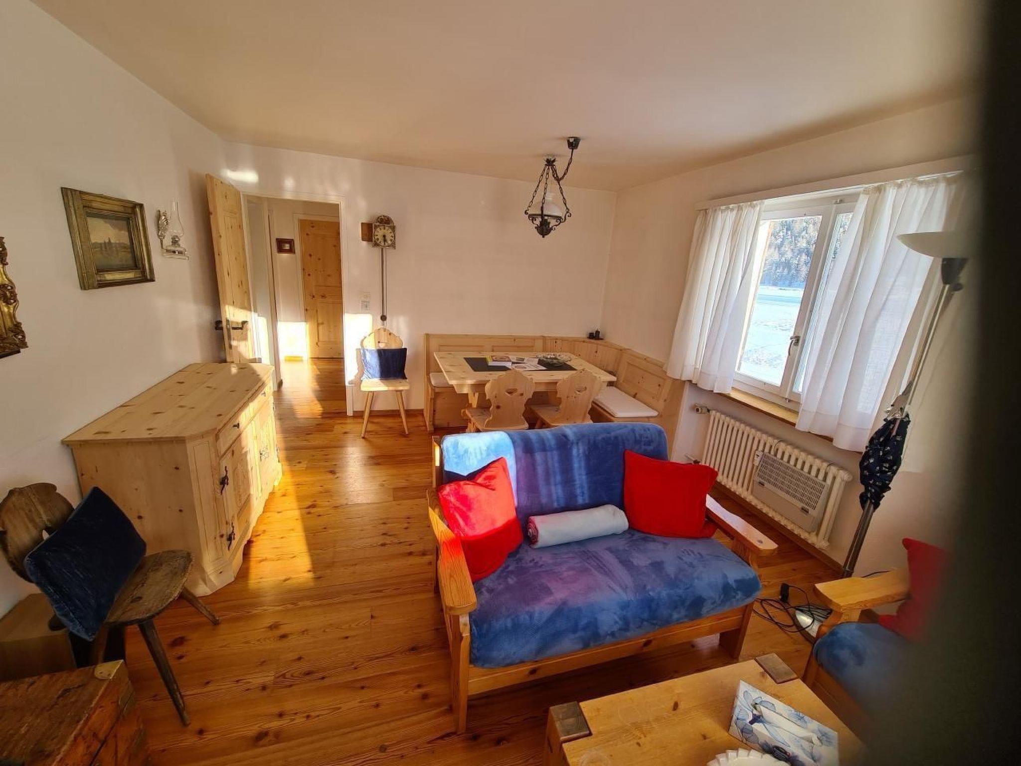 This 3-room apartment with 70 m2 is on the 1st floor, functional and rustic furnishings: living / dining room with dining area, two 2-seat sofas and TV and internet exit to the balcony, south facing position. 1 room with 1 bed and 1 pull-out bed. 1 double room (box spring bed 180x200). Small kitchen (oven, dishwasher, capsule coffee machine (Matello), with exit to the small balcony. Bath / WC. Heating. Parquet floors. 2 small balconies. Terrace furniture. Very nice distant view of the mountains, the valley and the ski slope. Garage. The apartment are sunny all day. Suitable for families. A maximum of 1 pet / dog allowed. Cross-country slopes in front of the house. In winter free ski bus to the Furtschellasbahn and the village (stop approx.50m in front of the house). The Volg grocery store with meat counter and fresh bread can be reached in 5 minutes.