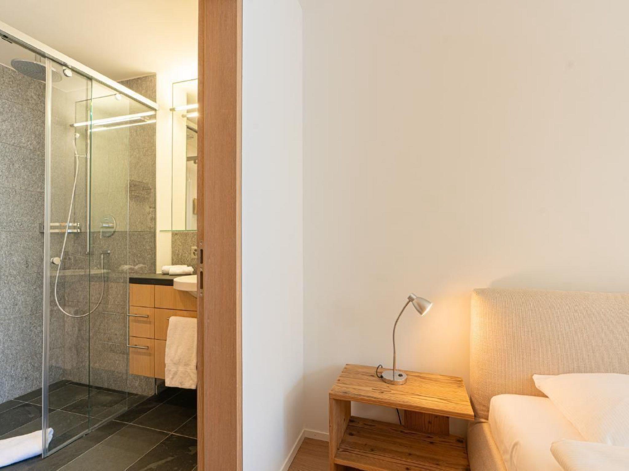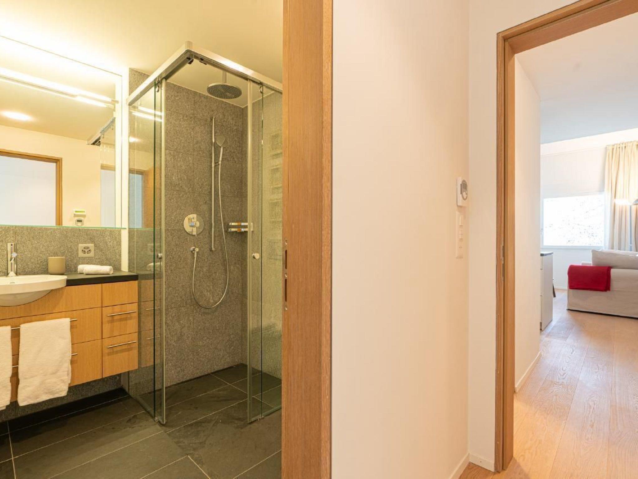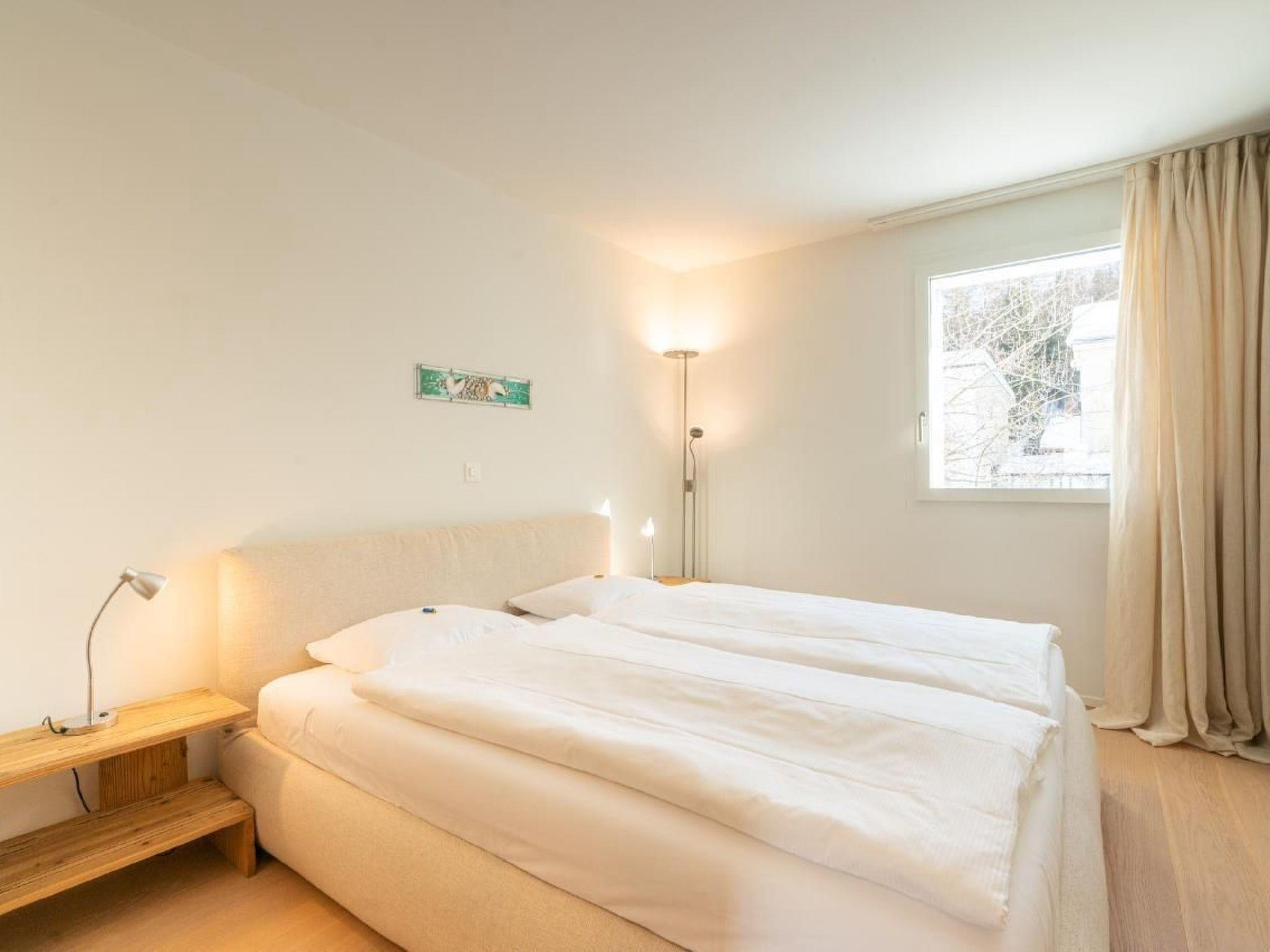 The flat has 2 double bedrooms, 2 bathrooms and a separate WC. The entire flat has parquet flooring. The kitchen is fully equipped. Raclette oven and fondue equipment are available on request. The flat is very sunny. There is a workplace on the gallery for our guests who work from home. The cellar, where the washing machine and tumble dryer are also located, offers enough space for skis and ski boots with dryer, bicycles and the like. There are 2 reserved parking spaces in the underground car park.