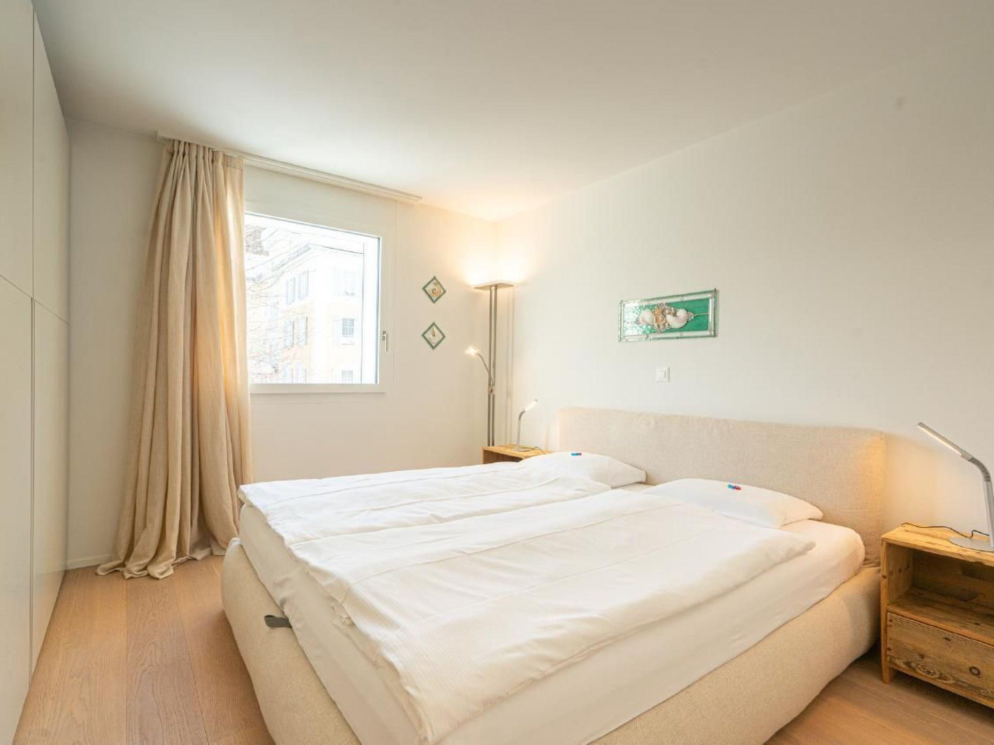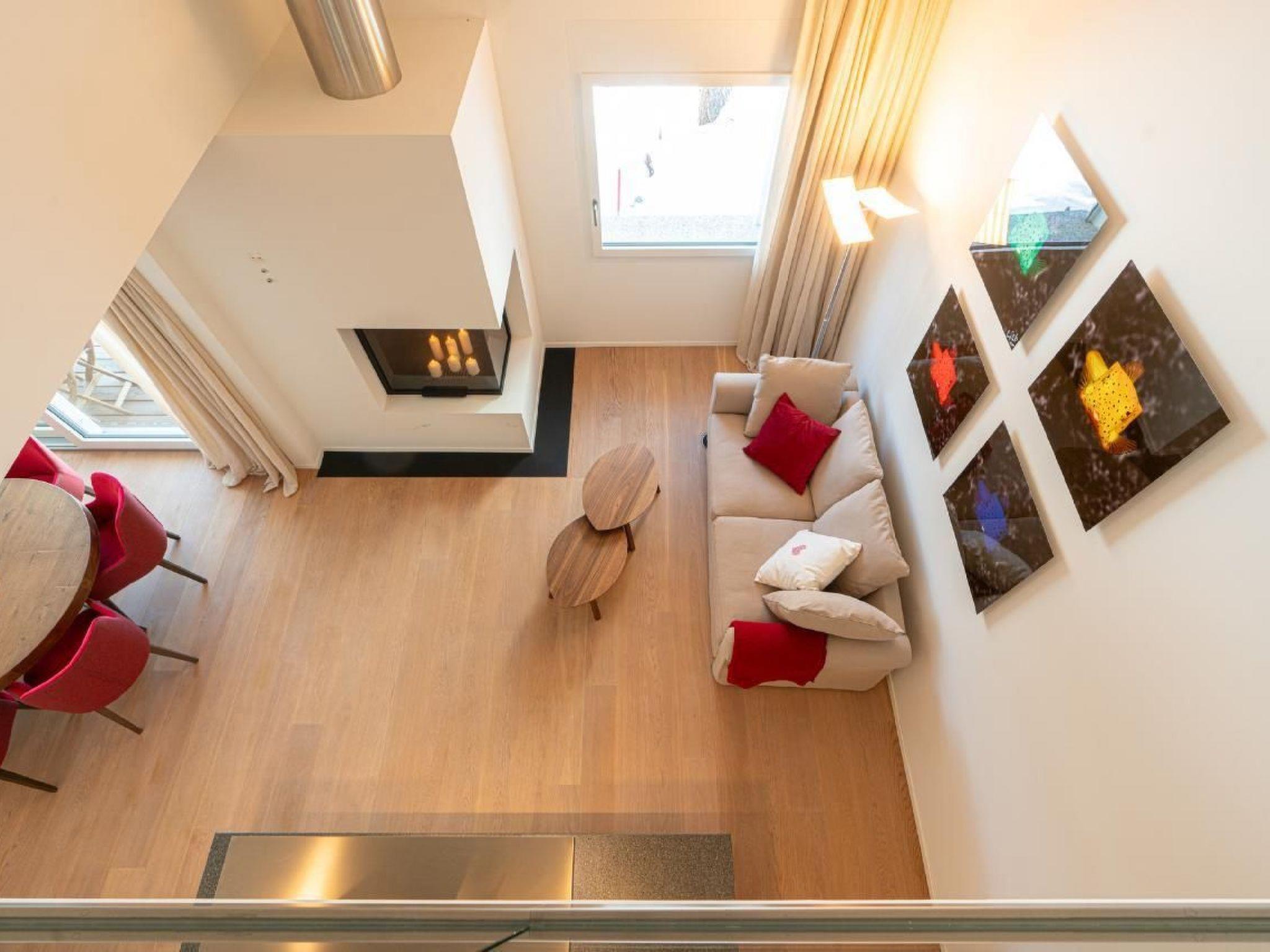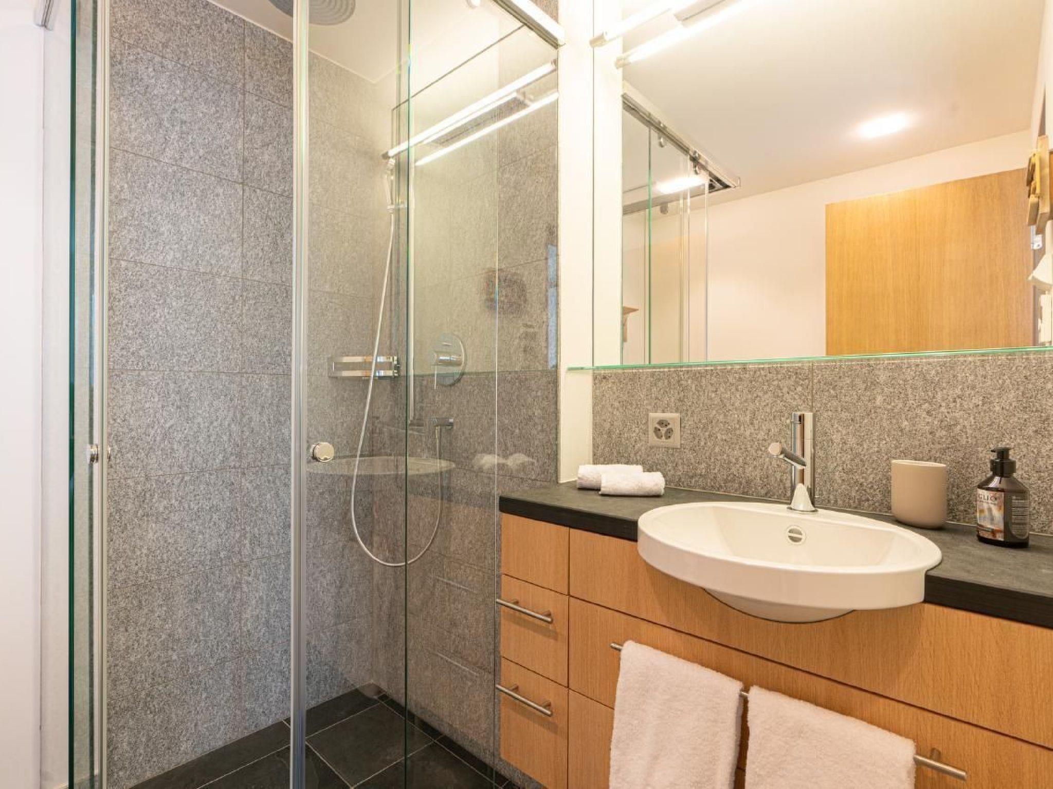 The flat has 2 double bedrooms, 2 bathrooms and a separate WC. The entire flat has parquet flooring. The kitchen is fully equipped. Raclette oven and fondue equipment are available on request. The flat is very sunny. There is a workplace on the gallery for our guests who work from home. The cellar, where the washing machine and tumble dryer are also located, offers enough space for skis and ski boots with dryer, bicycles and the like. There are 2 reserved parking spaces in the underground car park.