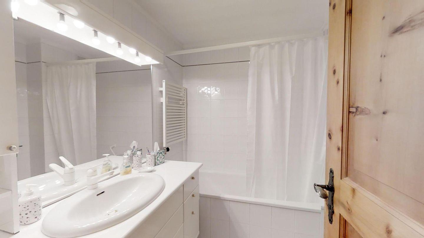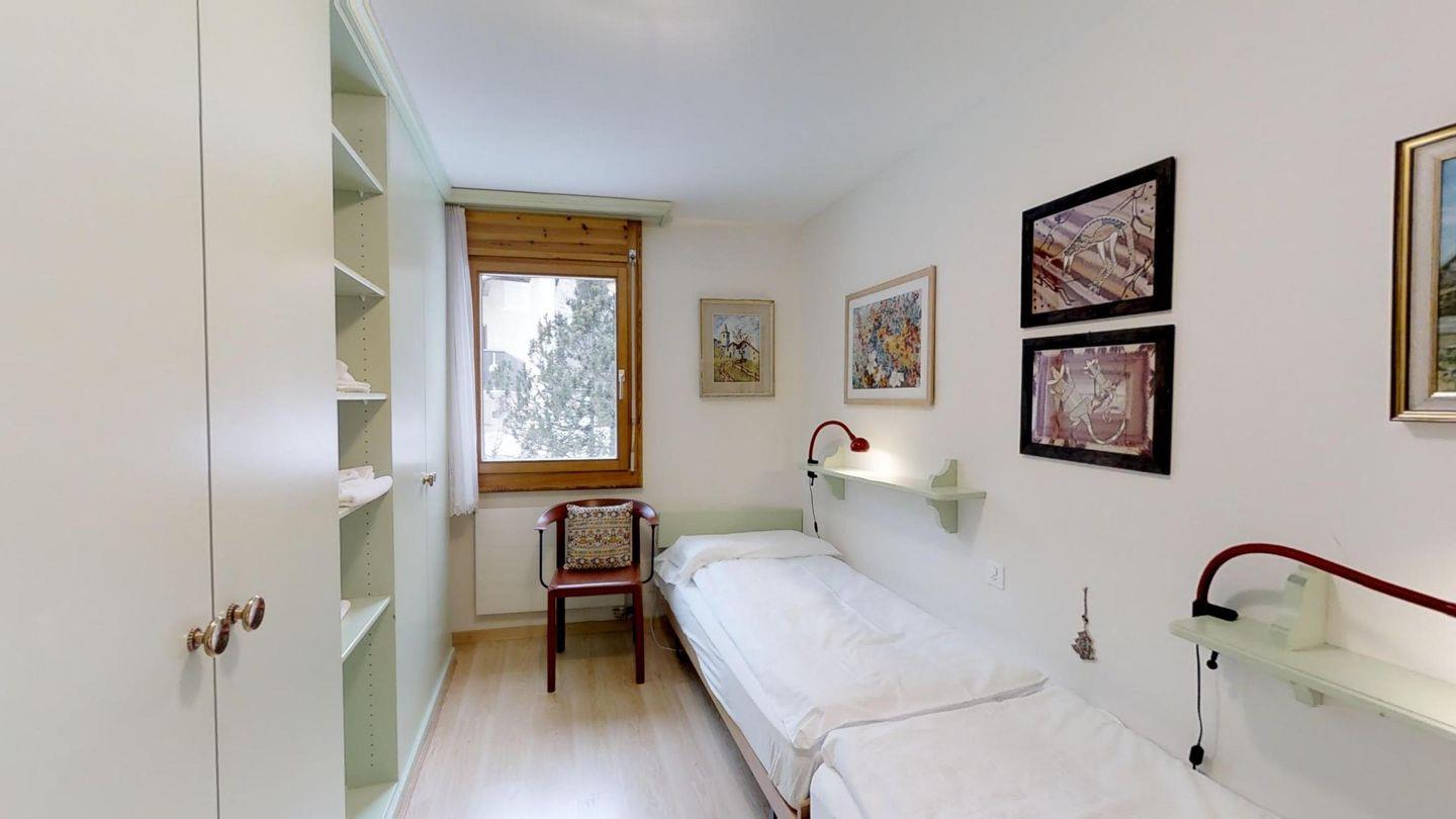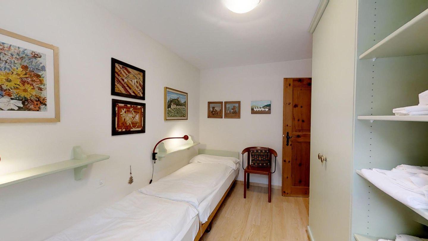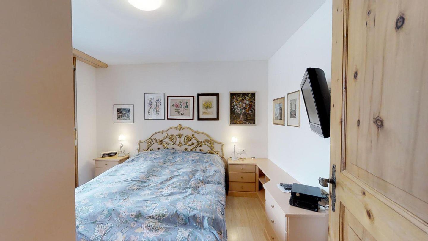 Geschmackvolle 3-Zimmerwohnung im Hochparterre (keinen direkten Zugang zum Garten), ca. 90 m2, an sehr ruhiger Lage. Ganze Wohnung mit Laminat. Entrée mit Garderobe. Halboffene Küche mit Backofen, Mikrowelle, Chicco d'Oro-Kaffeemaschine und Geschirrspülmaschine. Wohn-/ Esszimmer mit Cheminée und Balkon (südwest), Schrankbett für eine Person. TV/Sat sowie DVD/VHS. Kein Telefon. Dusche/WC/Lavabo. 1 Doppelschlafzimmer. Schlafzimmer mit 2 Einzelbetten. Bad/WC/Lavabo/Bidet. Garagenplatz. Ski- und Veloraum zur gemeinsamen Benützung. Haustiere erlaubt.
