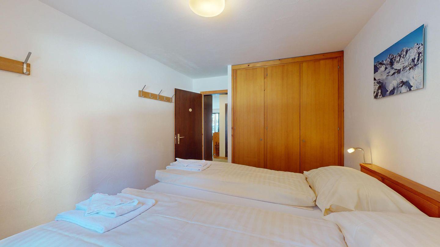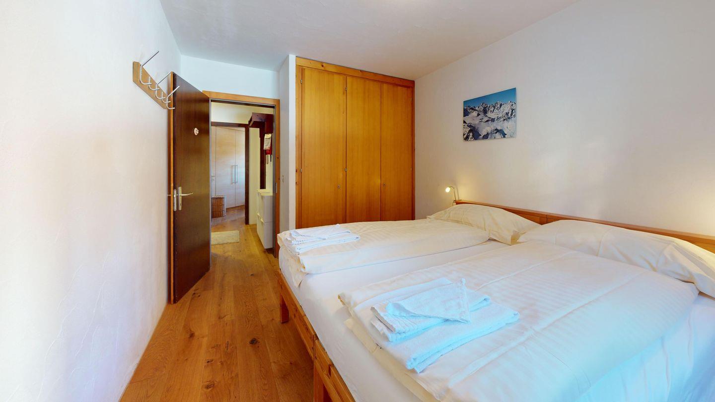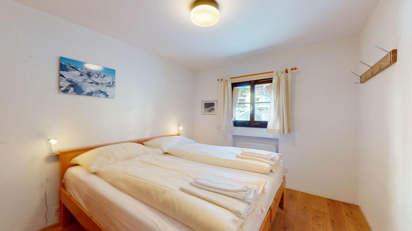 3-Zimmerwohnung im Erdgeschoss, Eingang mit Garderobe, Wohnzimmer mit Essecke und Ausgang auf den Gartensitzplatz. Geschlossene voll ausgestattete Küche mit Chicco d'Oro Kaffeemaschine. Doppelzimmer mit Einbauschrank. Zimmer mit 2 Betten. Badezimmer mit Waschbecken/Dusche/WC/Lavabo. Für den Gartensitzplatz gibt es Gartenmöbel. Der Kamin funktioniert nicht! Garagenplatz (Höhe 1.90 m)