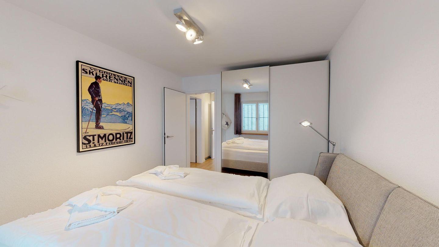 3 ½ -Zimmerwohnung in der 1. Etage (Hochparterre). Ca. 90 m², an sehr sonniger und ruhiger Lage direkt am Waldrand. Eingang mit Garderobe. Helles Wohnzimmer mit gemütlicher Essecke und direktem Zugang zum Balkon mit Südlage und wunderschöner Bergsicht. TV mit Sonos Soundsystem und Apple TV (bitte eigene Logindaten mitbringen), DVD-Player. Loungeecke und Tisch für sechs auf der Terrasse, Sonnenschirm, Weber Grill. 1 Doppelschlafzimmer. 1 Zimmer mit zwei Hochbetten. Badezimmer mit grosser Dusche/Dusch-WC/Lavabo. Geschlossene moderne Küche mit GROHE Wasserhahn, Backofen, Toaster, Wasserkocher, Kaffeevollautomat, Mikrowelle, Kühlschrank mit Tiefkühlfach und Geschirrspüler. Nespresso Kaffeemaschine, Milchschäumer. Bügeleisen. Waschmaschine und Tumbler im Haus. 1 Garagenplatz.