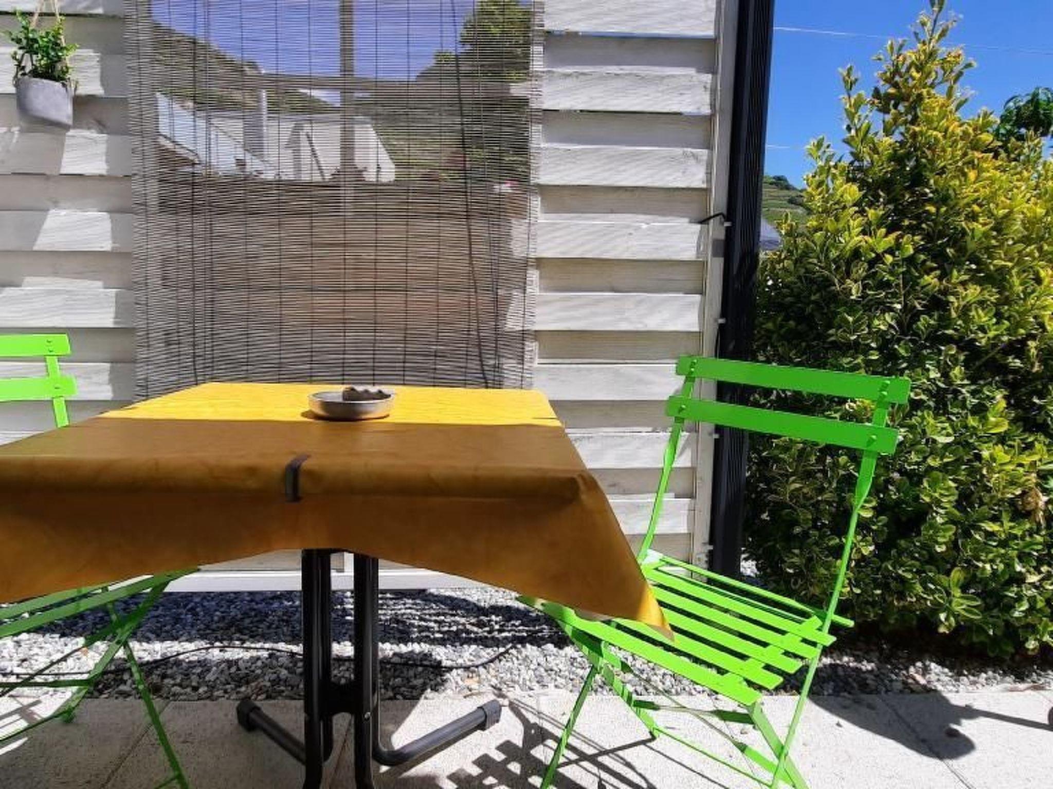 Studio of 22m2, for one or two persons, independent entrance, free parking, WC/shower, bath and bed linen included, kitchenette with oven/microwave, 1 induction hob, extractor hood, outdoor grill, fridge, kettle, plates, glasses and services, free coffee and tea, flat screen TV 250 channels, free high speed internet, view on the mountain and the vineyard, sunny terrace with parasol, barbecue, electric awning, simple breakfast on demand