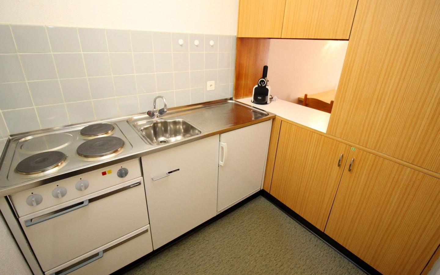Sympathische Ferienwohnung im 5. Stock. Zirka 40 m2. Wohn- /Esszimmer mit Schrankbetten, Kleine Küche ohne GS, Balkon Süd. Bad/Dusche, WC. Lift.