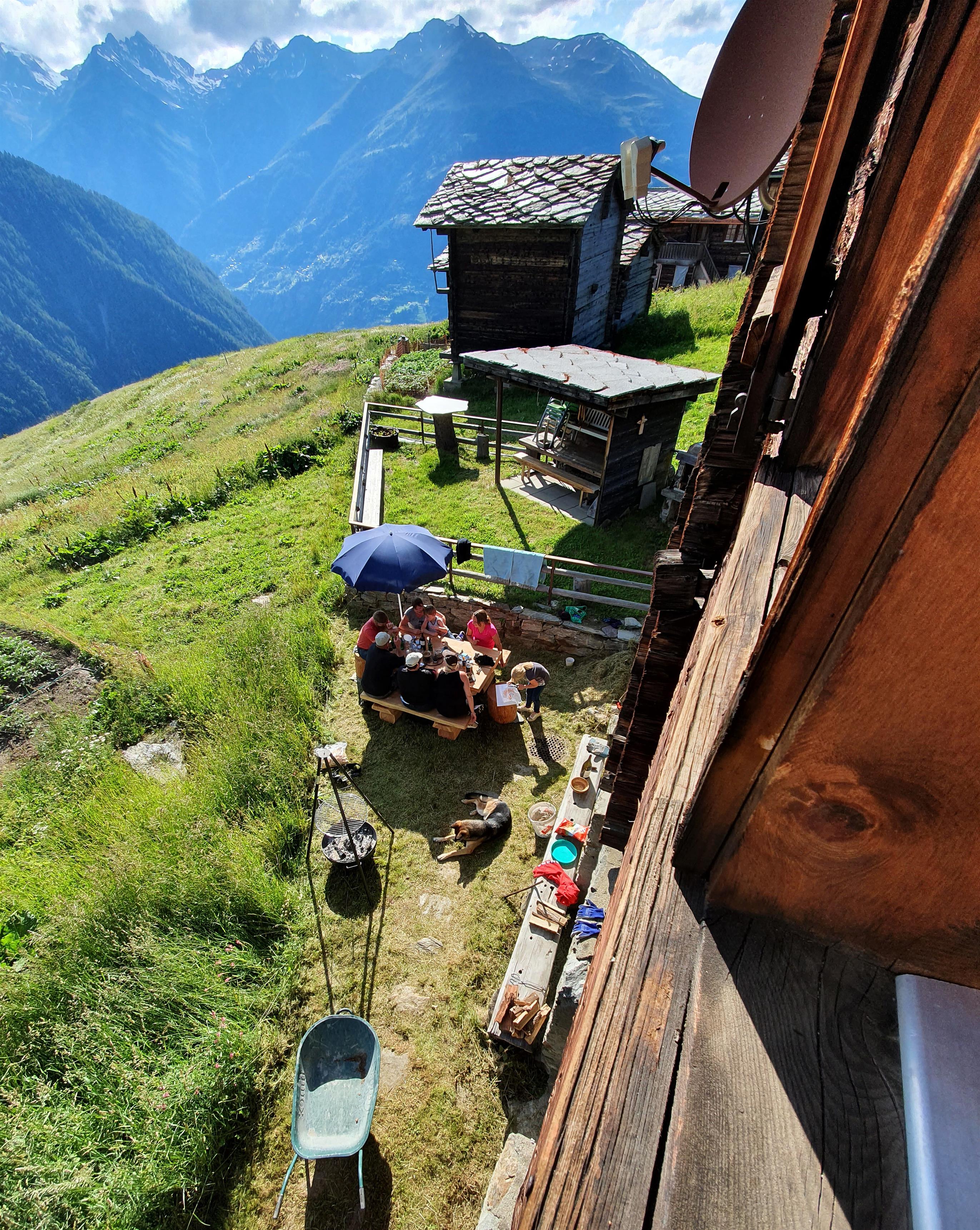 Heimelige Wohnung in einem Walliser Haus. Freier Blick ins Tal. Westbalkon und Gartenplatz. 2019 wurde die Wohnung sanft komplett renoviert, mit dem Ziel den Charme des Maiensäßes zu erhalten.